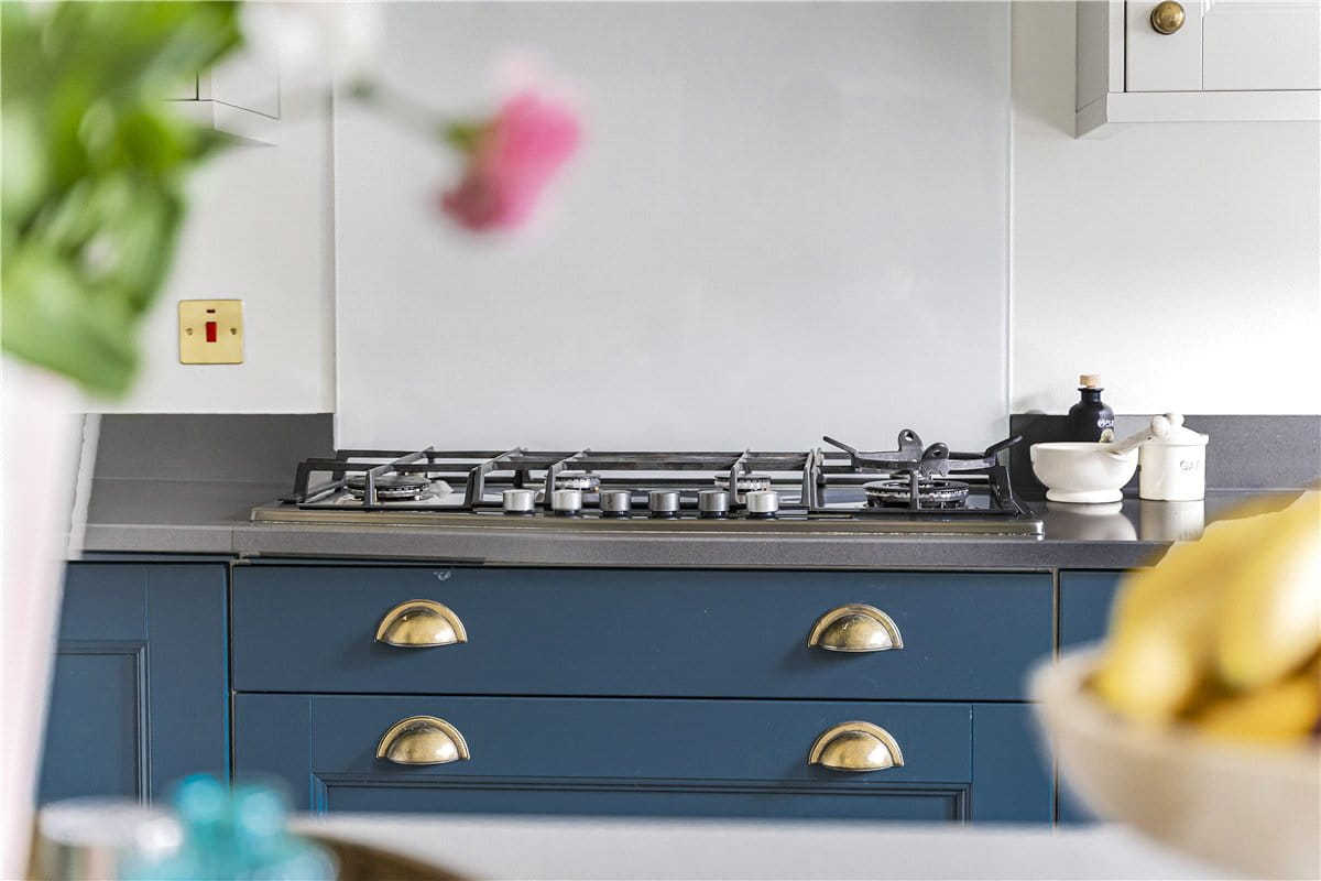 At the centre of the house lies a stunning open-plan kitchen, breakfast, and family area, designed for both relaxed family living and entertaining. French doors seamlessly connect this space to the beautifully landscaped rear garden, enhancing its light and airy ambiance. The kitchen is fitted with base and wall units, integrated appliances, and a central island with breakfast bar. Adjacent to the kitchen is a generous utility room offering practical side access to the garden.