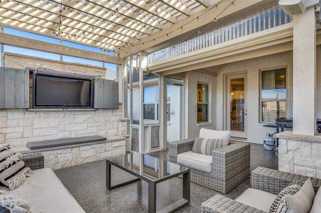 Better than new and thoughtfully updated, this home offers refined living within an established community in one of Aledo's most sought after areas. An open-concept floor plan showcases hardwood floors, a cozy fireplace, and seamless flow into a bright kitchen featuring white cabinetry, granite countertops, SS appliances, and a generous island designed for both everyday living and entertaining. The well designed layout includes three bedrooms, a dedicated office ideal for working from home, and an expansive upstairs flex space offering versatility for a media room, playroom, or additional living area. A true highlight of the home is the exceptional covered and screened outdoor living space with stone accents and built-in seating-perfect for enjoying Texas evenings year-round. With no backyard neighbors, the property offers rare privacy. Recent updates include fresh interior paint, new carpet in the bedrooms, cozy kitchen bench nook, and a new garage door. Located in top-rated Aledo ISD and just steps from the neighborhood park, walking trails, community playground, and dog park, this home also provides convenient access to I-20 for an easy commute to Fort Worth and surrounding areas. An exceptional opportunity to enjoy refined living, thoughtful updates, rare privacy, and a versatile floor plan in one of Aledo's most sought-after communities.