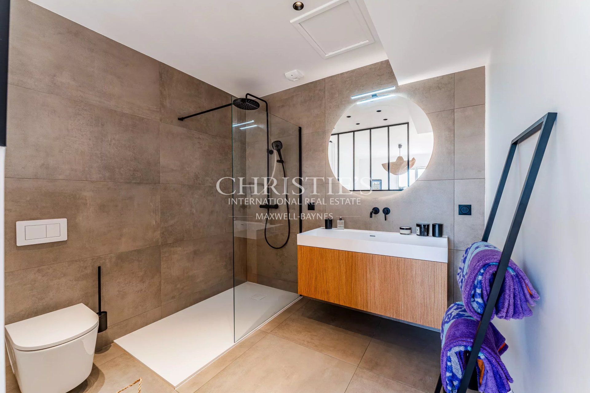 The first floor features a luminous living room with open-plan kitchen, which opens onto the terrace, creating a truly convivial, outdoor living space.