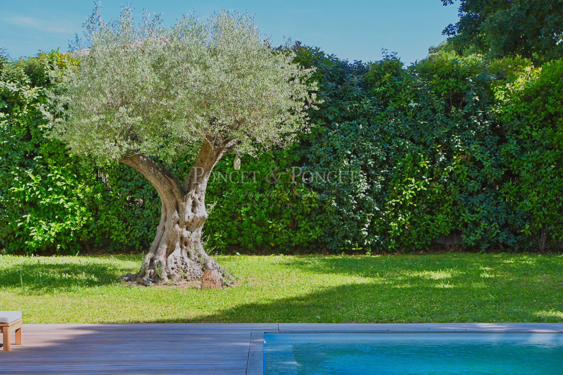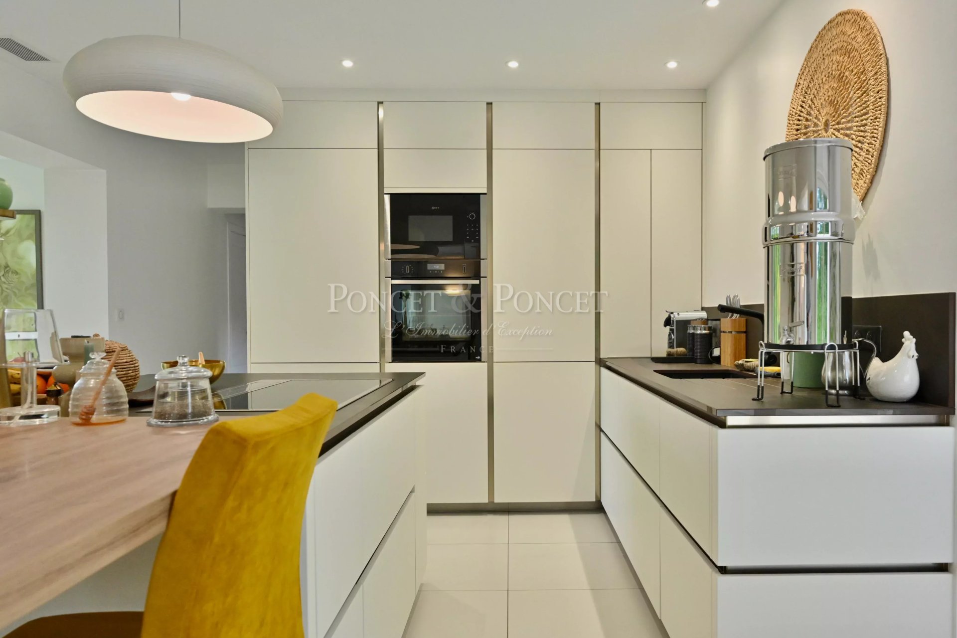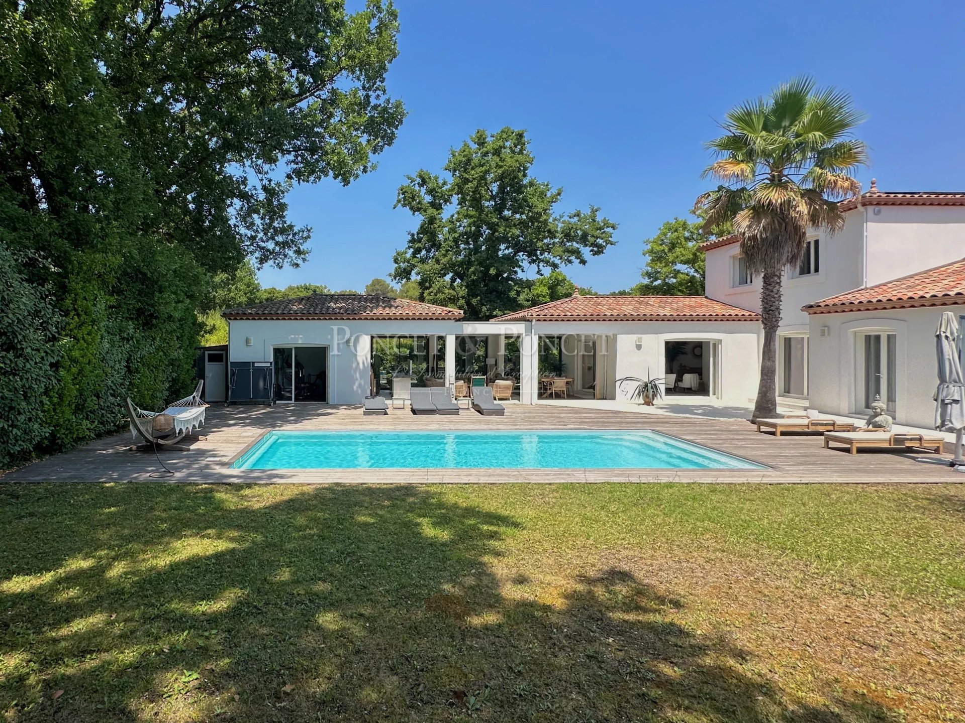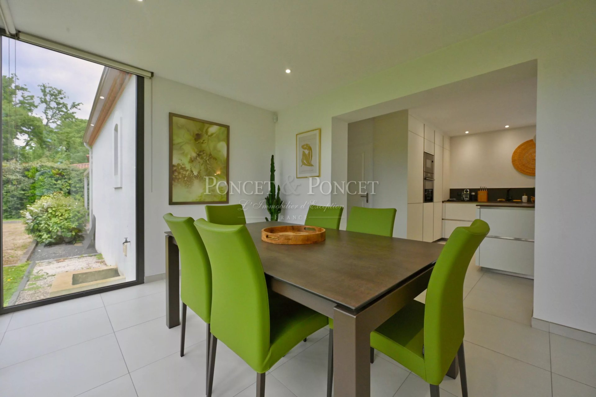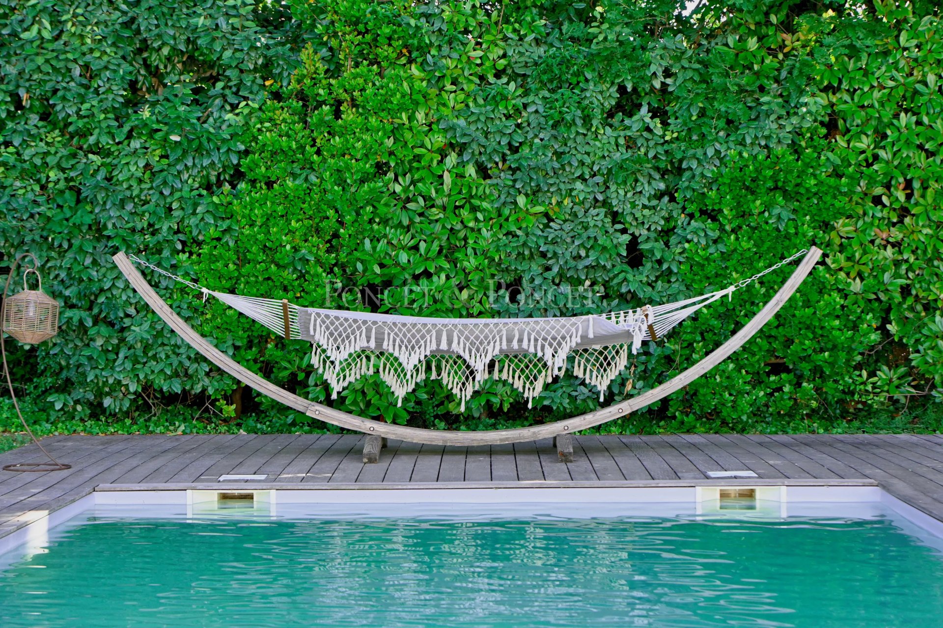 Dans le prolongement du salon, un élégant pool-house de 50 m² accueille un salon, une salle à manger et une cuisine d'été. le tout a proximité de la piscine chauffée par pompe à chaleur.
