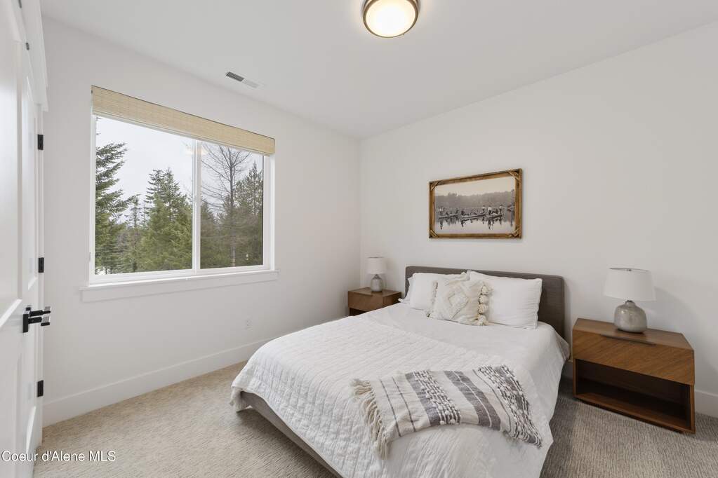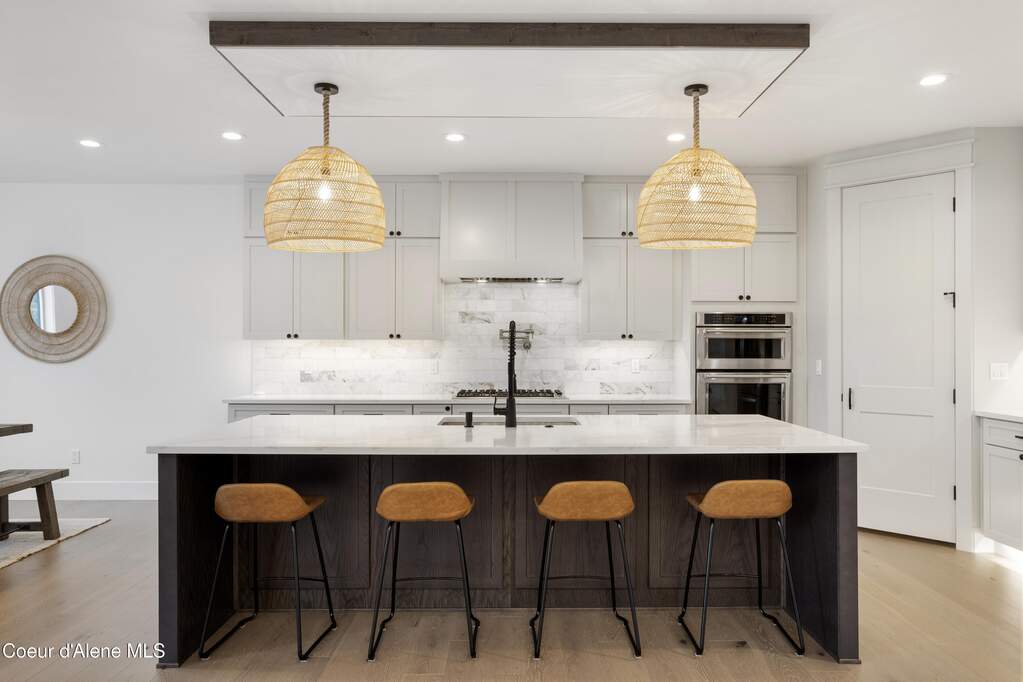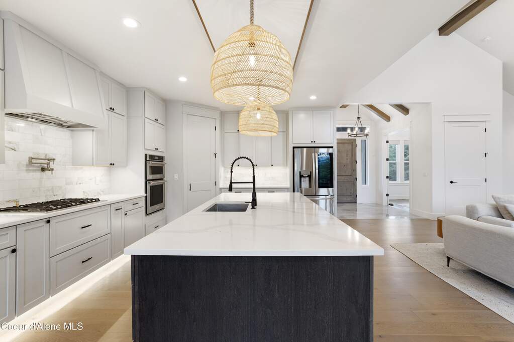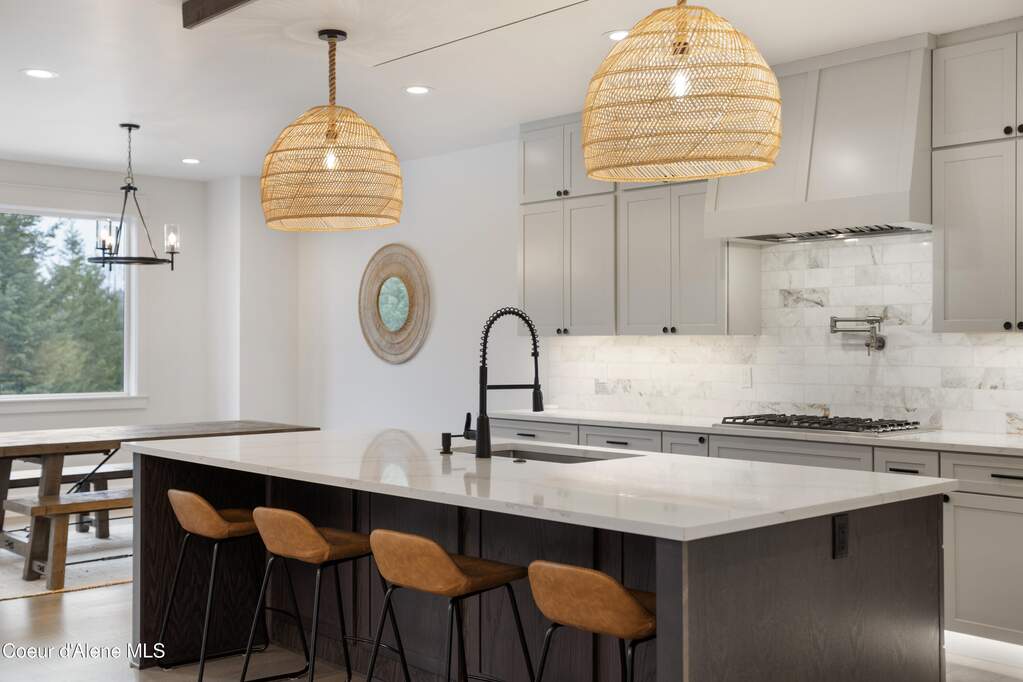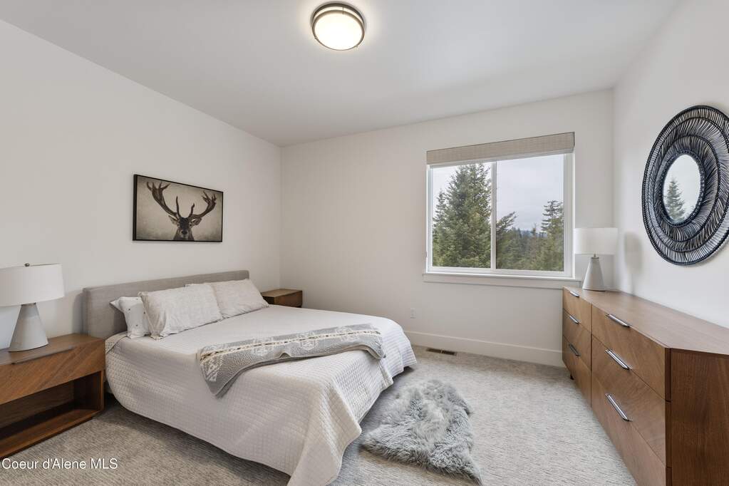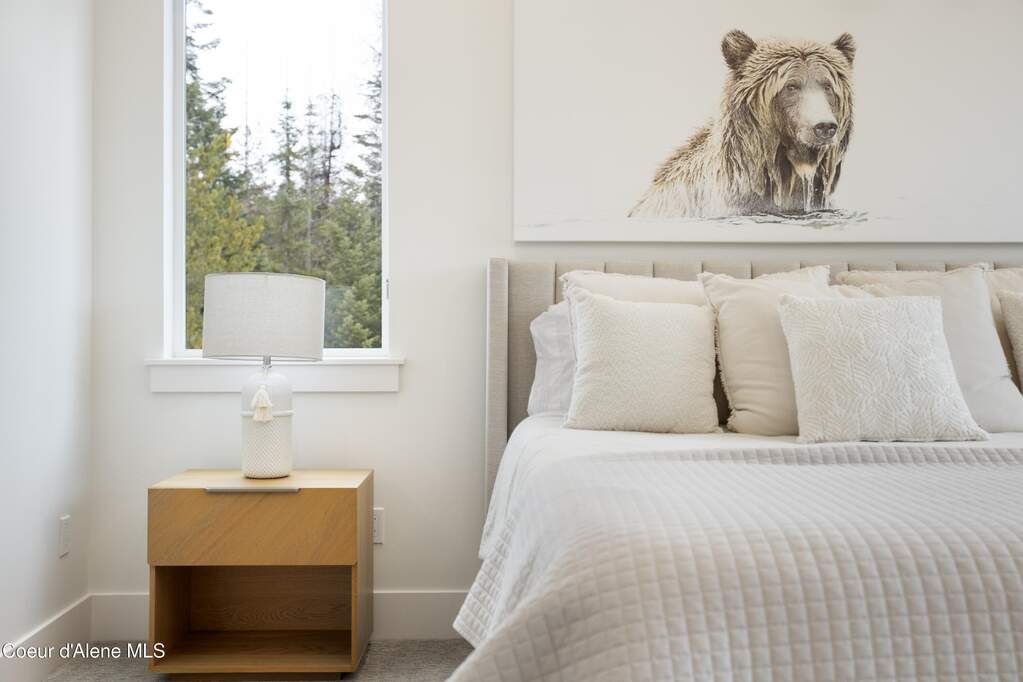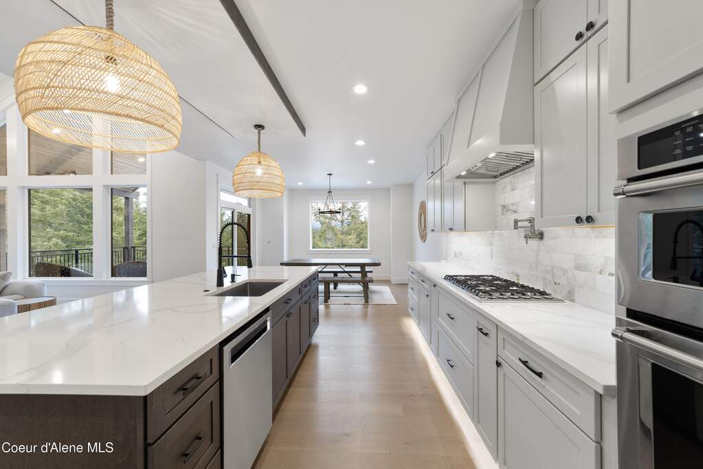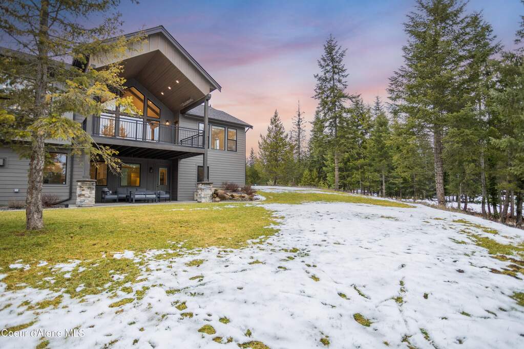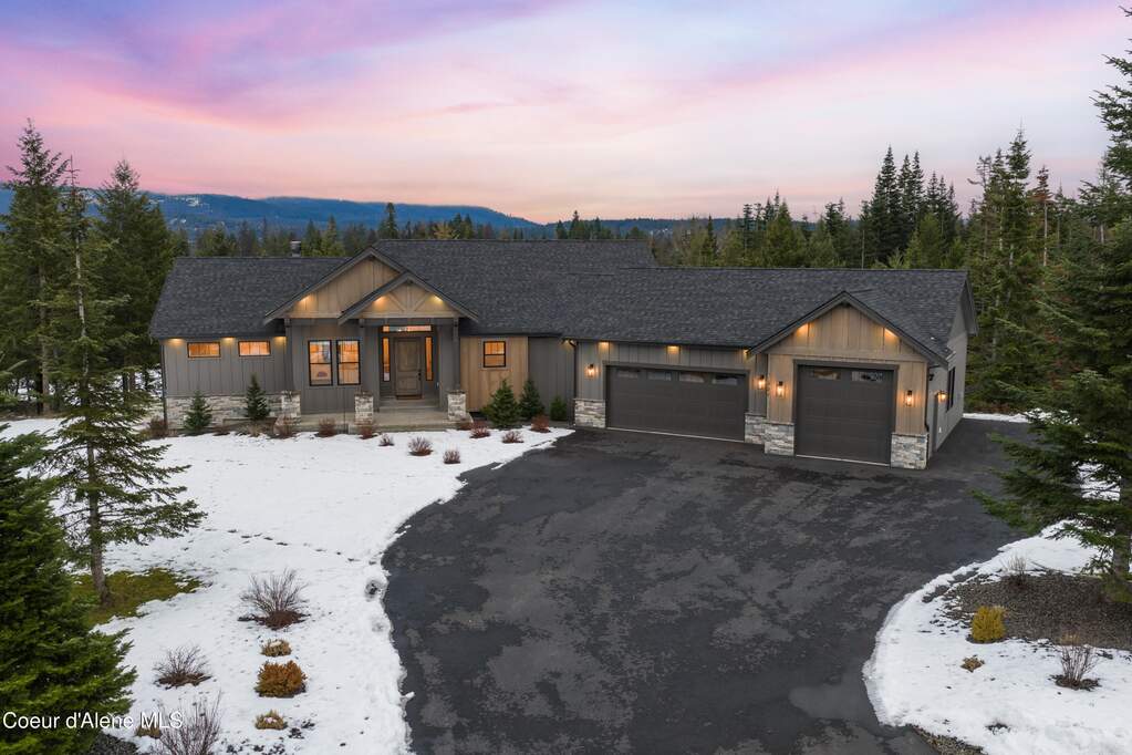 Set on 3.1 beautifully forested acres within a quiet gated community, this impressive 2022-built, 5,400+ sq ft 6BR/5BA home offers a perfect balance of luxury and privacy. The open floor plan features vaulted ceilings, a chef's kitchen with quartz and marble, and a dedicated main-floor office. Designed for flexibility, the residence includes a full daylight basement with two full kitchens and two laundry rooms-ideal for multigenerational living. The main-level primary suite is a true retreat, while the lower-level wellness wing boasts a built-in dry sauna and home gym. The property uniquely borders a 19.5-acre common area featuring green space and two ponds, acting as a massive private buffer. A spacious deck overlooks mountain scenery, complemented by a heated 3-car garage and RV parking with room for a shop/ADU. Ideally situated between Sandpoint & CDA, just 10 mins to groceries, 7 miles to Lake Pend Oreille boat launch, and 45 mins to Schweitzer Mountain. Experience the best of North Idaho livingprivacy, space, and modern comfort.