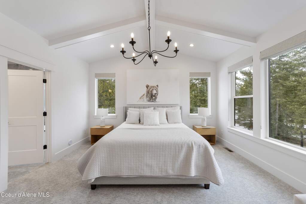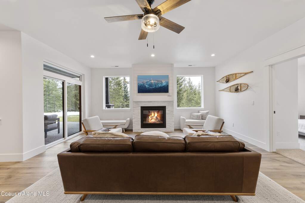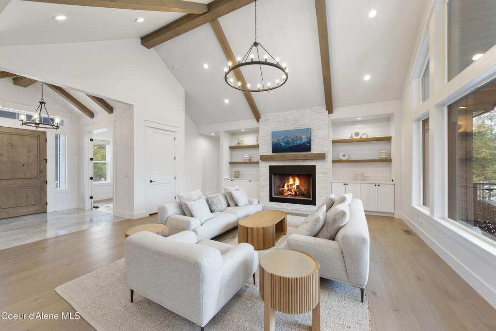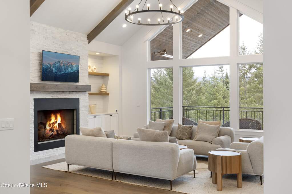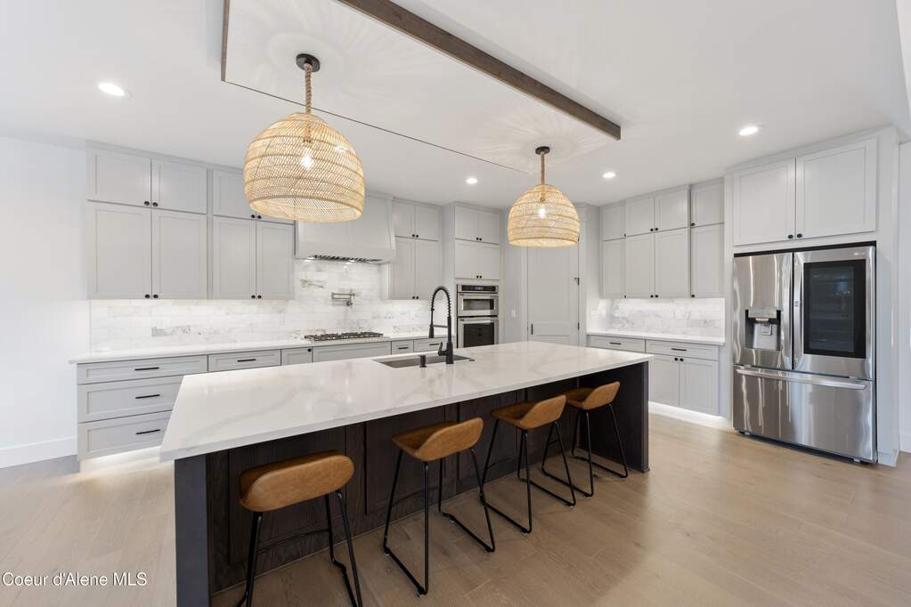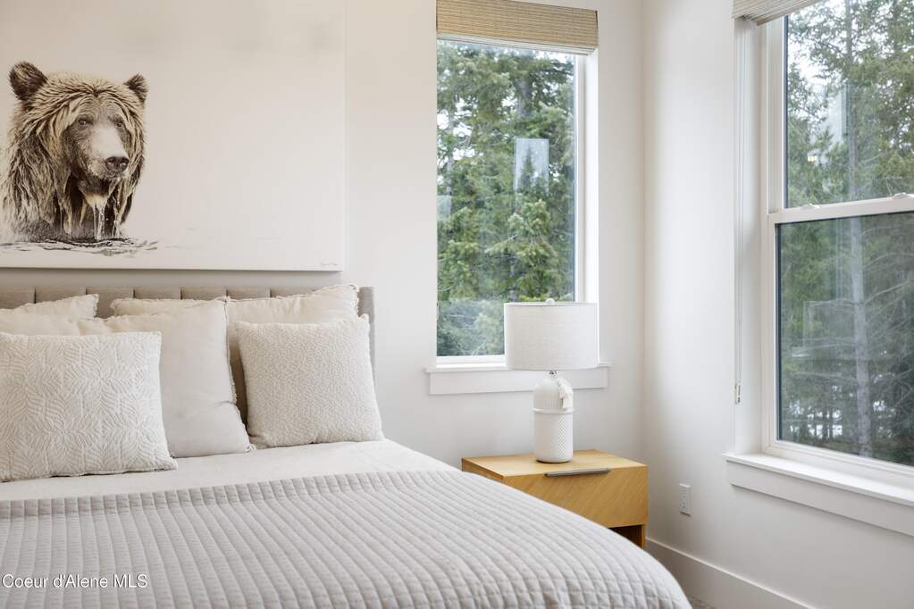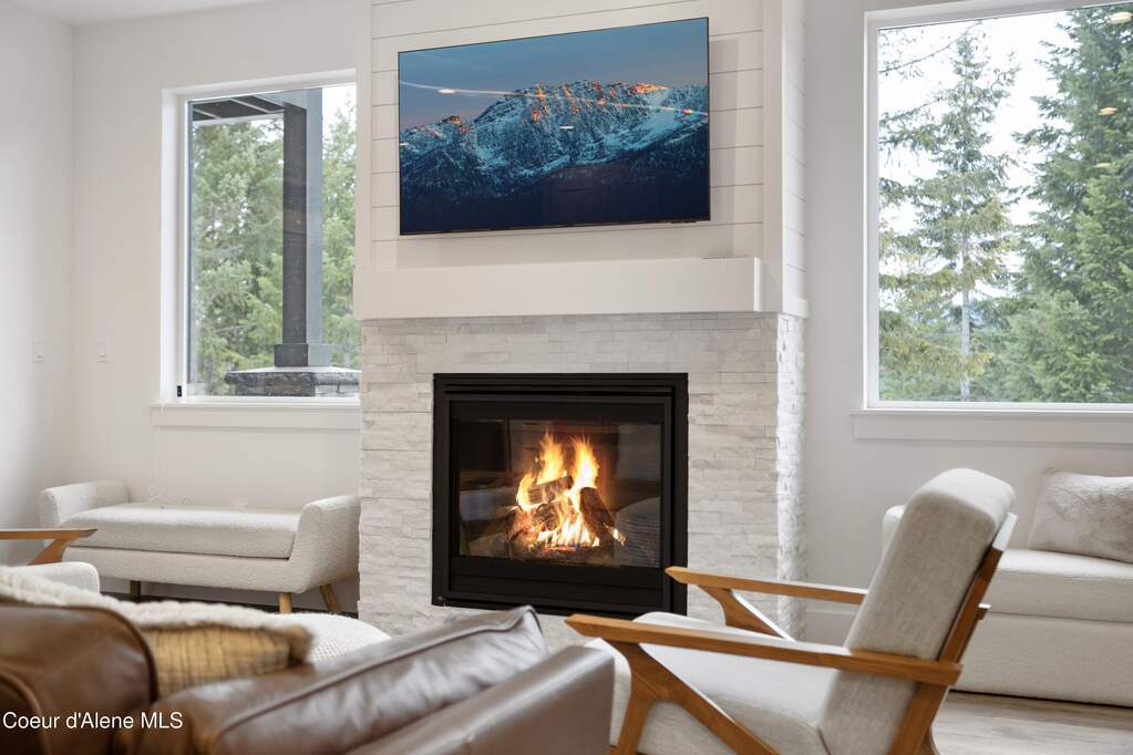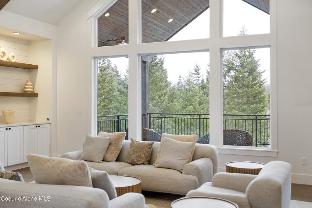 Set on 3.1 beautifully forested acres within a quiet gated community, this impressive 2022-built, 5,400+ sq ft 6BR/5BA home offers a perfect balance of luxury and privacy. The open floor plan features vaulted ceilings, a chef's kitchen with quartz and marble, and a dedicated main-floor office. Designed for flexibility, the residence includes a full daylight basement with two full kitchens and two laundry rooms-ideal for multigenerational living. The main-level primary suite is a true retreat, while the lower-level wellness wing boasts a built-in dry sauna and home gym. The property uniquely borders a 19.5-acre common area featuring green space and two ponds, acting as a massive private buffer. A spacious deck overlooks mountain scenery, complemented by a heated 3-car garage and RV parking with room for a shop/ADU. Ideally situated between Sandpoint & CDA, just 10 mins to groceries, 7 miles to Lake Pend Oreille boat launch, and 45 mins to Schweitzer Mountain. Experience the best of North Idaho livingprivacy, space, and modern comfort.