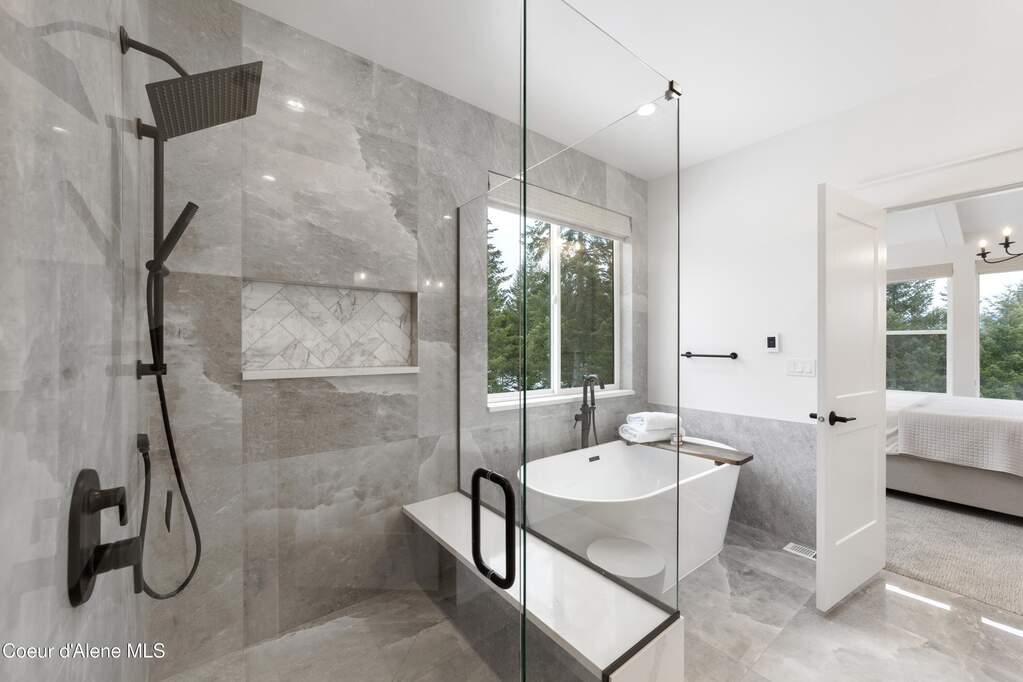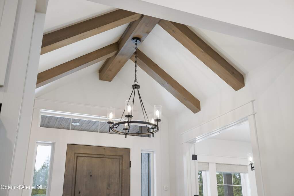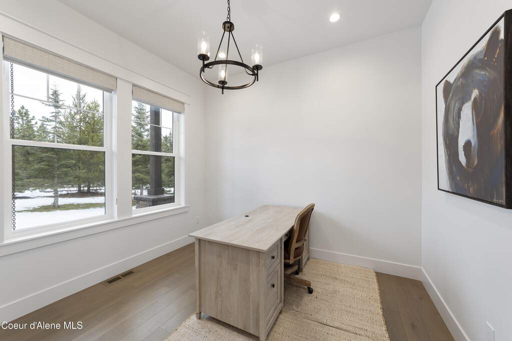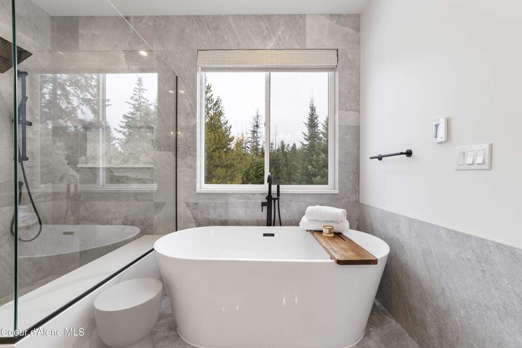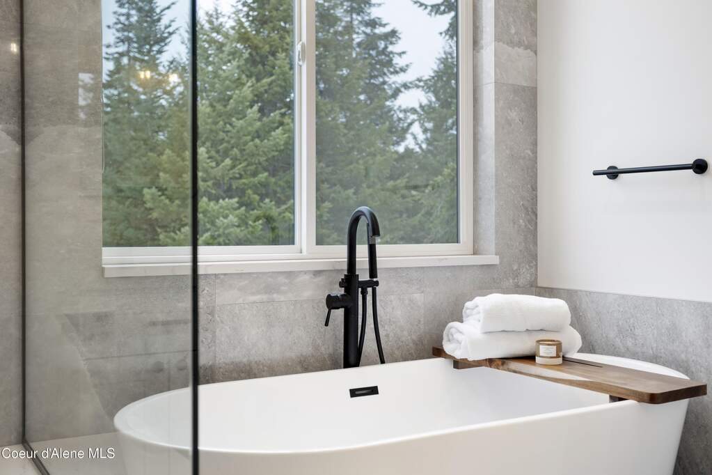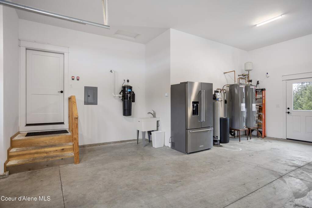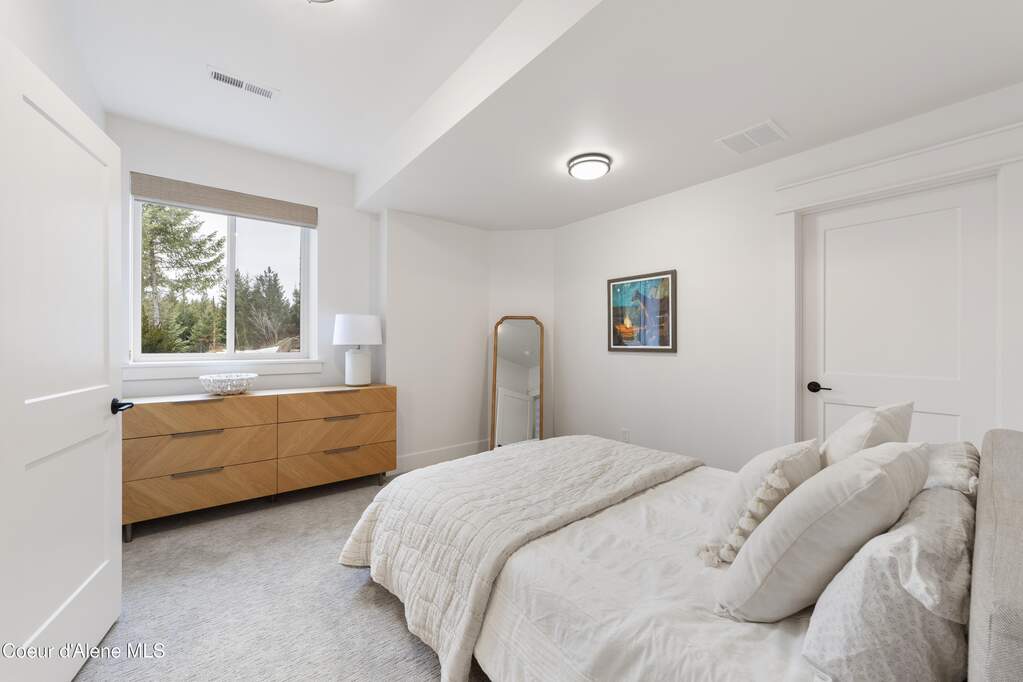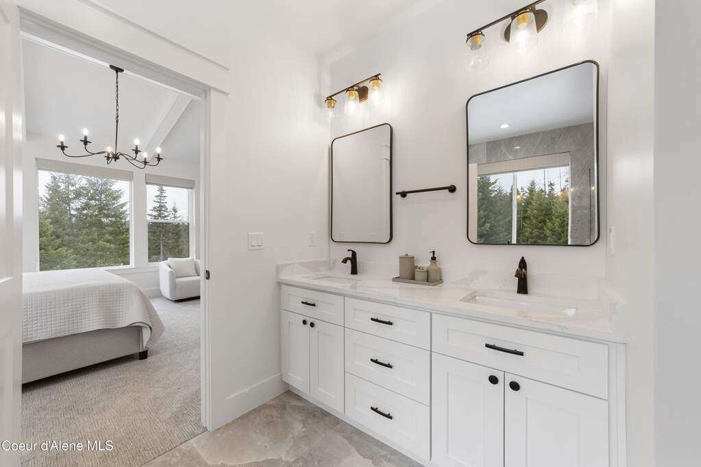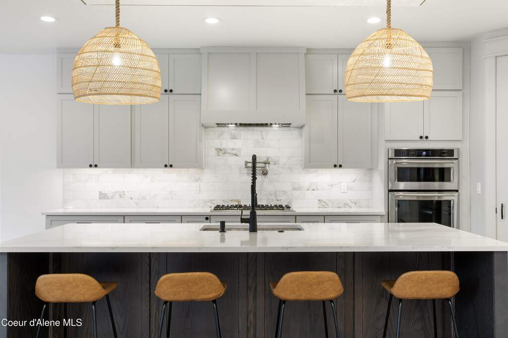 Set on 3.1 beautifully forested acres within a quiet gated community, this impressive 2022-built, 5,400+ sq ft 6BR/5BA home offers a perfect balance of luxury and privacy. The open floor plan features vaulted ceilings, a chef's kitchen with quartz and marble, and a dedicated main-floor office. Designed for flexibility, the residence includes a full daylight basement with two full kitchens and two laundry rooms-ideal for multigenerational living. The main-level primary suite is a true retreat, while the lower-level wellness wing boasts a built-in dry sauna and home gym. The property uniquely borders a 19.5-acre common area featuring green space and two ponds, acting as a massive private buffer. A spacious deck overlooks mountain scenery, complemented by a heated 3-car garage and RV parking with room for a shop/ADU. Ideally situated between Sandpoint & CDA, just 10 mins to groceries, 7 miles to Lake Pend Oreille boat launch, and 45 mins to Schweitzer Mountain. Experience the best of North Idaho livingprivacy, space, and modern comfort.