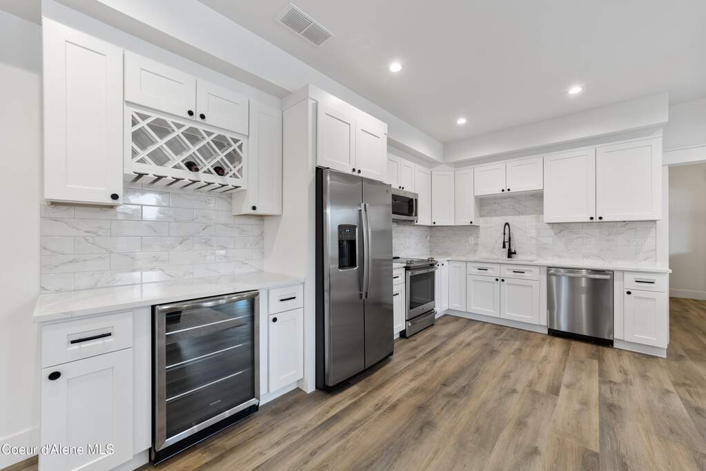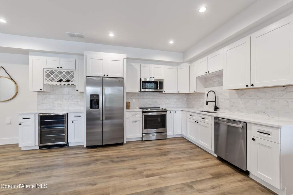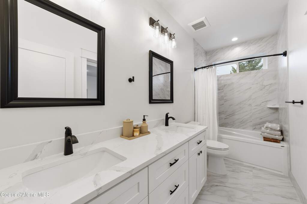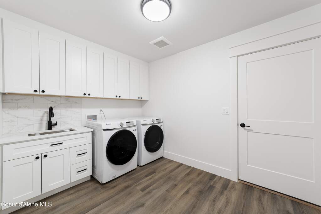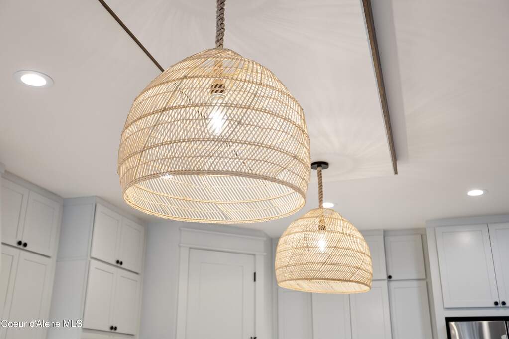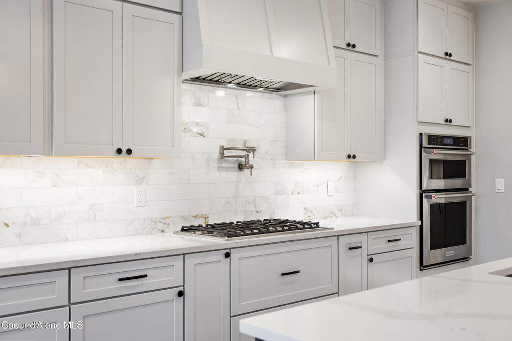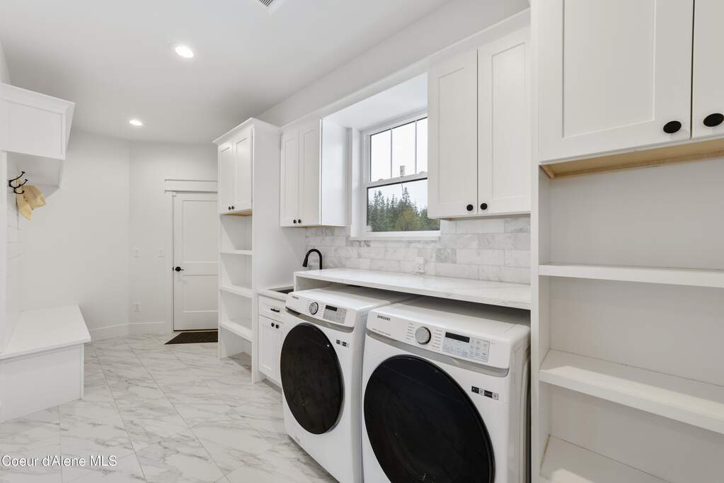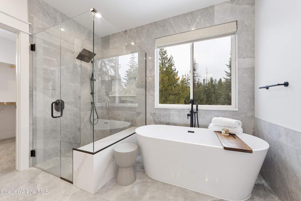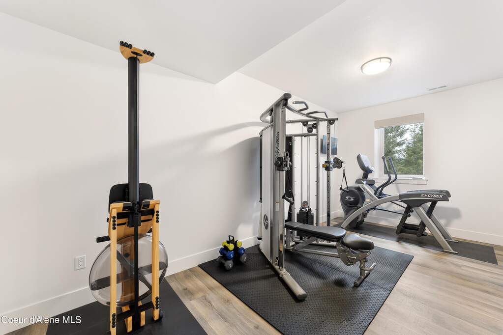 Set on 3.1 beautifully forested acres within a quiet gated community, this impressive 2022-built, 5,400+ sq ft 6BR/5BA home offers a perfect balance of luxury and privacy. The open floor plan features vaulted ceilings, a chef's kitchen with quartz and marble, and a dedicated main-floor office. Designed for flexibility, the residence includes a full daylight basement with two full kitchens and two laundry rooms-ideal for multigenerational living. The main-level primary suite is a true retreat, while the lower-level wellness wing boasts a built-in dry sauna and home gym. The property uniquely borders a 19.5-acre common area featuring green space and two ponds, acting as a massive private buffer. A spacious deck overlooks mountain scenery, complemented by a heated 3-car garage and RV parking with room for a shop/ADU. Ideally situated between Sandpoint & CDA, just 10 mins to groceries, 7 miles to Lake Pend Oreille boat launch, and 45 mins to Schweitzer Mountain. Experience the best of North Idaho livingprivacy, space, and modern comfort.