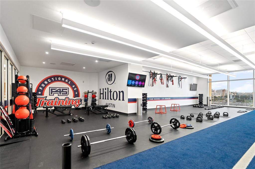 Fully furnished premier 1,714 sq. ft. private residence at The 5 Fifty Five within the Downtown Hilton Hotel. This exceptional condo-hotel residence delivers refined living in the heart of DT Austin, where luxury, privacy, and convenience come together. This residence stands apart with its layout and versatility. The open-concept kitchen and living area are filled w/ natural light from high ceilings, floor-to-ceiling windows, and a balcony with 180-degree city views. The seamless flow between living, dining, and entertaining spaces creates an atmosphere of comfort and sophistication. Enjoy two spacious ensuite bedrooms, a half bath, & an office/flex space with a closet, offering versatility & function. For even more flexibility, the secondary suite includes an additional room that can serve as a large closet, secondary office, nursery or storage. As a resident of The 5 Fifty Five, you enjoy exclusive access to Hilton amenities, including a rooftop saltwater pool/spa, dry/wet saunas, a fitness center, room service, & 24-hour concierge at the private residence entrance. Additional benefits include discounts at Hilton restaurants, Starbucks, hotel rooms, the UPS Store, & the on-site F45 Studio. This residence is truly a standout value in today's DT market, where comparable luxury condos rarely achieve this level of space and quality at this $/sqft. Enjoy the surrounding area's transformation, with major developments underway, including the new Austin Convention Center, Waller Creek Greenway, the "New Old 6th Street," Autograph Collection by Marriott, the Metro station with an anticipated airport line, as well as renovations for both the Hilton and 5 Fifty Five Residences to elevate everyone's experience further. This residence offers exceptional space, comfort, & investment potential in one of downtown Austin's most vibrant & evolving DT districts. Enjoy! *Buyer to verify all information*