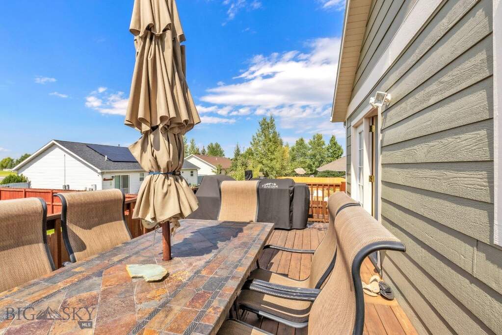 Welcome to 71 Leep Ln, a well-maintained 4-bedroom, 3-bath home offering 2,538 square feet of comfortable living space in Belgrade's desirable River Rock Subdivision. Built in 2005, this move-in-ready property reflects consistent pride of ownership, with proactive updates, quality finishes, and a functional floor plan ideal for everyday living, entertaining, and hosting guests. Inside, clean and well-kept interiors are highlighted by vaulted ceilings, a finished basement, and real hardwood floors in the kitchen and dining room. Wood blind window coverings add warmth throughout the home, while upgraded showerheads and faucets provide a refreshed, modern feel. The home also features in-wall wired networking - ready for a customized home theater experience. Significant mechanical updates offer peace of mind, including a new water heater in 2021, new furnace in 2022, and new air conditioning system in 2025. Smart home features include smart door locks, security cameras, a Ring system, smart sprinkler controller, and central cooling paired with forced-air gas heat. Included appliances and a jetted tub in the primary suite add comfort and convenience. Outdoor living has been thoughtfully maintained as well. The exterior was freshly painted in 2025, and the nicely sized lot features mature perennials, underground sprinklers, vinyl fencing, and mountain views. The patio provides a welcoming space for relaxing or entertaining, while the additional shed offers convenient storage. An oversized attached garage and ample off-street parking make it easy to store recreational vehicles, gear, and hobby equipment. Located within the River Rock Subdivision, residents enjoy access to parks, walking trails, open green spaces, the community clubhouse, and River Rock Pond, with HOA oversight that helps maintain a cohesive, well-kept neighborhood. With easy access to schools, shopping, dining, the airport, and outdoor recreation, this carefully maintained home offers comfort, reliability, and long-term value-ready for its next chapter.