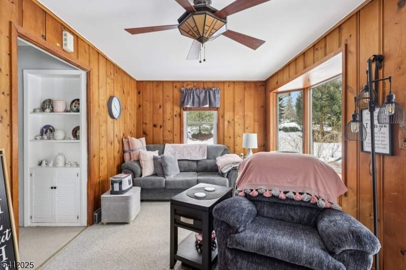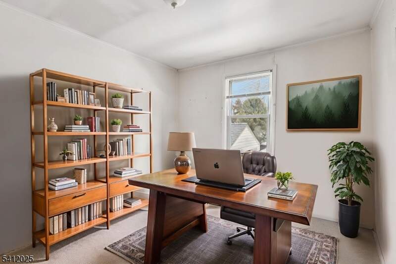 Welcome to this charming, sun-filled Ranch offering thoughtful updates and true move-in-ready convenience. Set on a spacious, private lot, this beautifully maintained home blends comfort, style, and future potential. Recent updates include a new roof, new HVAC (2025), new water heater (2025), fresh interior paint, an updated bath, and a renovated kitchen featuring granite counters. Designed for easy one-level living, with room to expand in the future, the home welcomes you into a spacious living room filled with an abundance of natural light flanked by a charming bay window and built-in bookshelves. The updated kitchen offers granite counters, plenty of prep space, and an island with seating and storage, while a skylight enhances the space with natural sunlight. The adjoining dining area features sliding glass doors that open to a spacious wood deck, perfect for entertaining or relaxing. Two comfortable bedrooms (one ideal for a home office) and a tastefully renovated full bath complete the main level. The finished lower level expands the living space with a large recreation room featuring a cozy wood-burning stove ideal for relaxing, working from home, or a personal gym. Additional highlights include an exterior basement entrance, generous storage, a large laundry room, a detached one-car garage, and a multi-car driveway. Conveniently located close to NJ Transit trains, highly rated schools, shopping, and restaurants. A rare opportunity in this highly desirable town!