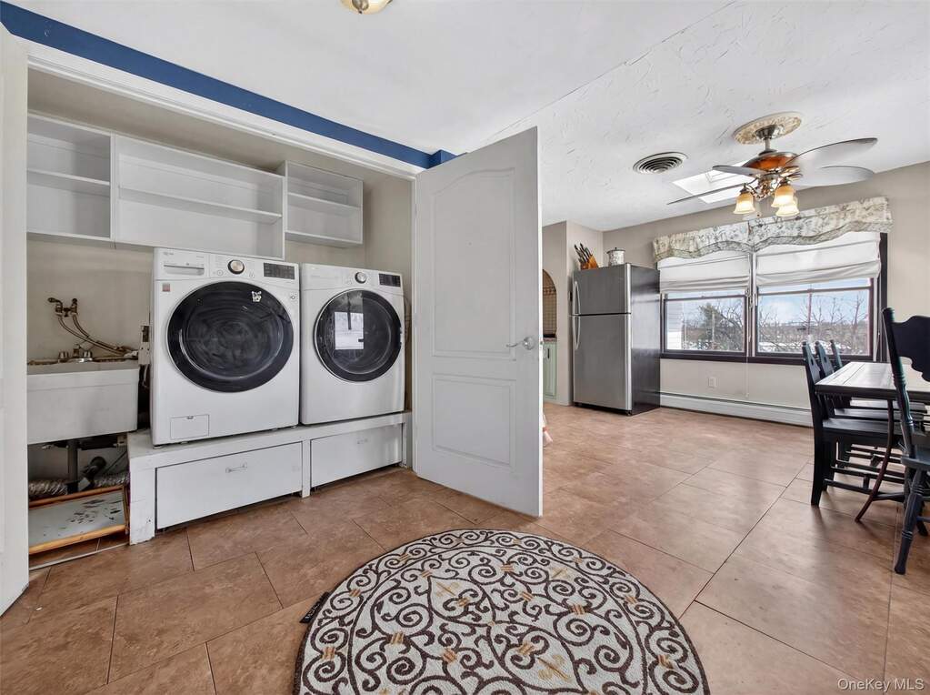 Welcome to a home that truly offers it all. Situated in a sought-after Blue Ribbon school district, this extended High Ranch combines a spacious, sun-filled layout with a rare and valuable feature: a fully legal one-bedroom apartment that can be rented out for immediate income or used as a high-end guest suite. The main level is designed for easy living, featuring gleaming hardwood floors that flow through the formal dining room and into a bright, welcoming eat-in kitchen. One of the standout features of the home is the gorgeous sunroom, which serves as a perfect retreat for morning coffee or a home office, with direct access to the upper wood deck. Down the hall, the primary suite offers a private en suite bath, accompanied by two additional bedrooms and a second full bath. Downstairs, the home continues to impress. A cozy family room features sliders that lead straight out to the yard, while the legal rental apartment-complete with its own kitchen, living area, and full bath-provides total flexibility for homeowners looking to offset their mortgage or house extended family. Even the attached single-car garage is heated, offering a great option for a gym or extra hobby space, especially since there is a separate two-car detached garage for your vehicles. The outdoor space is just as inviting, with a fully fenced-in yard, a beautiful paver patio, and plenty of room to entertain. Best of all, you're in a prime location: just 25 minutes from the George Washington Bridge and minutes away from major highways, great restaurants, shopping, and scenic hiking trails. It's the perfect balance of suburban peace, city accessibility, and smart financial potential.