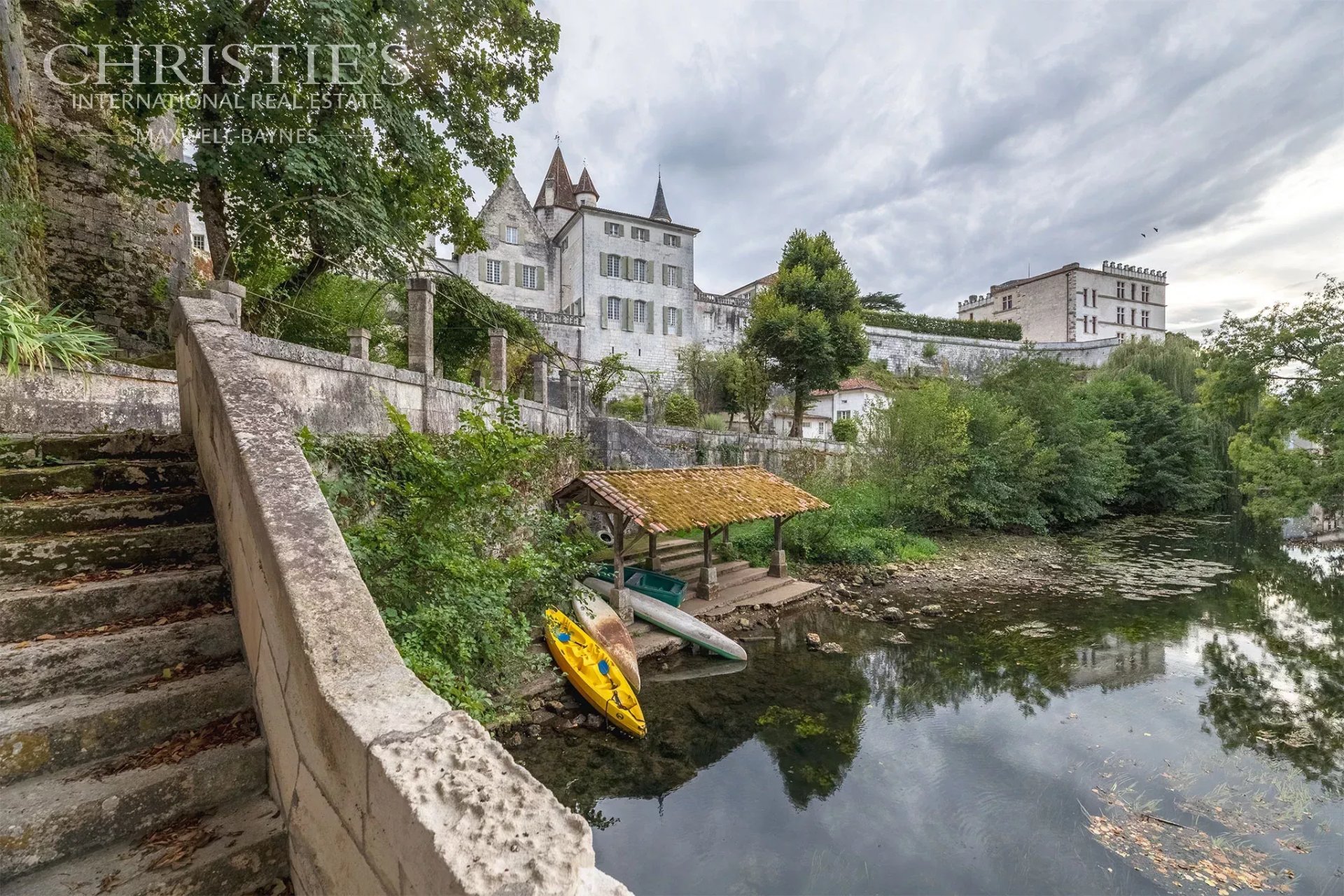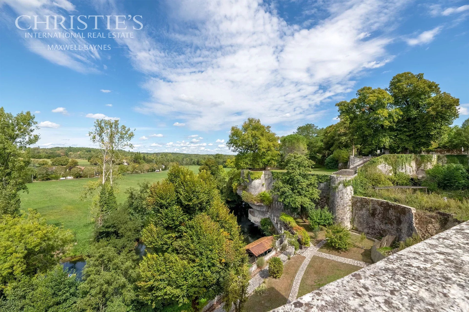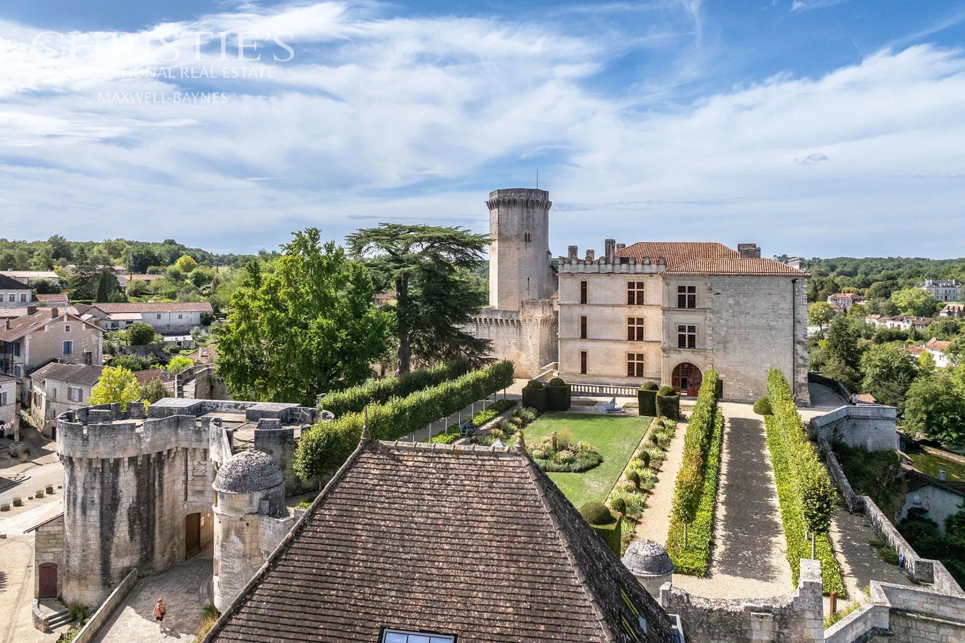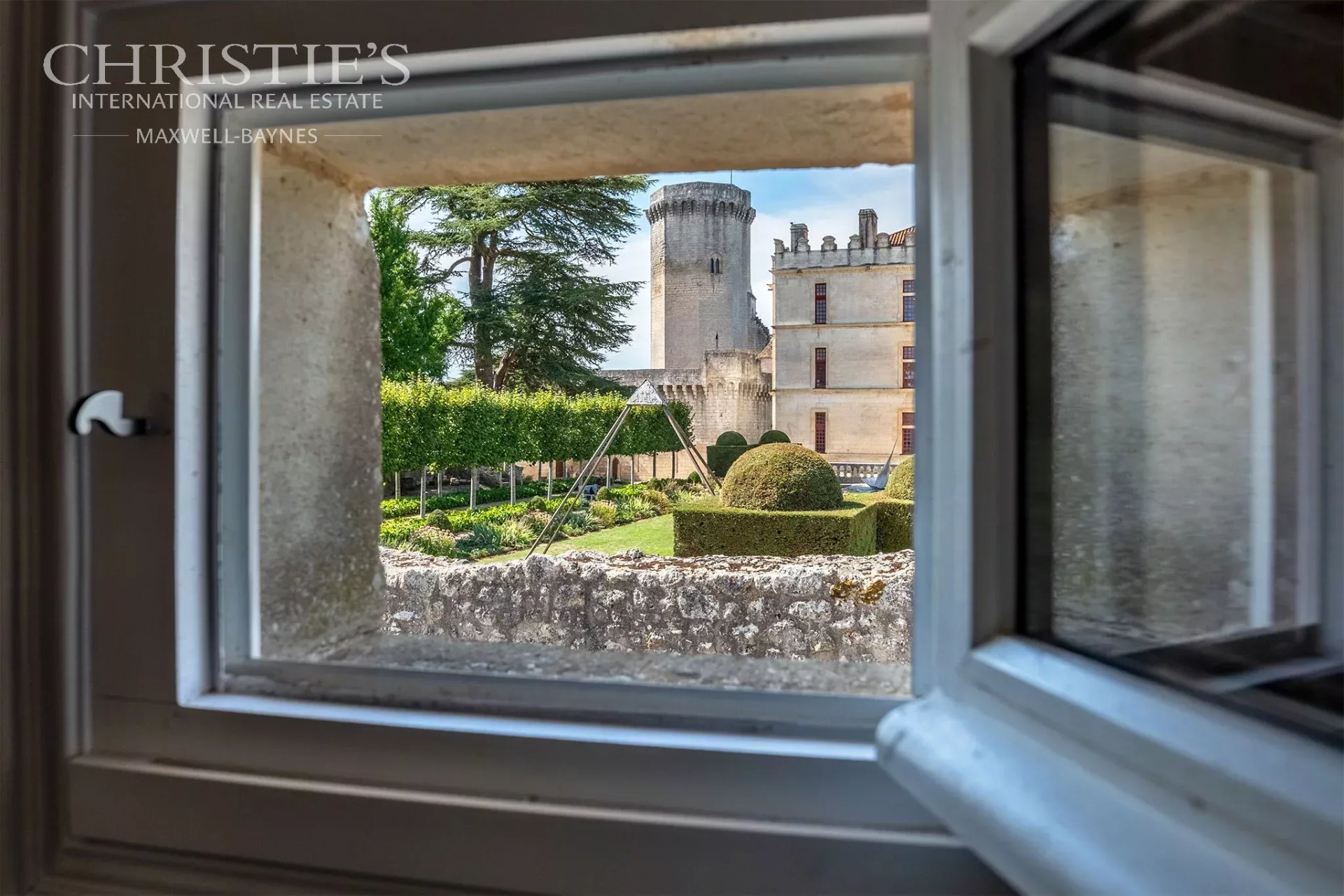 The château commands captivating views of medieval rooftops on one side, and serene panoramic countryside vistas and breathtaking views of the river and valley on the other. Set on a picturesque pedestrian street, it stands proudly between an 11th-century château and a Roman-era church.