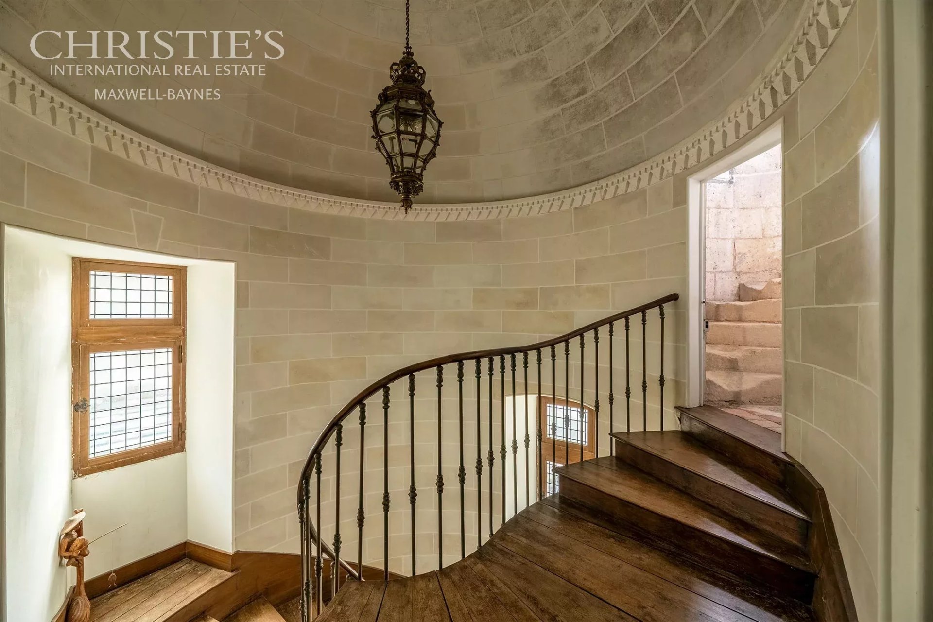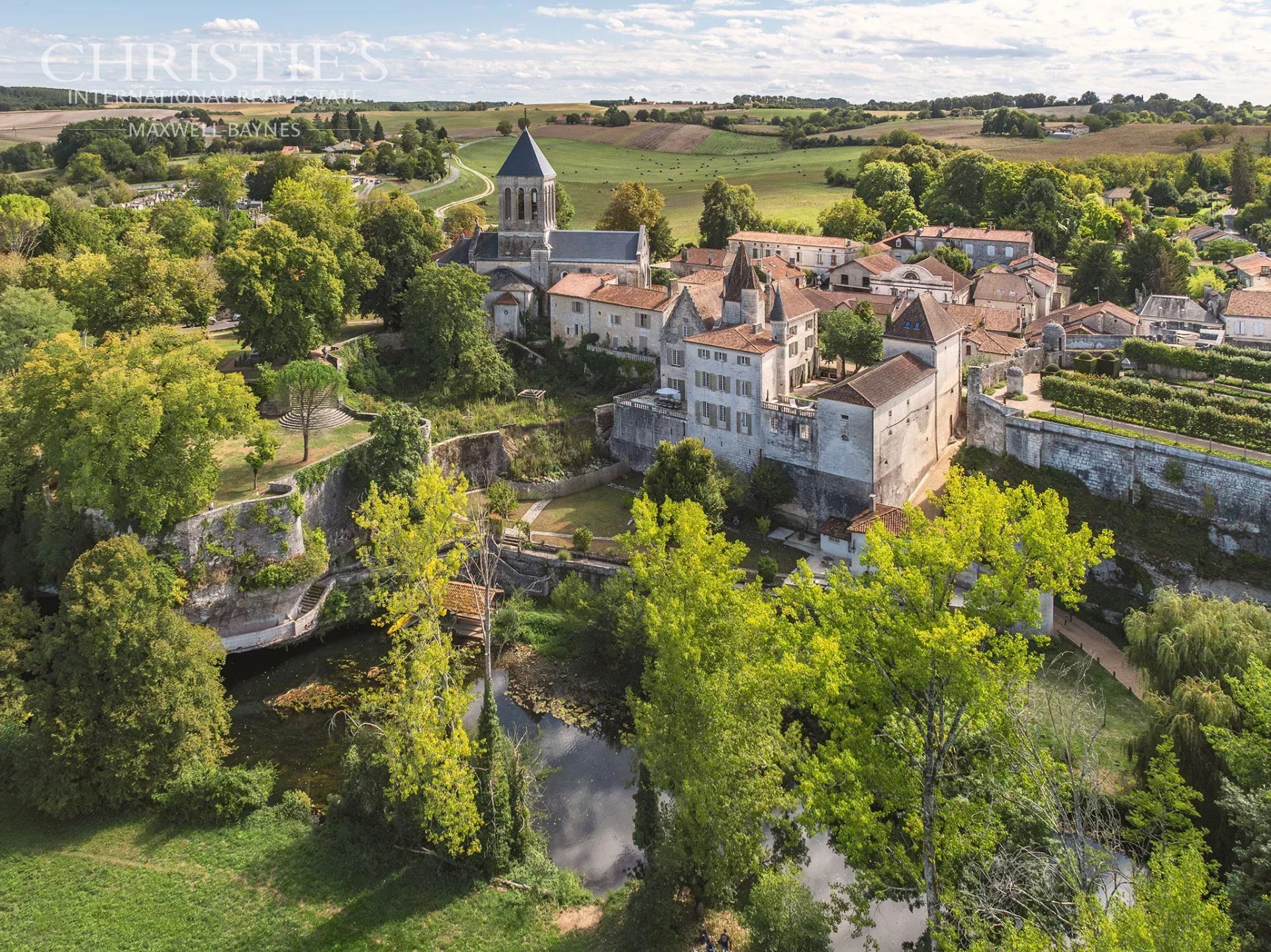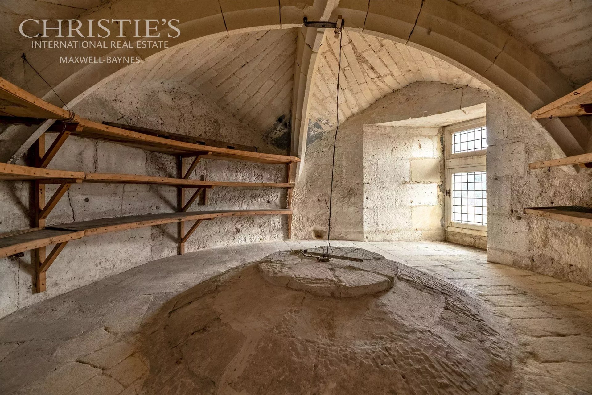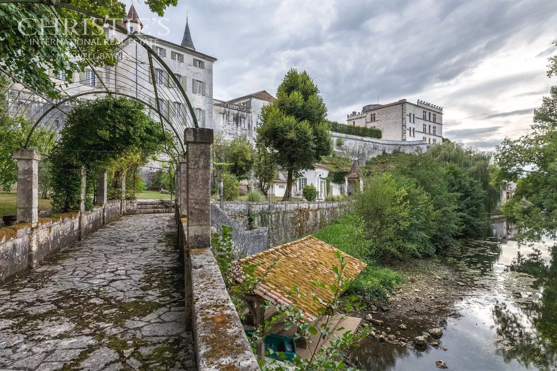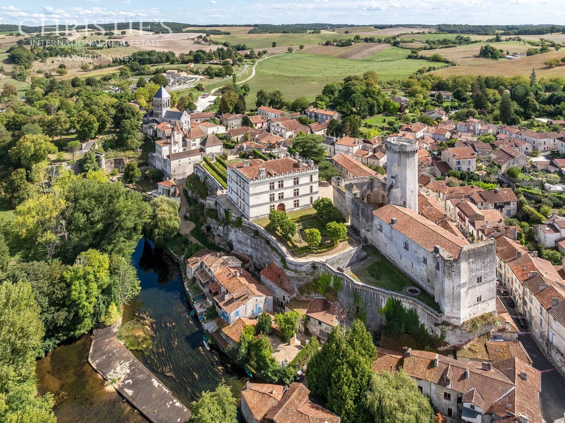 The château commands captivating views of medieval rooftops on one side, and serene panoramic countryside vistas and breathtaking views of the river and valley on the other. Set on a picturesque pedestrian street, it stands proudly between an 11th-century château and a Roman-era church.