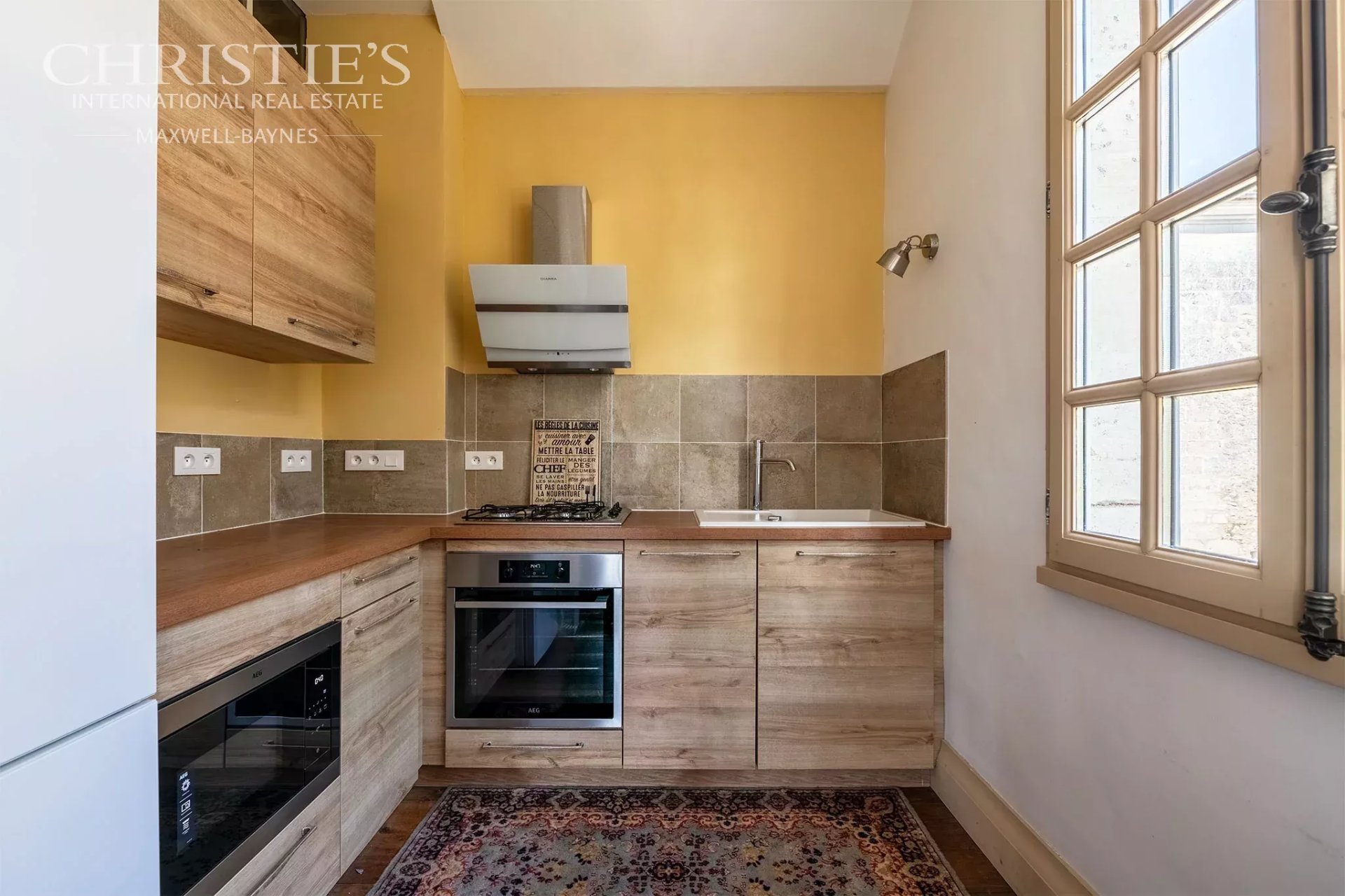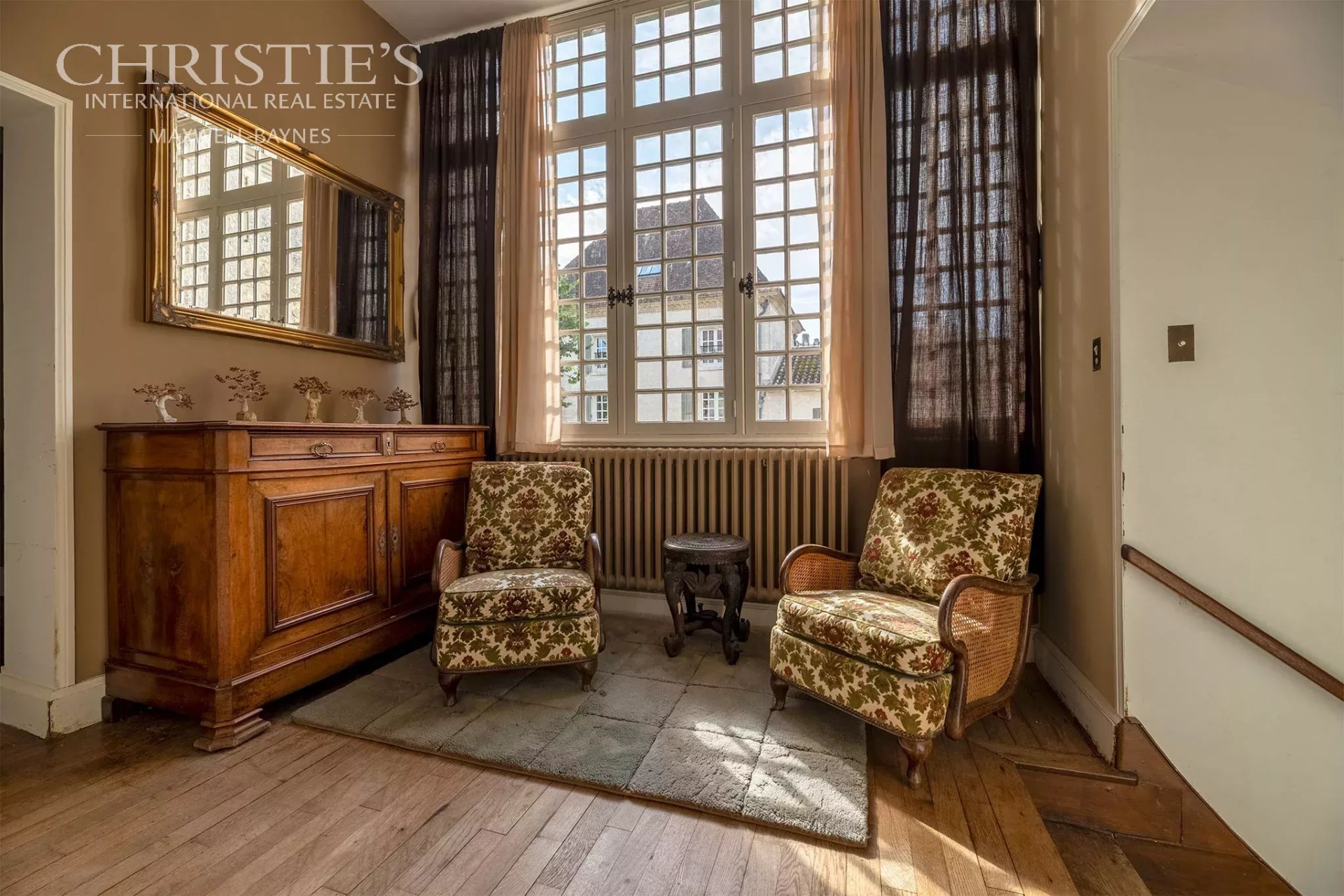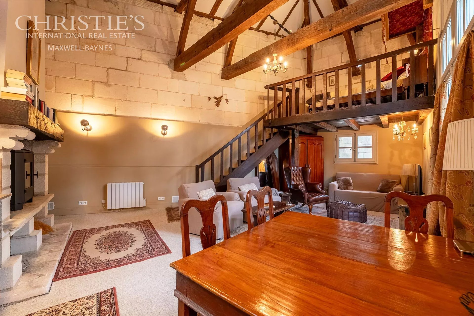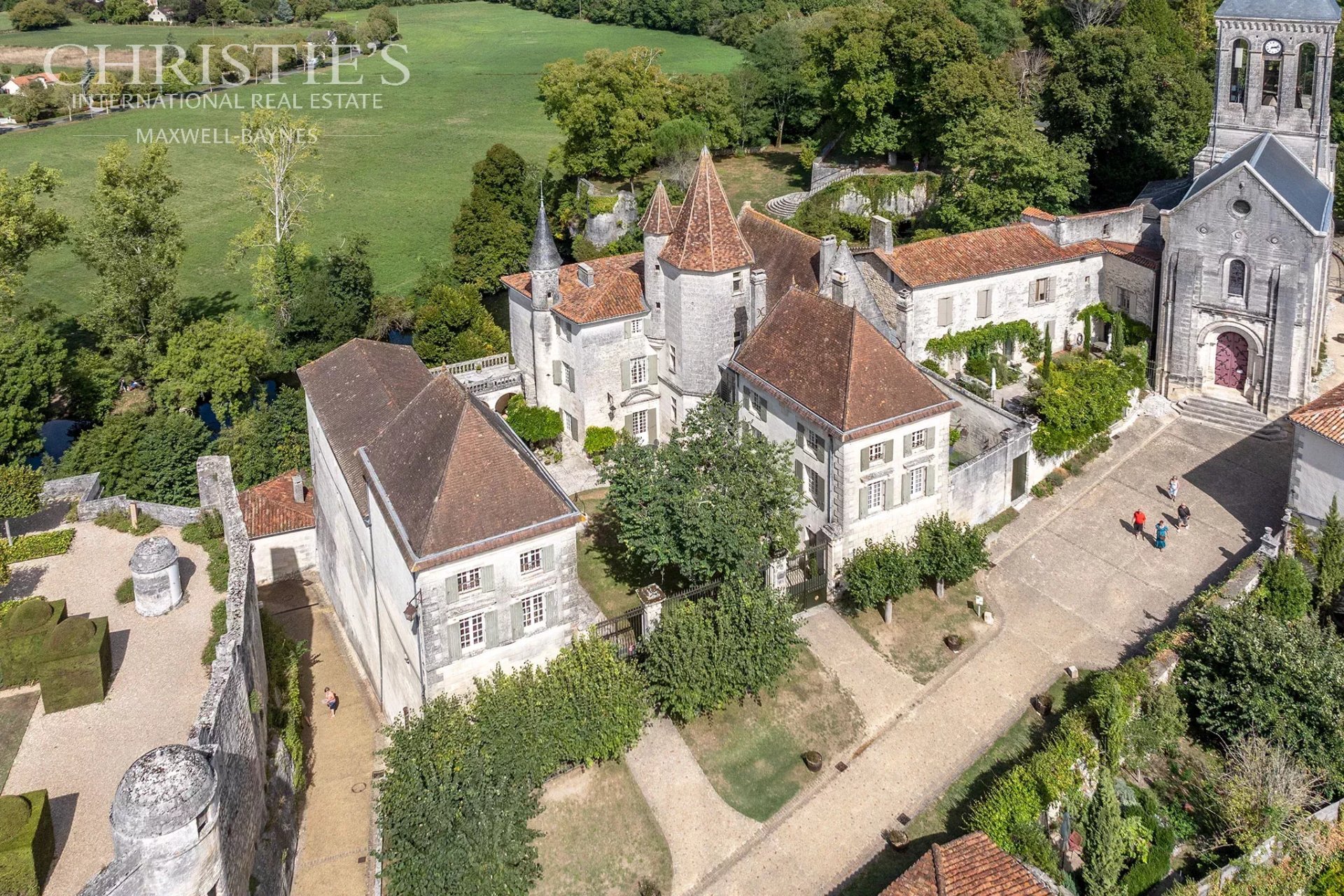 The château commands captivating views of medieval rooftops on one side, and serene panoramic countryside vistas and breathtaking views of the river and valley on the other. Set on a picturesque pedestrian street, it stands proudly between an 11th-century château and a Roman-era church.