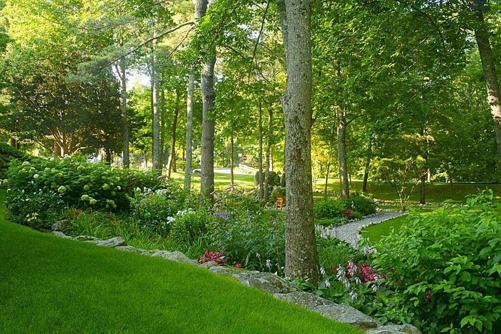 22 High Street, located in Camden's coveted in-town historic district, is a distinguished 1802 Federal-style mansion set gracefully on 1.2 acres of manicured lawns, vibrant gardens, and a lively mountain-fed stream. Meticulously maintained and thoughtfully updated, the iconic property is home to the award-winning Camden Maine Stay Inn, ranked #1 in Camden, #1 in Maine, #3 in the United States, and #16 in the world in Tripadvisor's current rankings of B&Bs and inns. This exalted distinction reflects the Inn's exquisite setting, exceptional guest experience, and enduring reputation. With rare versatility, the property may continue operating as a thriving lodging destination or transition seamlessly into a spectacular private residence. The three-story main house blends historic architecture with modern comfort, featuring eight elegantly appointed guest rooms with updated baths and several inviting common spaces including two classic parlors, formal dining room, cozy den, and four-season sunporch overlooking the lush grounds. A gourmet kitchen is equipped with modern appliances and anchored by a traditional wood-burning cookstove and includes an office nook and sitting area. Connected yet private, the spacious, two-story owner's quarters in the original barn has two bedrooms, two-and-a-half baths, open living and dining area with an adjoining private deck, full kitchen with walk-in pantry, flexible bonus room, two-car garage, mudroom, and abundant storage. The park-like grounds feature tiered lawns, beautiful flower gardens, towering specimen trees, a meandering river-rock pathway, a granite bridge over the brook, and several tranquil sitting areas - all just a five-minute stroll to Camden's scenic harbor, boutique shops, and acclaimed restaurants. Blending historic elegance, refined living, and proven investment performance, this extraordinary estate presents a rare commercial or residential opportunity in one of Midcoast Maine's most desirable destinations.