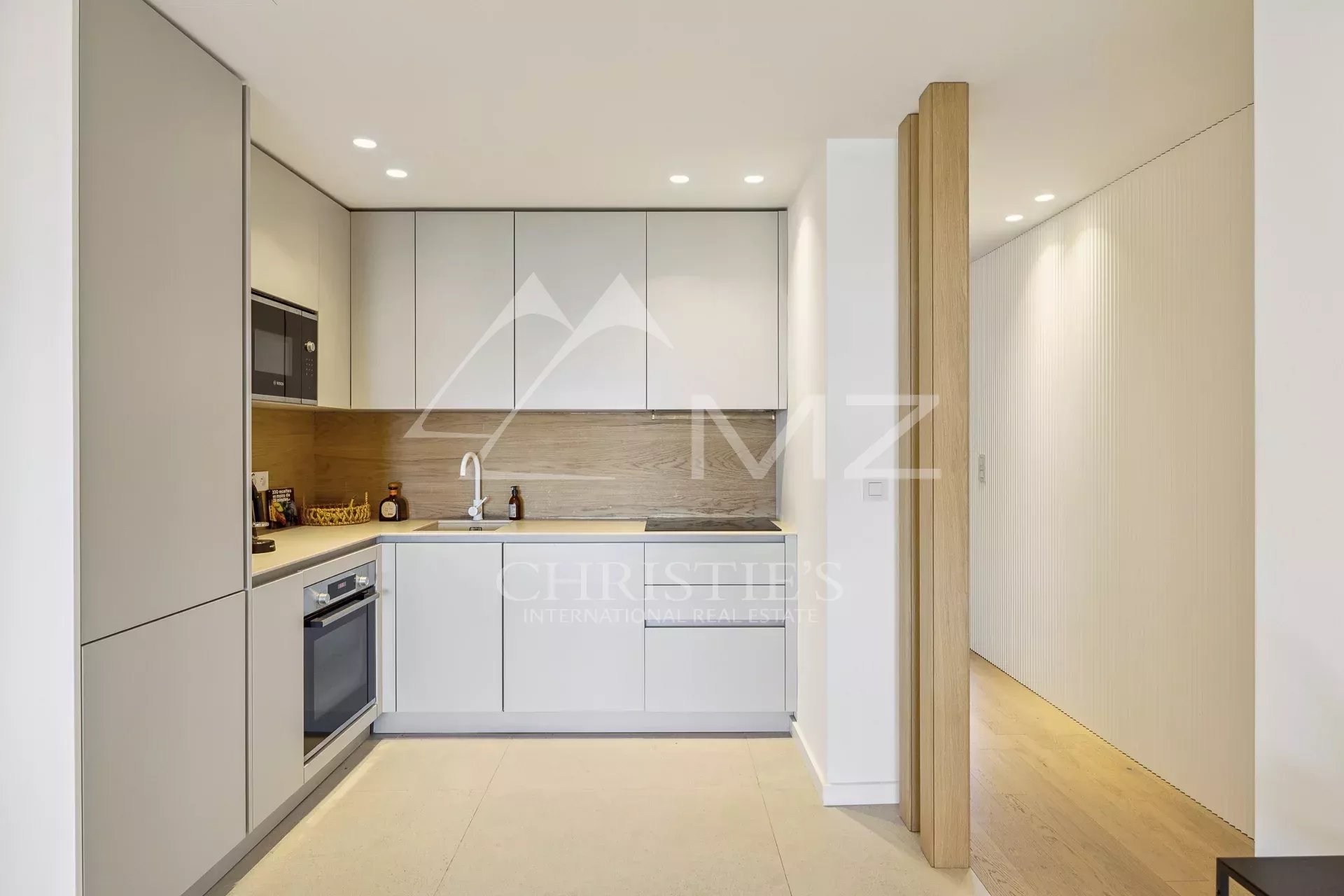 The apartment, in excellent condition, stands out for its contemporary spirit and the use of quality materials. The bright living room opens onto a beautiful terrace, offering breathtaking views of the sea and the surrounding park, for an intimate living environment without any opposite neighbors.