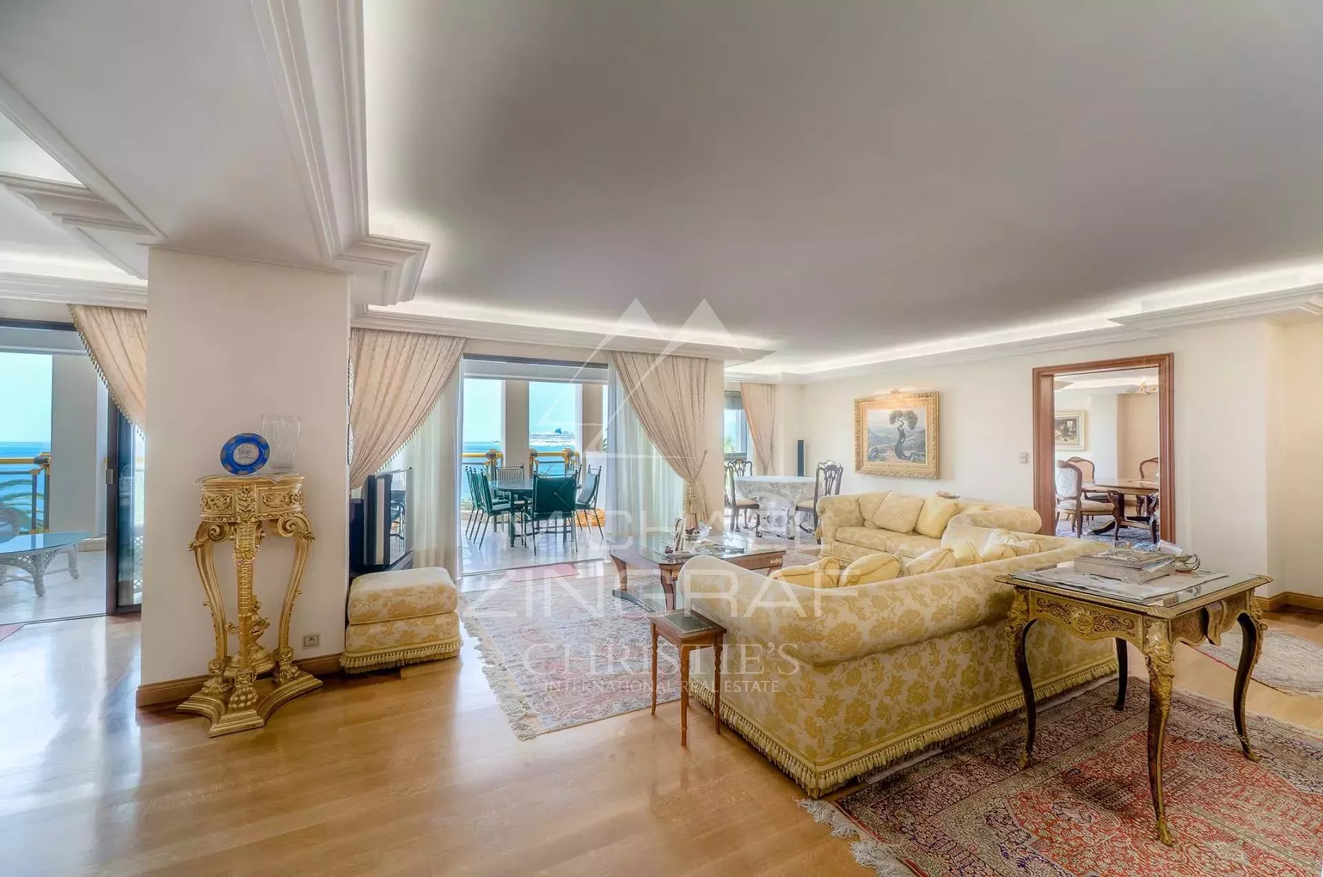 Exceptional! In one of the finest residences on the Croisette, this apartment of approx. 334 sqm with a possibility to extend up to 360 m², offers 7 rooms, several large terraces and a panoramic sea view. Luxury residence with a caretaker. Garage.