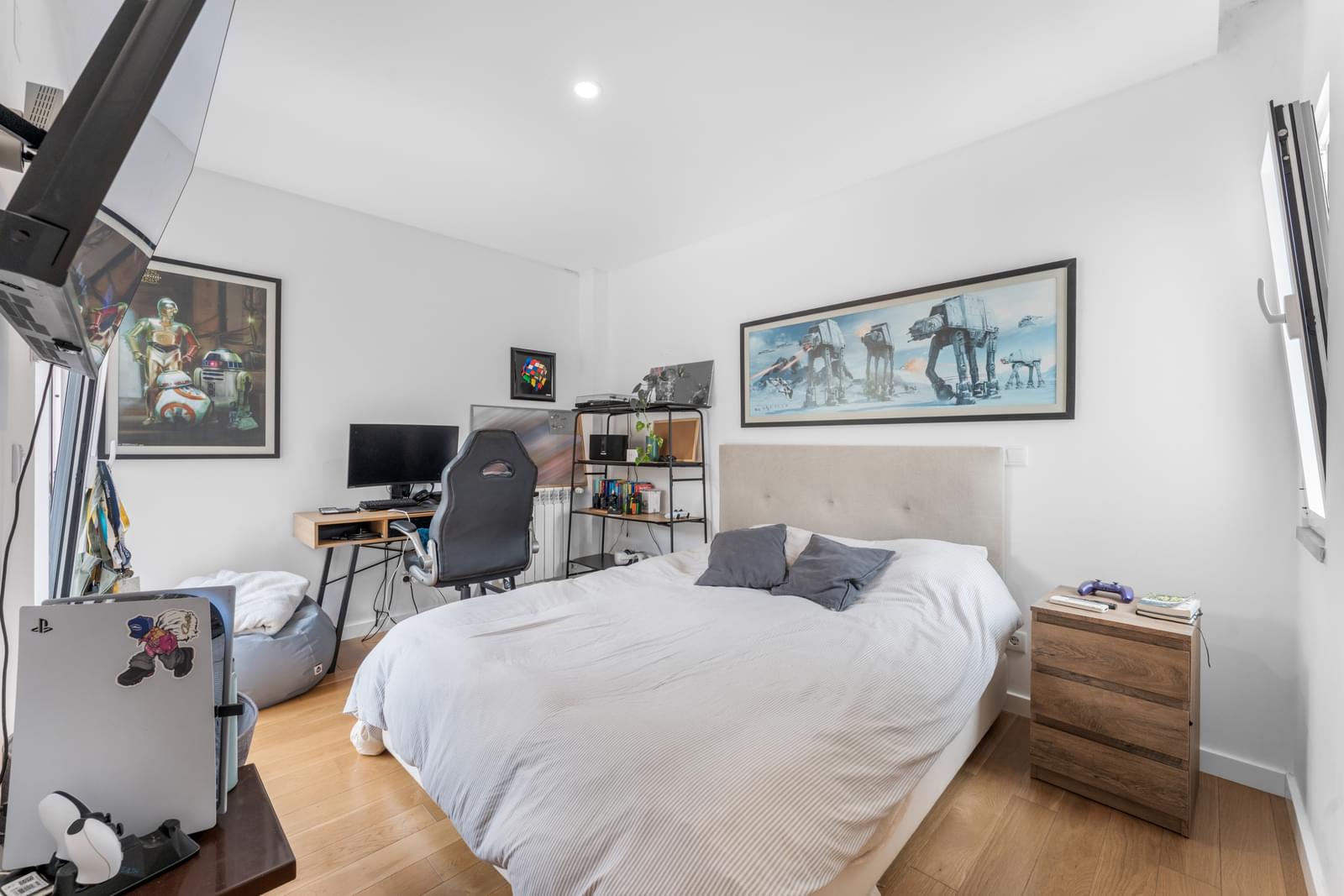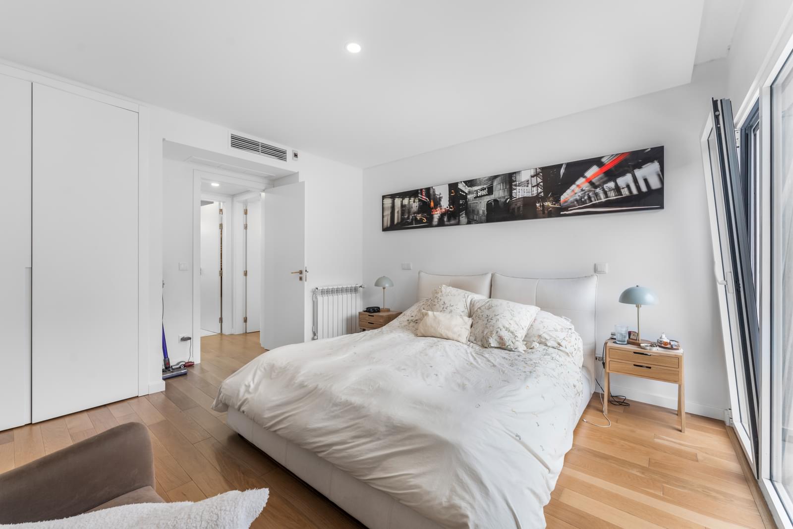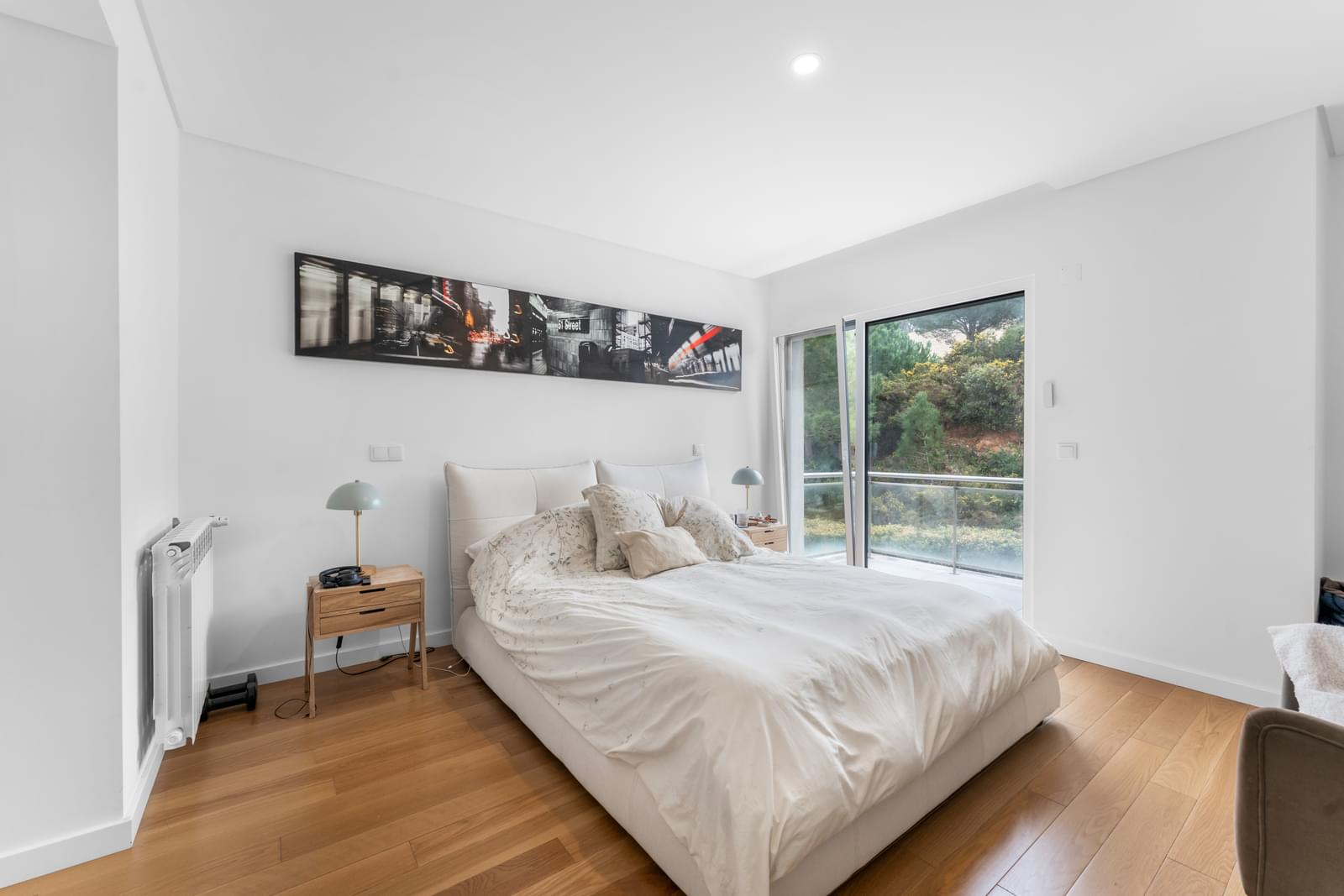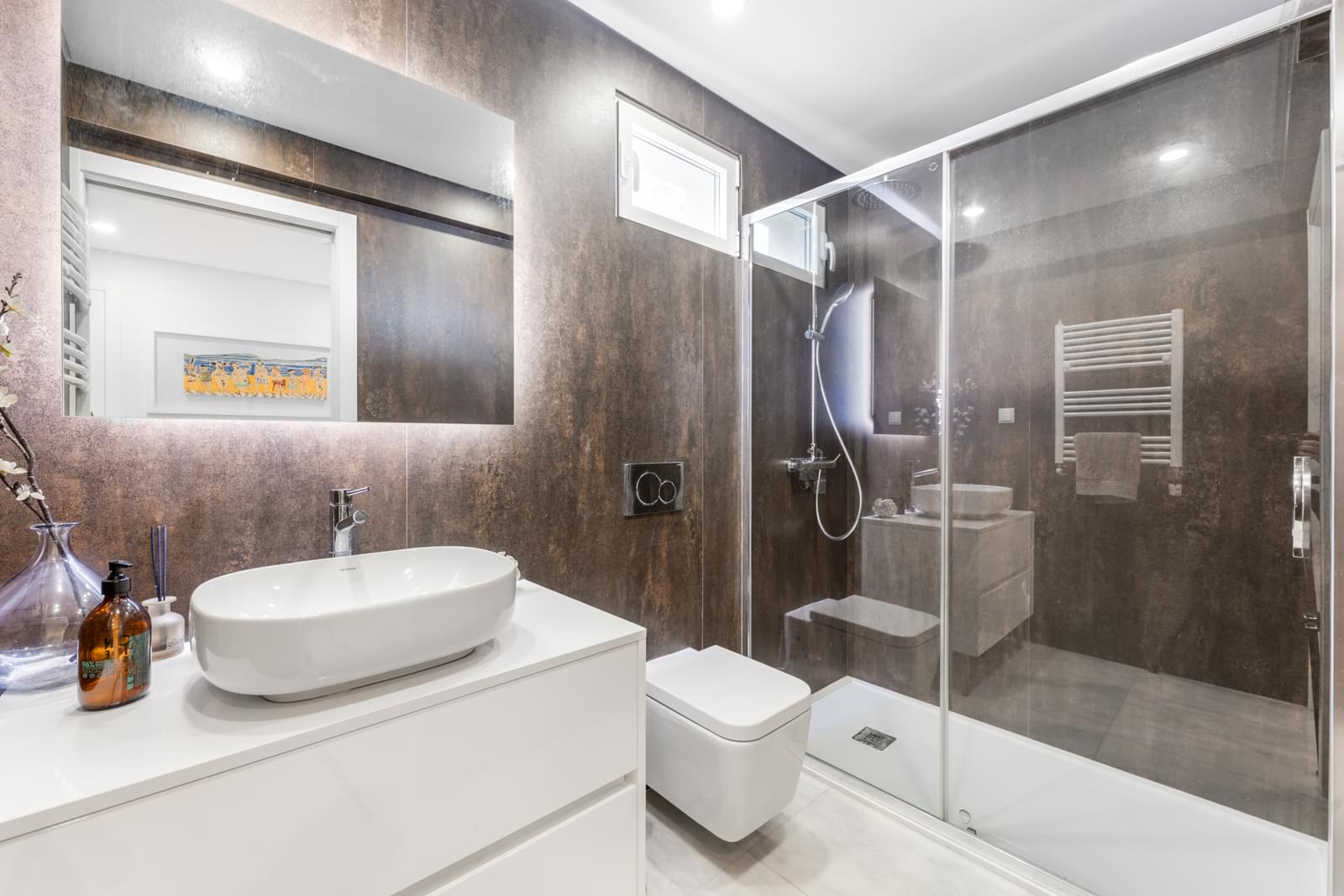The first floor comprises three bedrooms, including a master suite with a complete bathroom and private balcony. The other two bedrooms share a modern bathroom with a walk-in shower. All rooms enjoy independent balconies and excellent sun exposure.