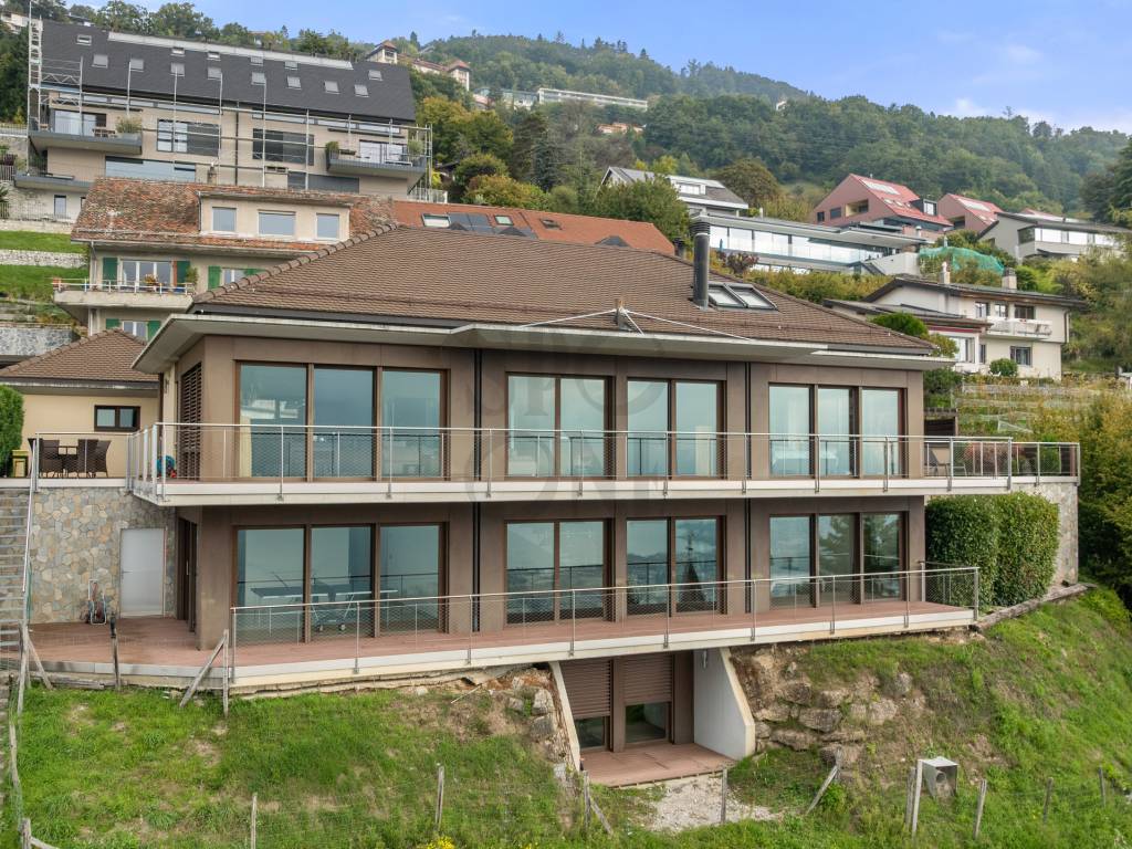 Nested in the charming commune of Chardonne, in the very heart of the Vaud Riviera, just a stone's throw from Vevey and Montreux, this superb contemporary architect-designed villa offers breathtaking panoramic views of Lake Geneva and the mountains.