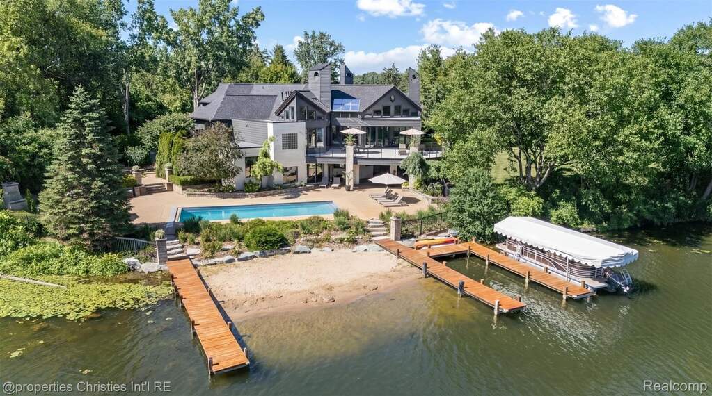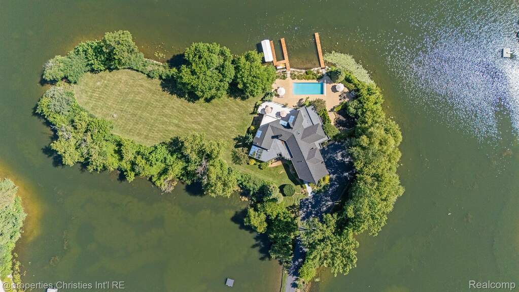 Presenting a once in a lifetime opportunity to own a private island in one of Michigan's most exclusive all sports lake communities. With a local reputation of prestige and mystique, Lake Sherwood is the pinnacle of lakefront communities in affluent Oakland County and is surrounded by the most bustling upscale metropolis' in the country, just minutes from downtown Milford. 4912 Oakwood Court is a nearly 1.6-acre legacy parcel tucked at the way back of a conveniently situated cul-de-sac that enjoys 1,500+ feet of prime waterfront and, without its long and elegant tree lined driveway, would be entirely surrounded by pristine waters. This rare island is improved by an architectural masterpiece, a timeless estate home designed to be acquired by a buyer that understands its place as the pride of a truly private, residents only lake. This home features a plethora of natural sunlight, rustic stone fireplaces complete with imported limestone mantles, WOLF appliances, and lustrous white maple hardwood flooring, together crafting one of the finest residences in the state. The fluid layout, and extremely thoughtful features offer the highest degree of functionality for any lifestyle; ultimate control and privacy is one of the many benefits this property offers. The spacious terrace overlooking the resort style pool complete with a breathtaking lake view sits just steps away from the Northern Michigan grown cedar docks that your grandchildren will walk on, which offer permanent docking solutions for your boats. Situated in the "no wake" part of the lake, this ONE of ONE property is mere seconds from the vast oasis that is Lake Sherwood. Every part of the property offers jaw dropping lake views, including the towering outdoor fireplace just off the pool. Complete with spacious and well-manicured rolling grounds fit for a tennis court, an additional structure, or whatever else you decide to feature, this incredible estate is an asset to enjoy and design a lifestyle around.