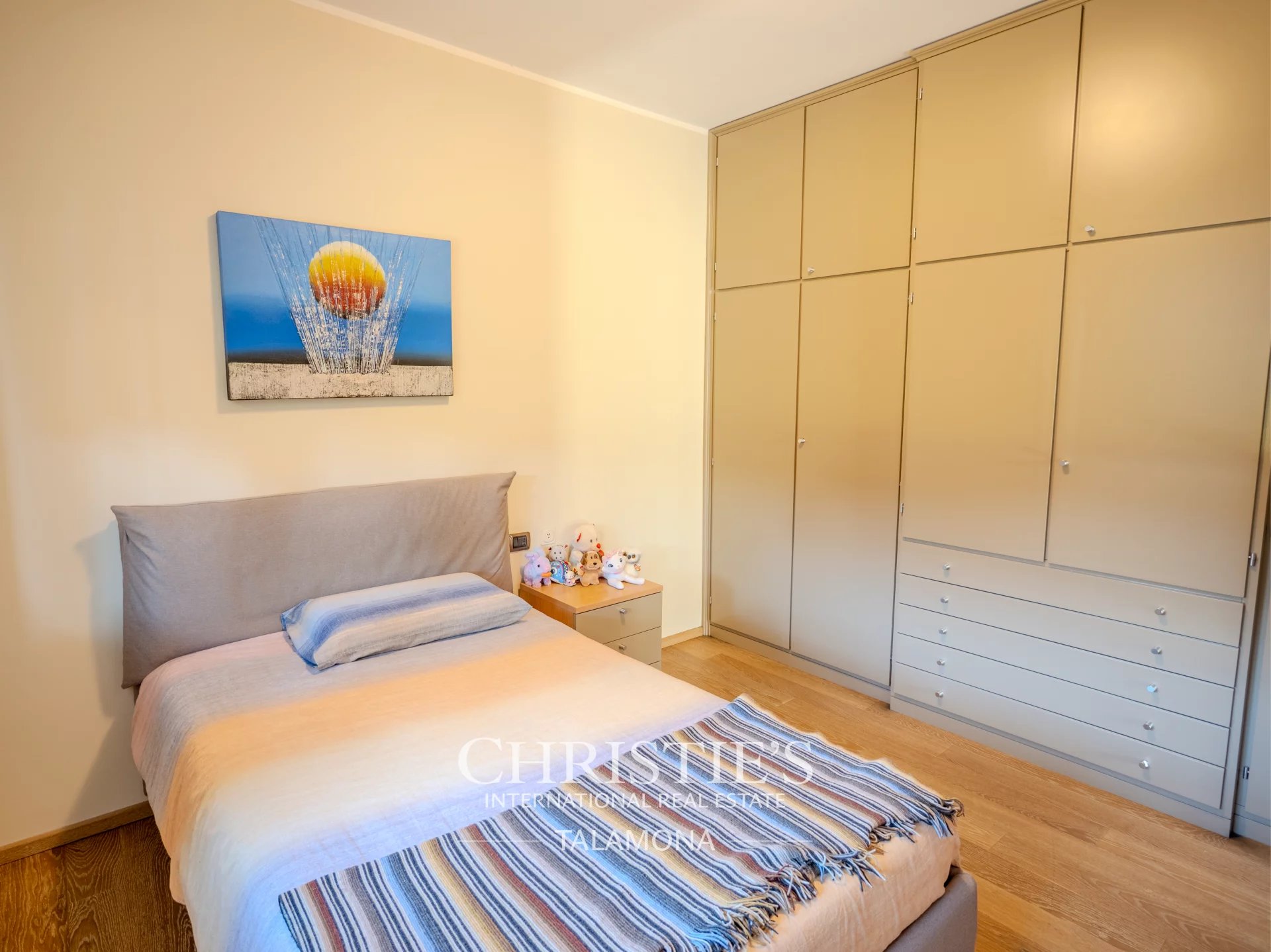 The sleeping area is located on the second floor and features a master bedroom overlooking the large park and has an en suite bathroom.