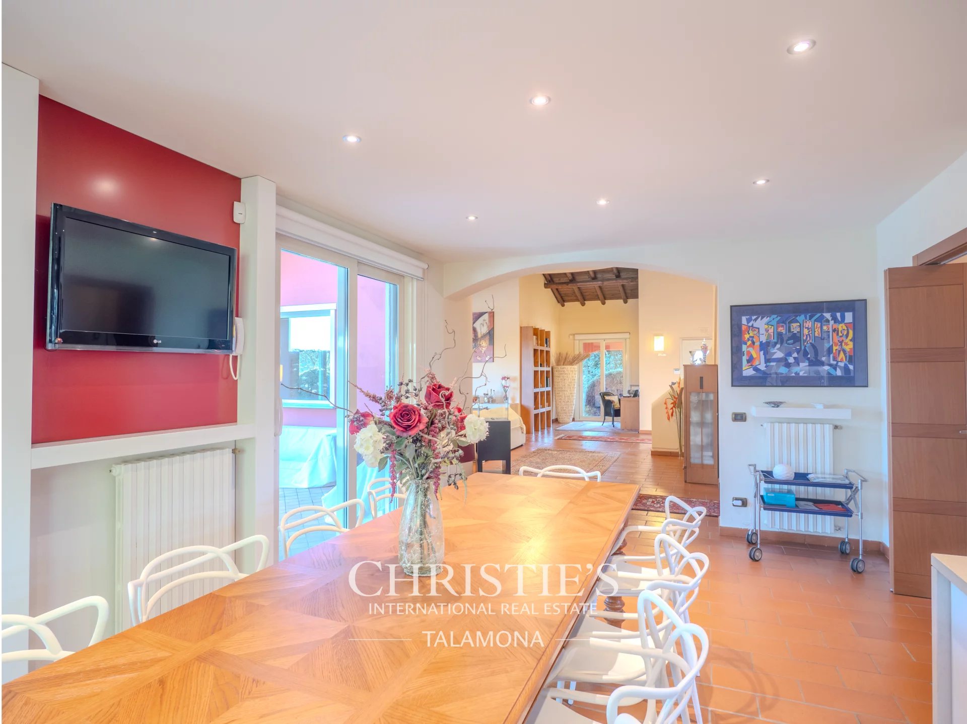 This finely renovated mansion is immersed in a green oasis of about 4,500 square meters embellished by a beautiful swimming pool.