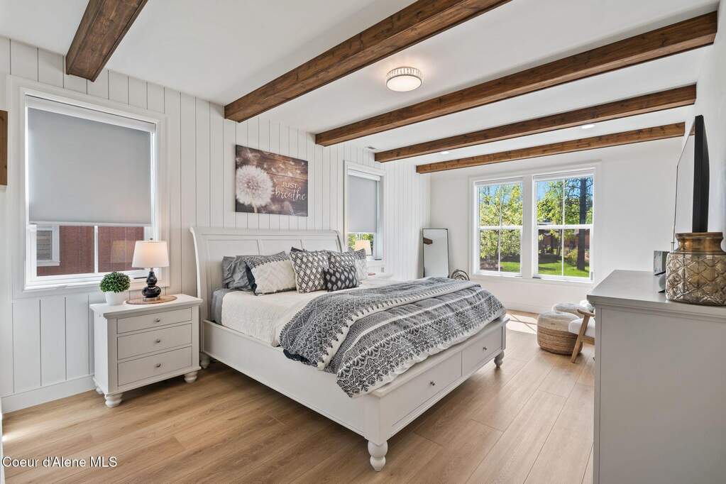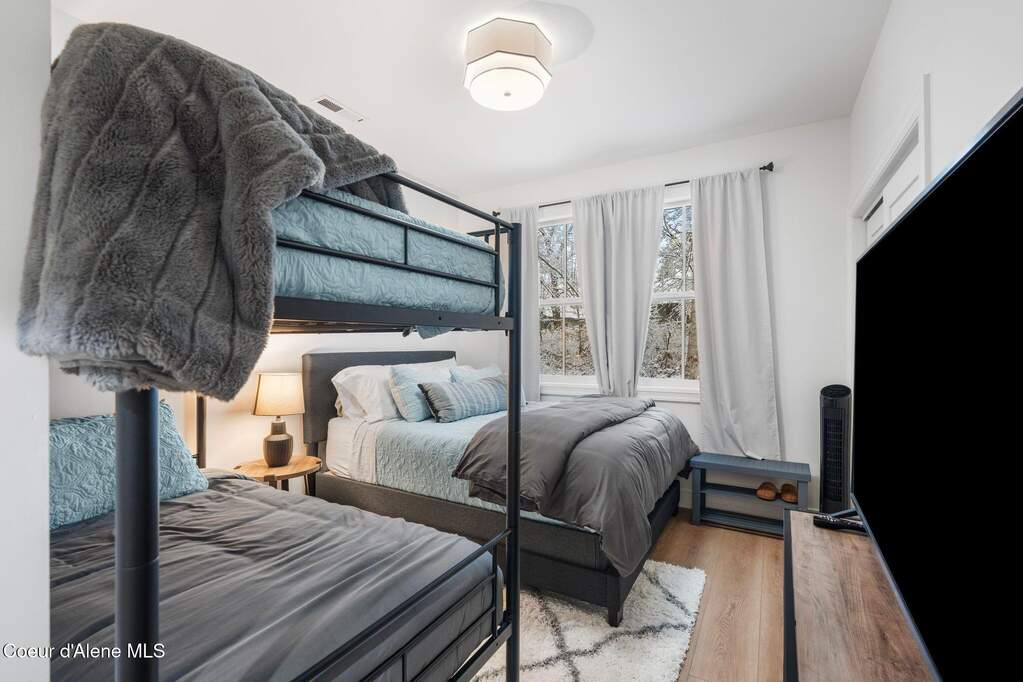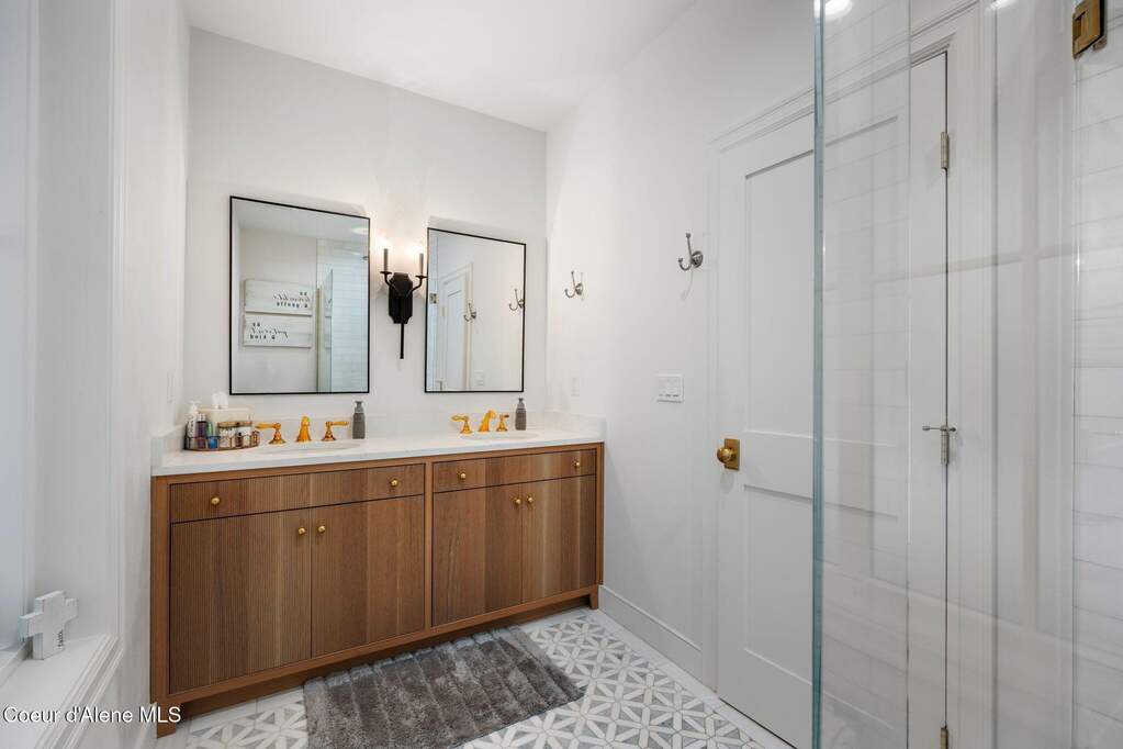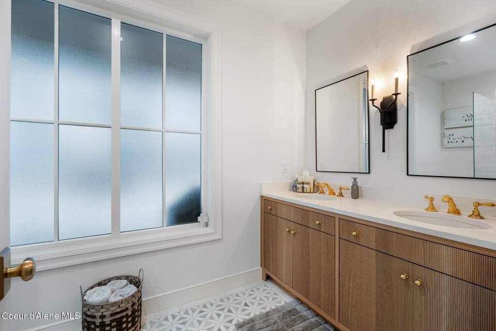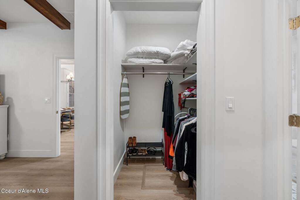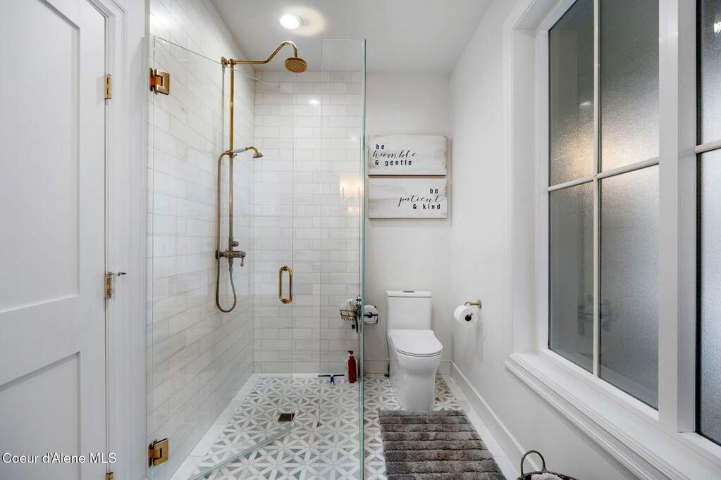 Timeless craftsmanship and refined mountain living come together in this beautifully designed custom home just blocks from the water in the highly desirable Dover Bay community. Vaulted ceilings and oversized windows fill the open-concept living space with natural light, highlighting custom white oak built-ins and a striking floor-to-ceiling stone fireplace that anchors the spacious great room. The chef's kitchen is thoughtfully appointed with stainless steel appliances, an Italian range with pot filler, custom plaster hood, white oak cabinetry and a large center island ideal for entertaining or everyday living, with seamless access to the private back patio. The dining area overlooks the expansive south-facing covered front porch, a perfect setting to relax and enjoy sunsets near the Pend Oreille River. The private primary suite is situated on one side of the home and features a generous bedroom with sitting area, dual closets, and a spa-inspired bath complete with custom cabinetry, Turkish mosaic marble flooring, and a luxurious rainfall shower. Two additional bedrooms and a full bathroom are positioned on the opposite side of the home, creating a desirable split-bedroom layout. A functional laundry room with storage leads to the attached two-car garage. Residents enjoy resort-style amenities including miles of walking and biking trails, a community marina, beach access, restaurant, fitness center, and sports courts. Located just minutes from Sandpoint and approximately 35 minutes from skiing at Schweitzer Mountain Resort, this home offers the perfect balance of luxury, recreation and North Idaho living.