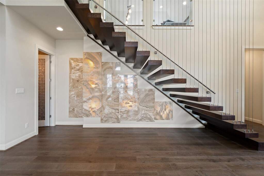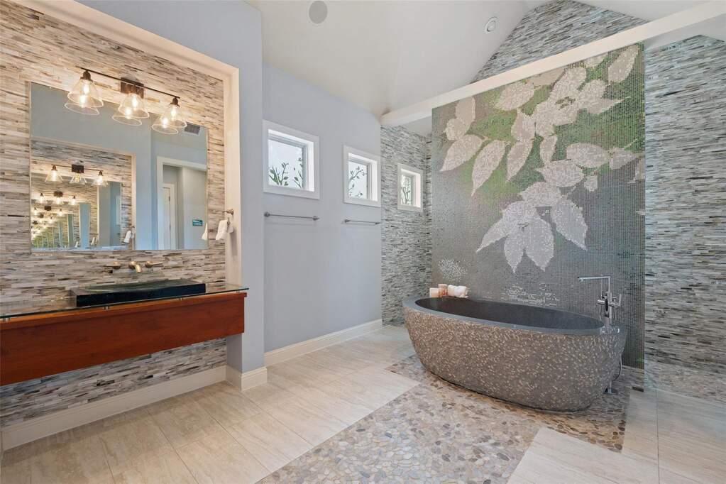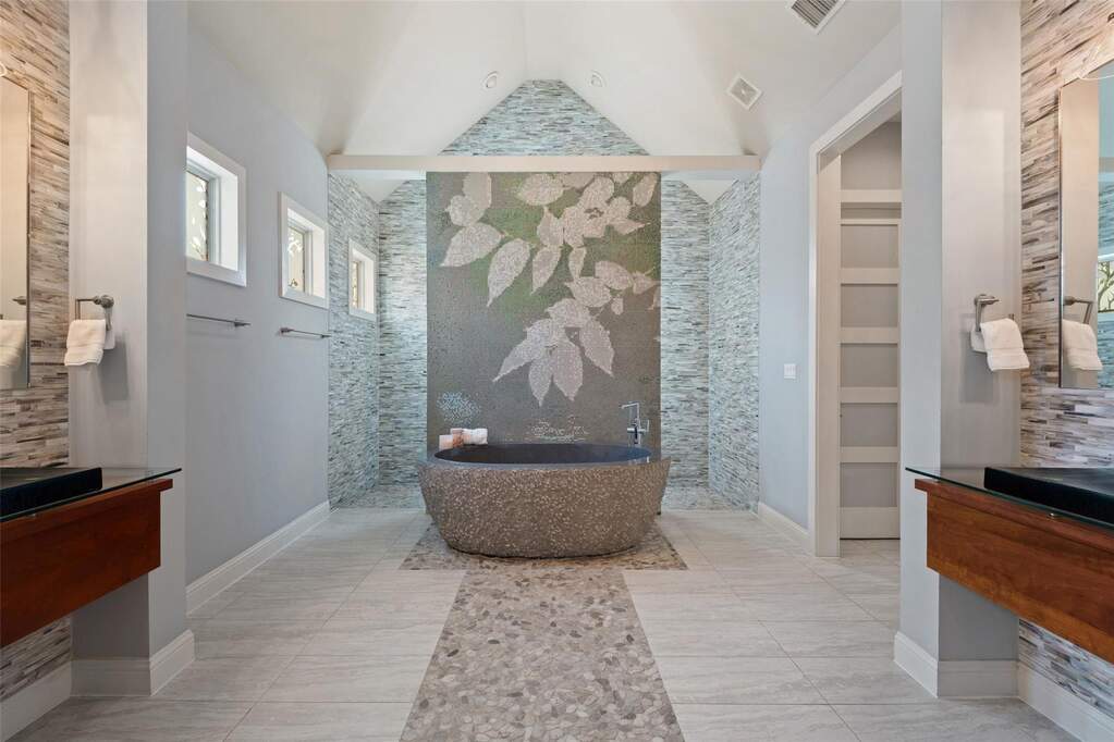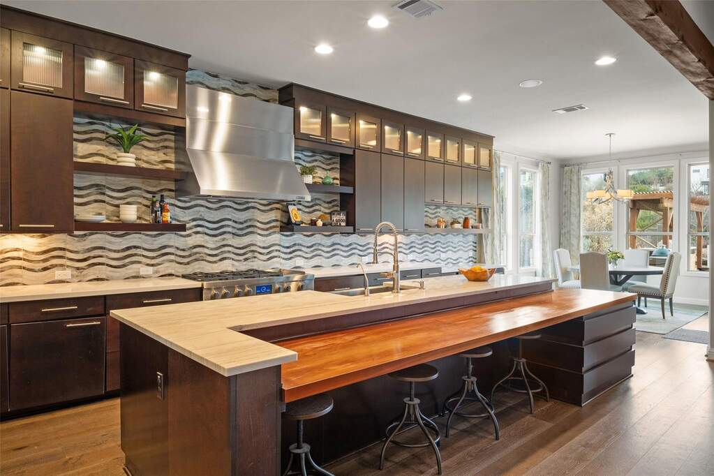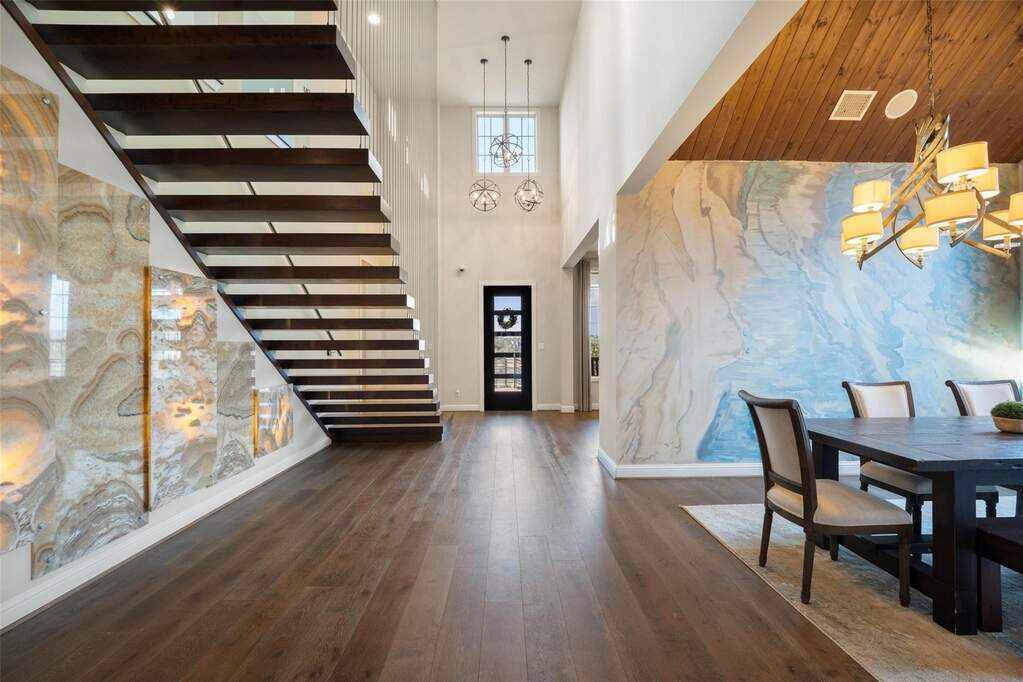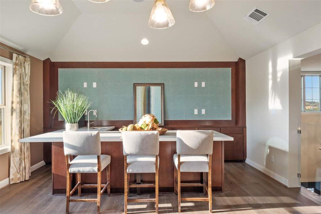 Perched on a hilltop within Lake Travis ISD, this warm contemporary 1½-story home combines thoughtful design, privacy, and peaceful views on an oversized 2 acre homesite only 7-8 minutes to the Hill Country Galleria and approximately 30 minutes to Downtown Austin. A sweeping circular drive creates a memorable arrival while positioning the home to take full advantage of the surrounding landscape and night skies, all while benefiting from a low tax rate and low HOA fees rarely found in properties offering this level of space and setting. The grand entry opens to vaulted ceilings and an expansive great room centered around a large island kitchen designed for gathering and entertaining. Expansive sliding glass doors create a seamless transition to covered outdoor living, where a fireplace, pool, and outdoor grilling area extend the living space for year-round enjoyment. Architectural details throughout include floating stairs, illuminated decorative onyx slabs, and numerous custom design elements, adding warmth and sophistication. The primary suite with spa bath and secondary bedrooms are located on the main level, creating an easy and functional everyday flow. A standout feature is the attached guest retreat with its own private entrance, kitchenette, and full bath, offering ideal flexibility for guests, multigenerational living, or private workspace needs. Upstairs, a spacious game room with wet bar, dedicated media room, and powder bath provide a separate entertainment space. Fully fenced with generous yard space, dog run, and room to enjoy the Hill Country setting, this property offers a rare balance of space, privacy, and convenience-just minutes from Bee Cave and the Hill Country Galleria's shopping, dining, and entertainment, as well as the natural beauty of Hamilton Pool and Reimers Ranch Park along the Pedernales River.