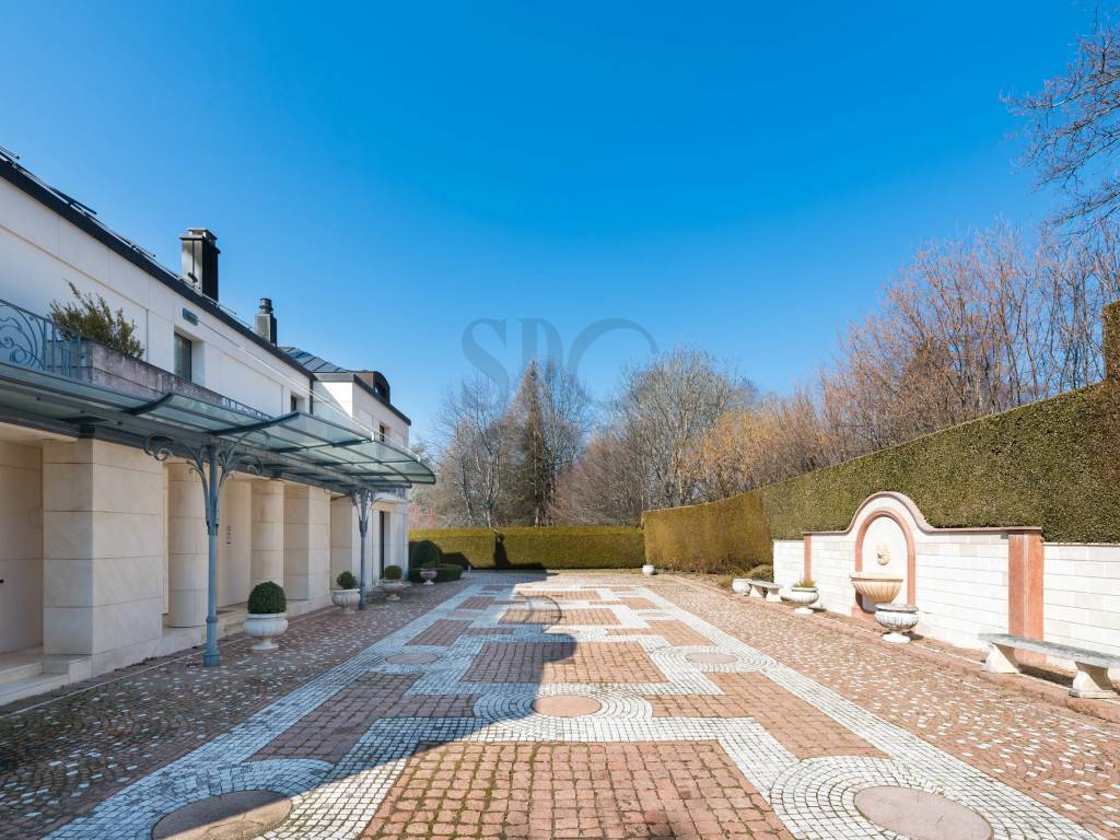 Implanted in a green setting of over 12,000 m², this exceptional residence stands out for its privileged location, sheltered from any nuisance. Situated on the edge of the Golf de Lausanne, in a peaceful, leafy residential area, the property immediately catches the eye with its unique architecture and absolute comfort.