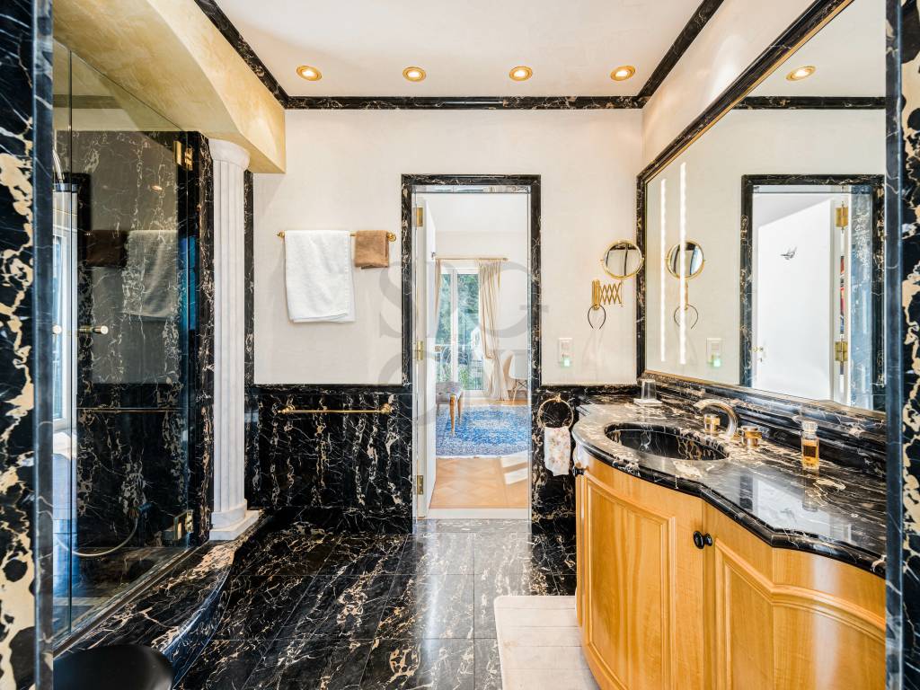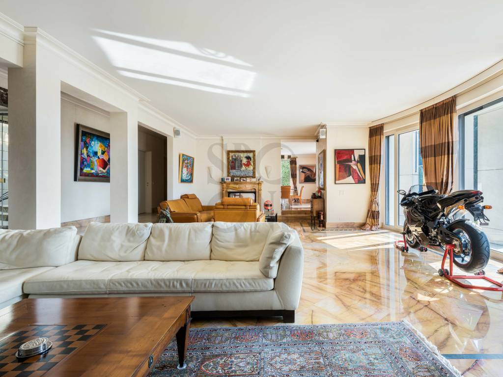 The charm begins on arrival, where an imposing electric gate opens onto a beautiful driveway leading to a large courtyard. Designed by renowned architect Gabrielle Rossi, this masterpiece of over 690 m2 of living space boasts a majestic entrance and a double spiral staircase.