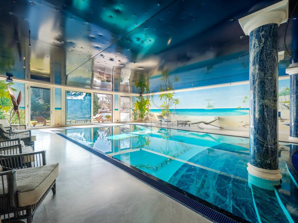 These high standards are also reflected in the presence of an elevator and a state-of-the-art alarm and video surveillance system. The wellness area includes a sumptuous Roman-inspired spa, a magnificent indoor pool and a fitness room.