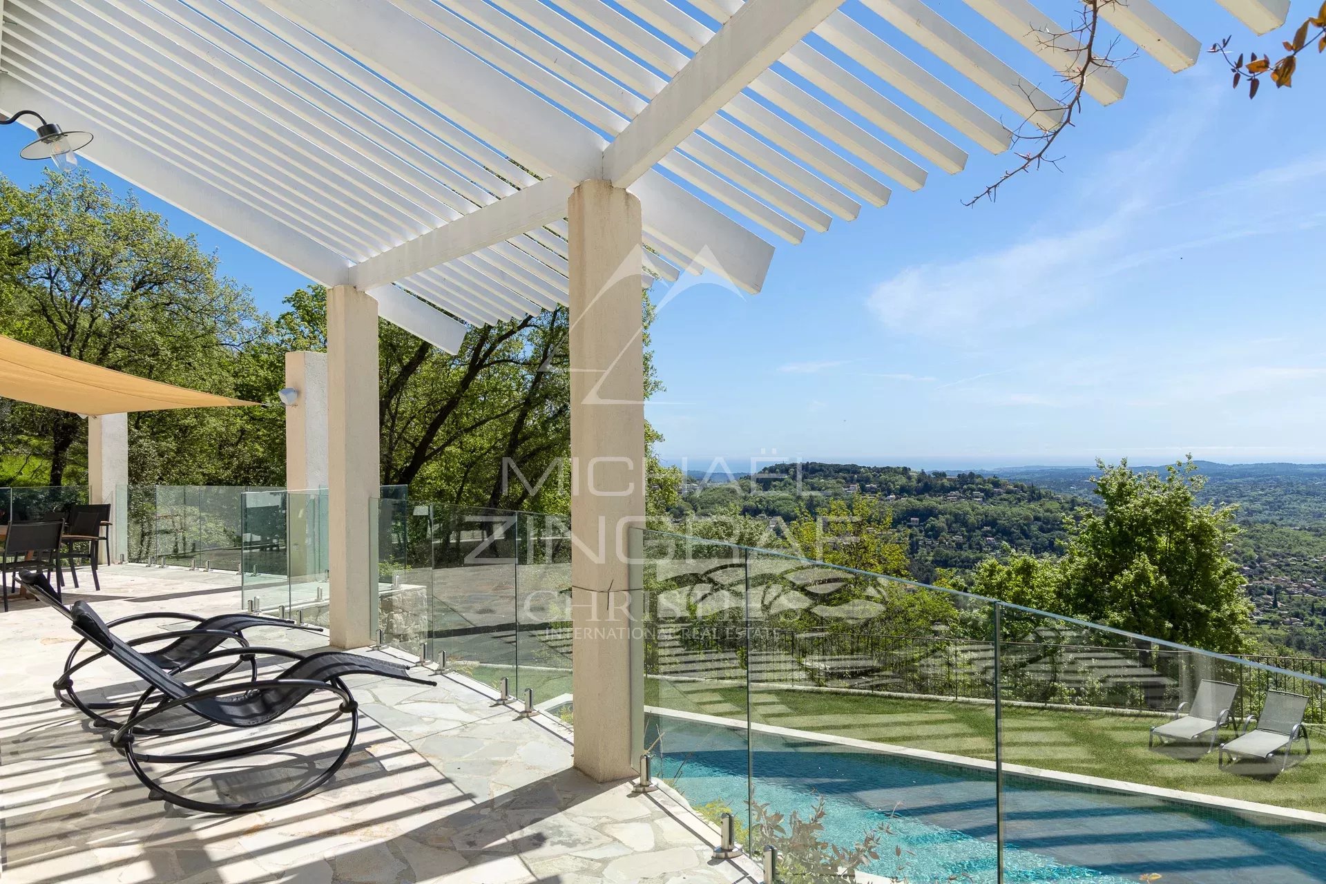 EXCLUSIVITY — Step into a world of contemporary elegance with this bold, architecturally striking villa, designed to capture breathtaking panoramic views through expansive floor-to-ceiling windows.