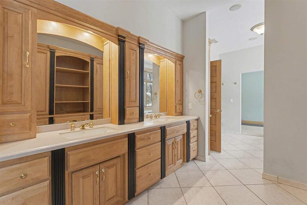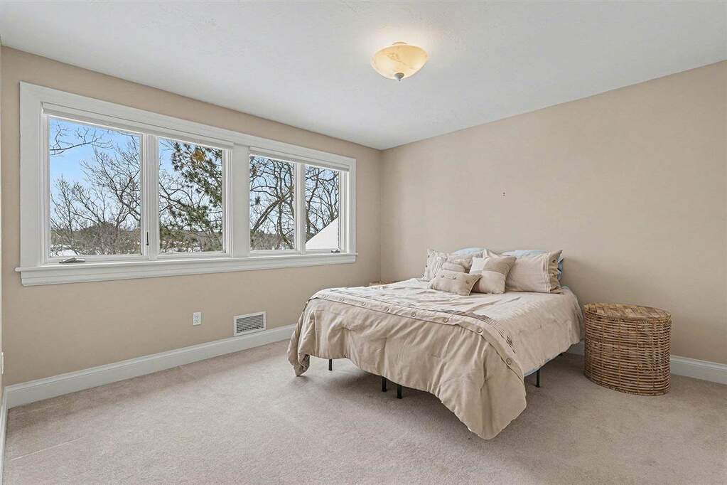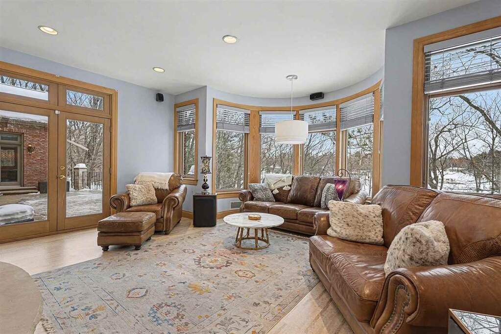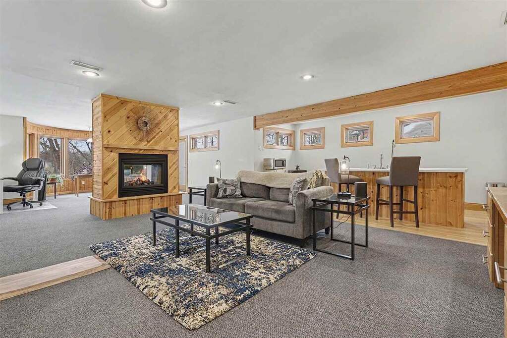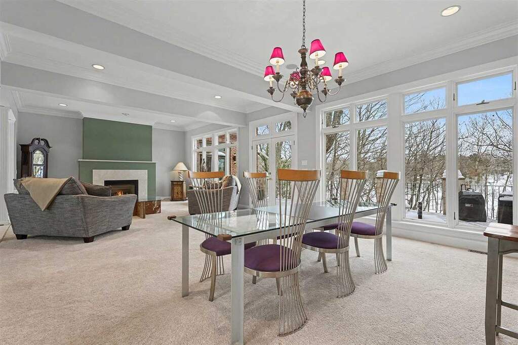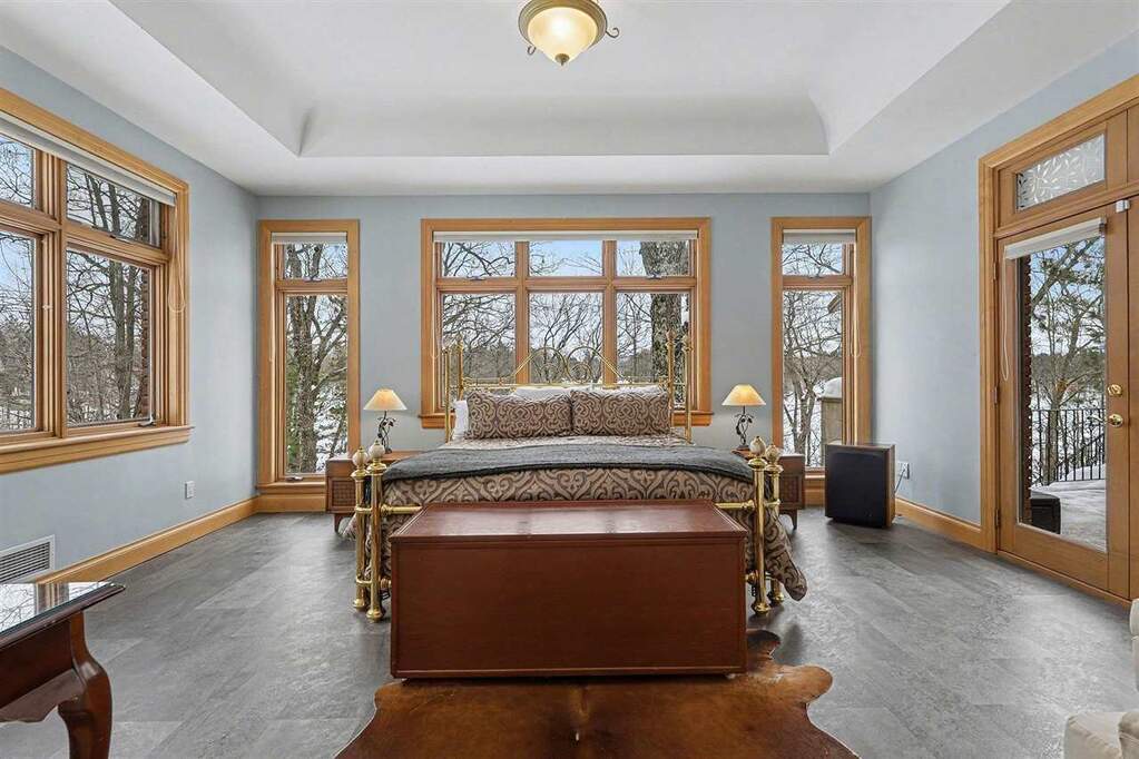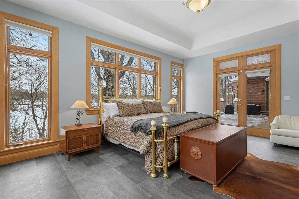 There are places deeply valued by those who know them, yet rarely introduced to the broader luxury market. Michigan's Upper Peninsula is one of them. At 3870 Grand Oak, architectural detail, craftsmanship, and scale converge to create one of Iron Mountain's most distinguished private waterfront homes, nearly adjacent to Pine Mountain Ski & Golf Resort. Set on 1.21 acres with 145 feet of sandy frontage on a private all-sports lake, the property pairs refined living with an immersive four-season lifestyle. Professionally landscaped grounds include a newly constructed stairway and boardwalk leading to a circular lakeside fire pit and an impressive 40-foot dock with approximately 300 square feet of "dock porch" space designed for gathering at the water's edge. The home also adjoins 12 acres of uninhabited state land, providing a natural buffer and added privacy. Inside, 3,960 square feet above grade and 996 finished square feet in the walkout lower level total 4,956 square feet of finished living space, with 6,824 square feet overall including unfinished areas. Italian marble, extensive custom maple cabinetry and millwork, and floor-to-ceiling transomed windows define the interiors. Three fireplaces, one wood burning and two gas, anchor the main living areas. The chef's kitchen features a Miele induction cooktop, Wolf built-in oven and microwave, custom cabinetry, and a breakfast nook with distant views of the Pine Mountain ski jump. The private primary suite occupies its own wing with veranda access, dual walk-in closets, spa bath, and dedicated workout room. The lower level offers guest flexibility, entertaining space, workshop potential, and substantial storage. Swim, boat, fish, snowmobile, ski, golf, and explore directly from your neighborhood. This is Upper Peninsula living at a scale rarely offered.