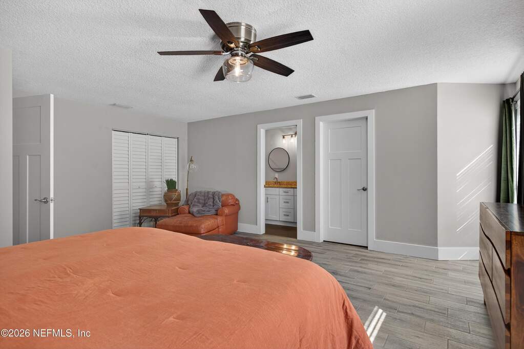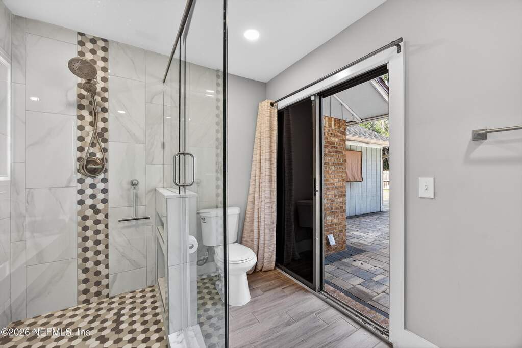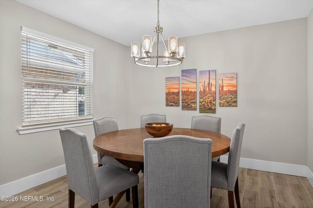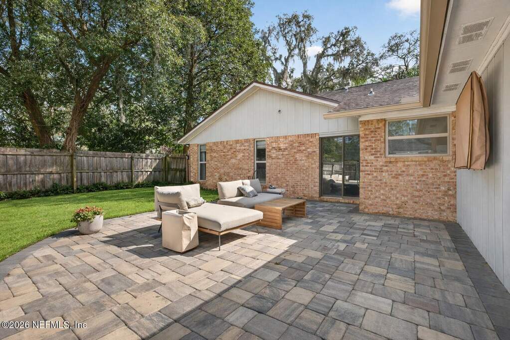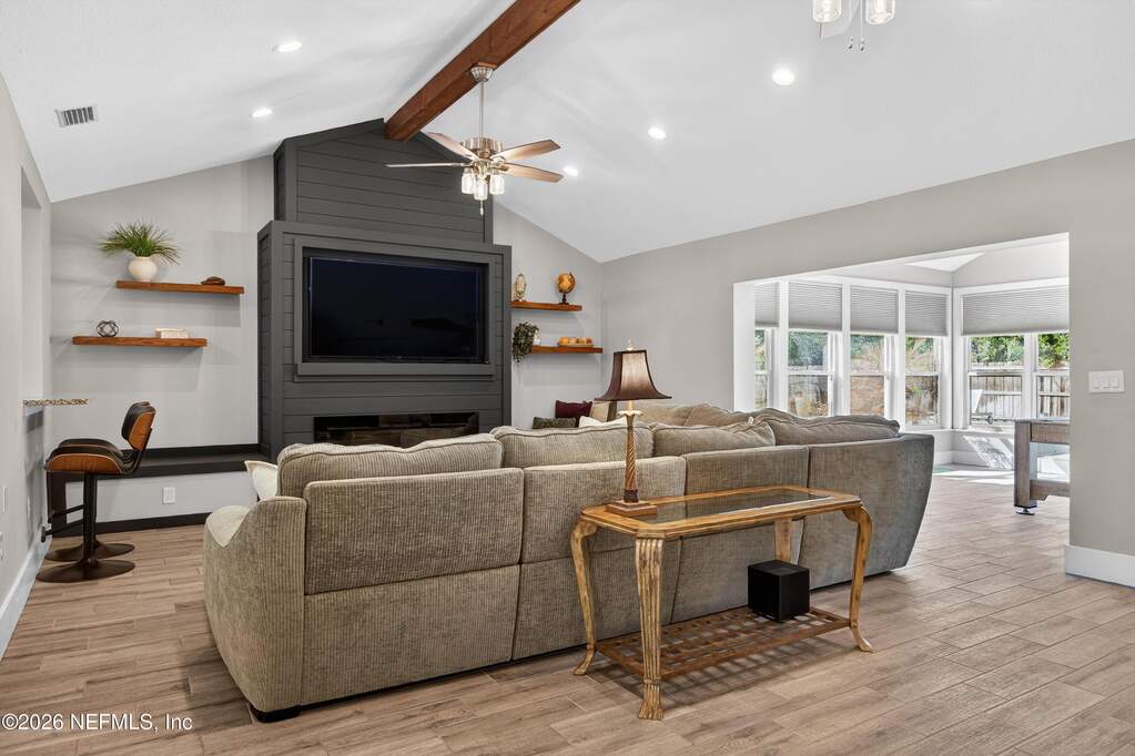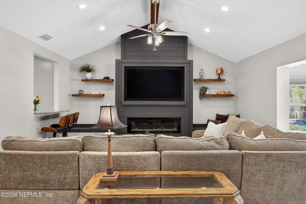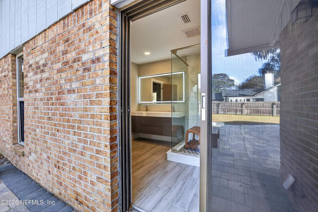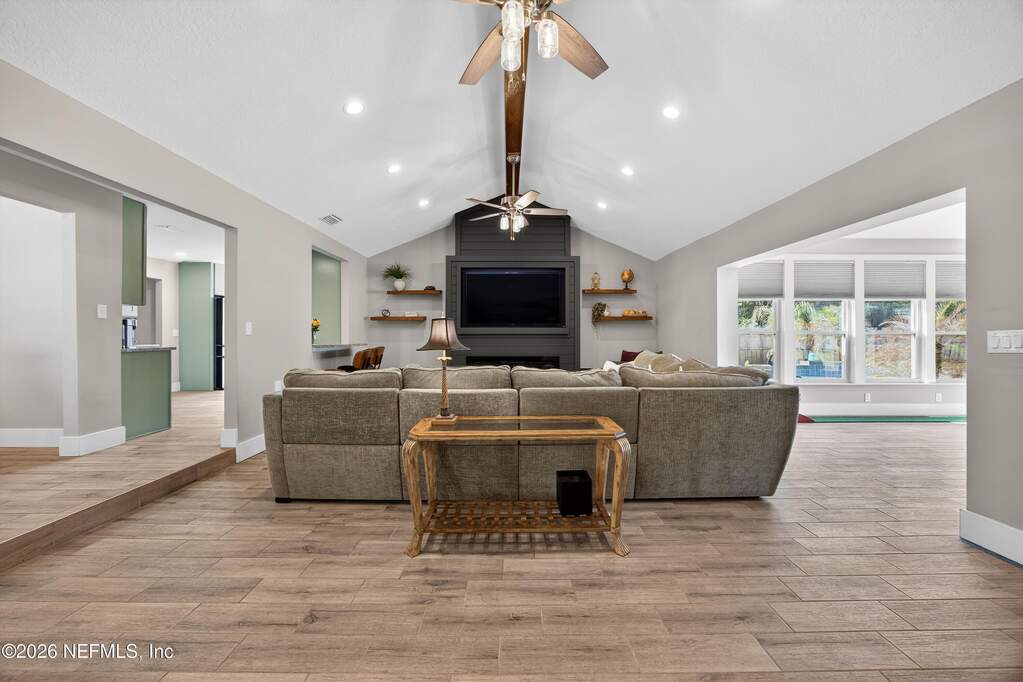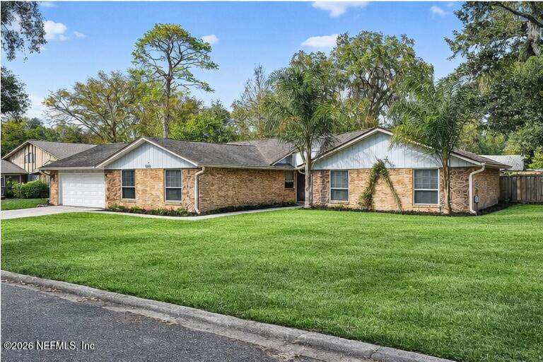 INCREDIBLE. ONE-OF-A-KIND. This fully renovated 4-bedroom, 3-bath brick pool home is located in the highly desirable Julington Landing with NO HOA and NO CDD. The open-concept layout features vaulted ceilings, a family room with an electric fireplace, formal living and dining rooms, a dedicated office, and two primary suites ideal for multigenerational living. The custom eat-in kitchen showcases shaker cabinetry with soft-close doors, granite countertops, glass tile backsplash, and stainless steel appliances. Major upgrades include HVAC (2022), roof (2017), hot water heater (2023), newer windows and sliding glass doors, tile plank flooring throughout, fully renovated bathrooms, updated electrical and plumbing fixtures, new gutters, irrigation and landscaping (2023), new septic pump (2023), new pool pump (12/2023), and saltwater pool conversion (12/2023). Enjoy outdoor living with a sparkling pool, new pavers in the poolside living area, and an expanded backyard patio. Additional storage is available in the attic above the garage. A rare, turnkey Mandarin home offering exceptional updates, flexibility, and outstanding outdoor enjoyment.