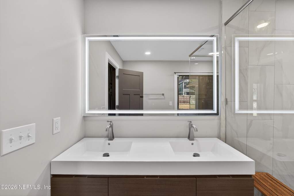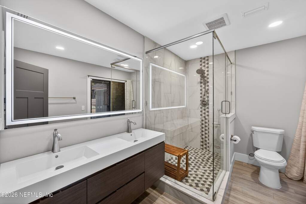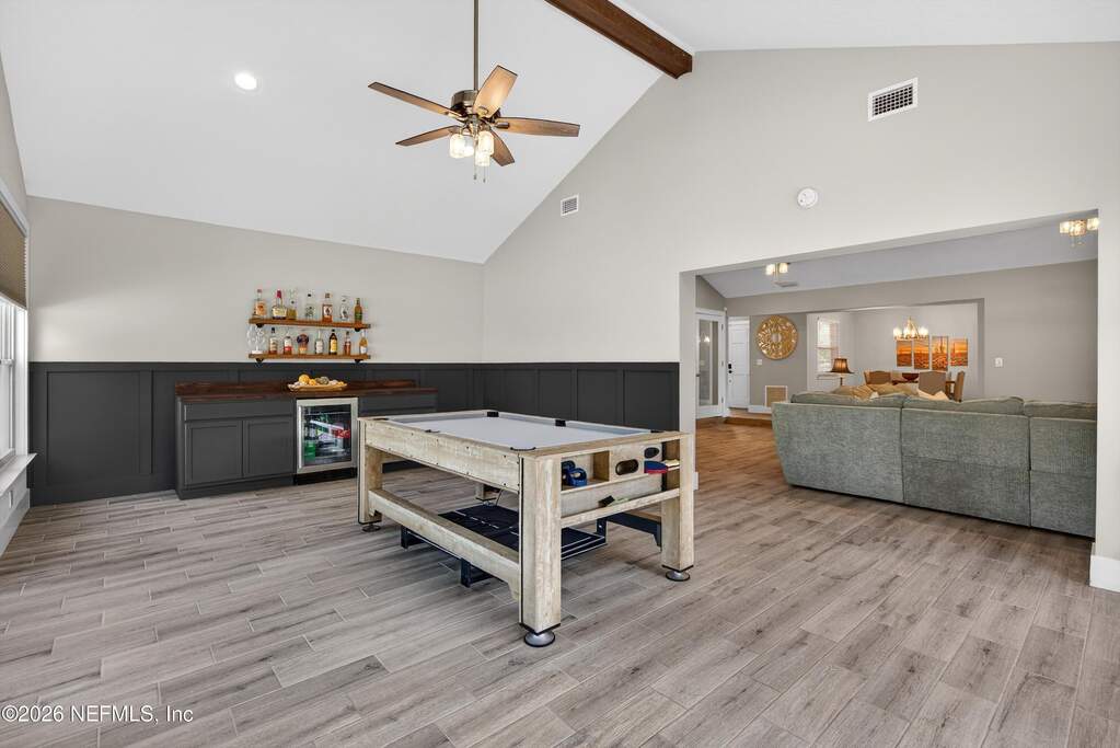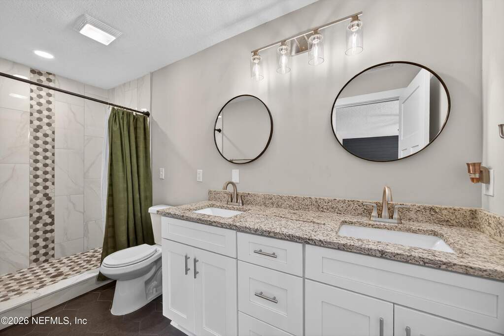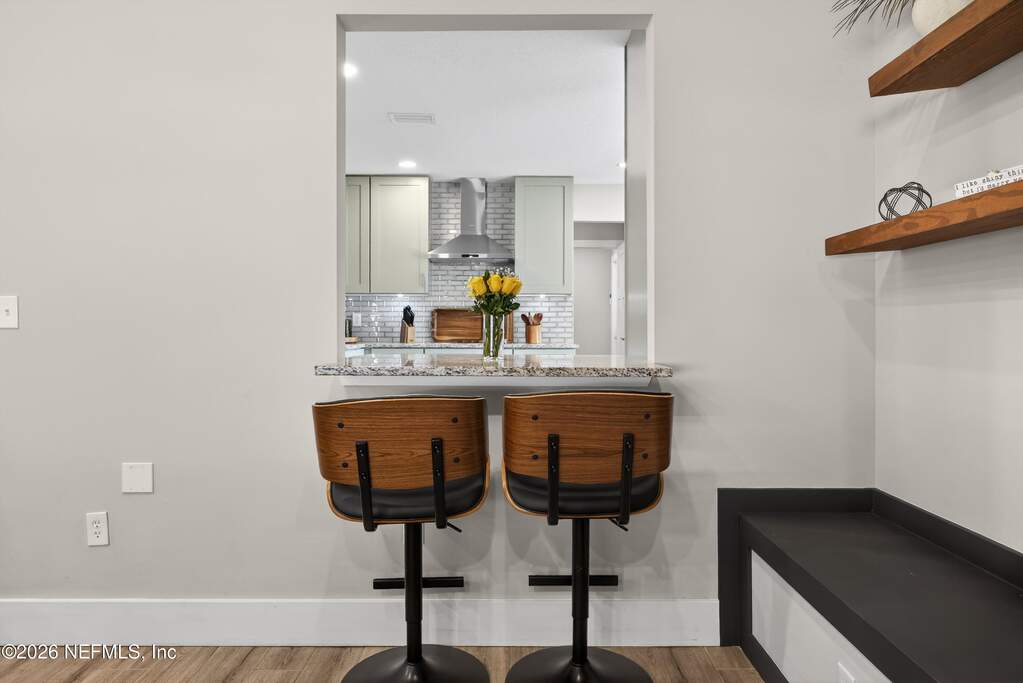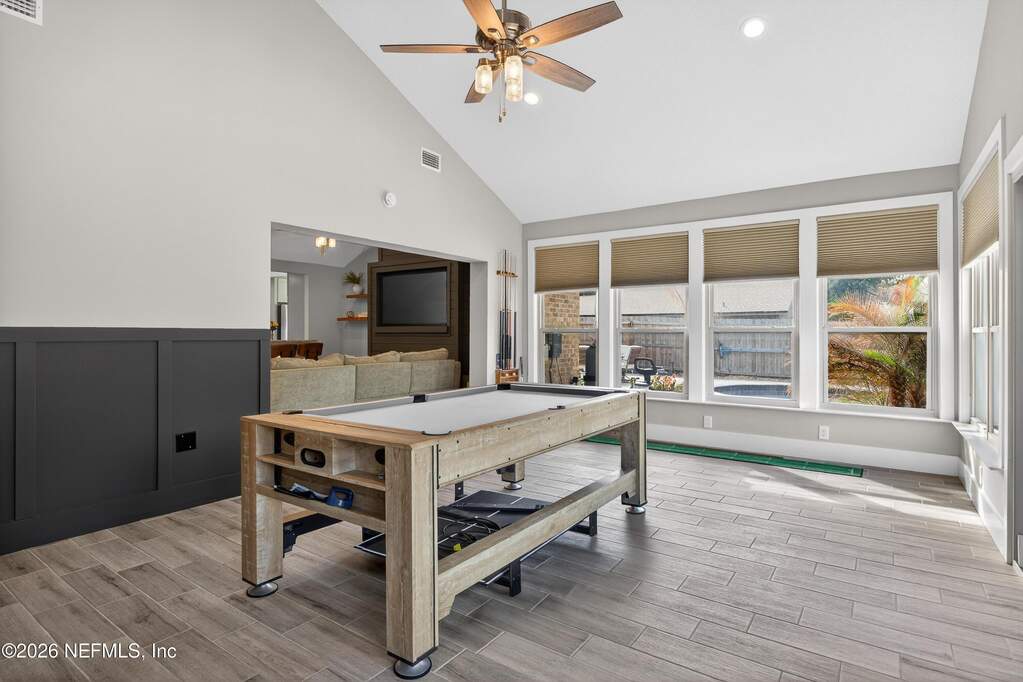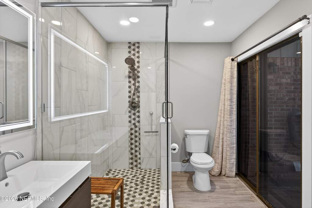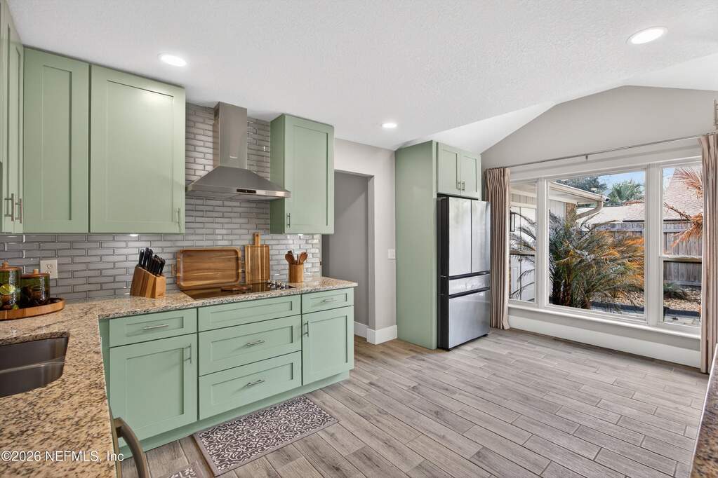 INCREDIBLE. ONE-OF-A-KIND. This fully renovated 4-bedroom, 3-bath brick pool home is located in the highly desirable Julington Landing with NO HOA and NO CDD. The open-concept layout features vaulted ceilings, a family room with an electric fireplace, formal living and dining rooms, a dedicated office, and two primary suites ideal for multigenerational living. The custom eat-in kitchen showcases shaker cabinetry with soft-close doors, granite countertops, glass tile backsplash, and stainless steel appliances. Major upgrades include HVAC (2022), roof (2017), hot water heater (2023), newer windows and sliding glass doors, tile plank flooring throughout, fully renovated bathrooms, updated electrical and plumbing fixtures, new gutters, irrigation and landscaping (2023), new septic pump (2023), new pool pump (12/2023), and saltwater pool conversion (12/2023). Enjoy outdoor living with a sparkling pool, new pavers in the poolside living area, and an expanded backyard patio. Additional storage is available in the attic above the garage. A rare, turnkey Mandarin home offering exceptional updates, flexibility, and outstanding outdoor enjoyment.