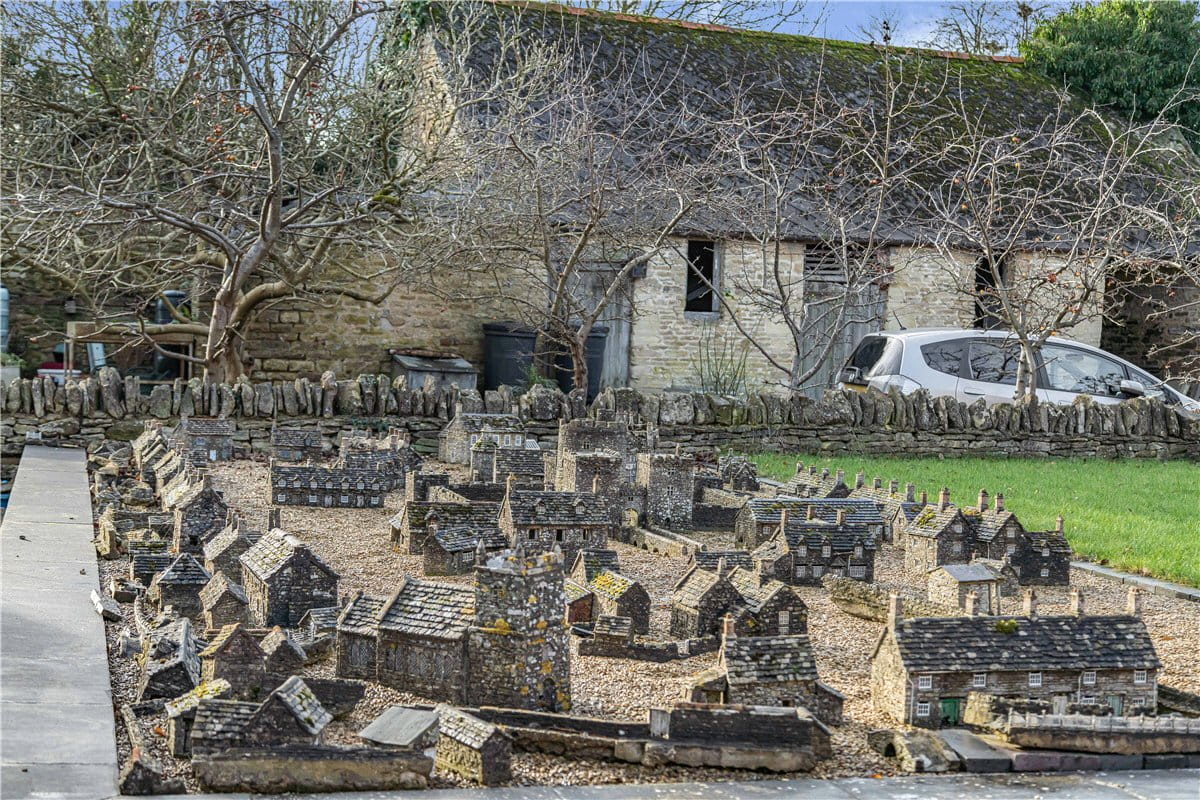 The property is set back from the road with an extensive block paved driveway with stone retaining walls and areas of lawn. The front garden is walled and also houses an extraordinary model village built in stone with accurate models of cottages, churches, gardens and a pond. The rear garden is partly enclosed with stone walling and is mainly laid to lawn with a garden store. It extends to approximately 100 feet.
