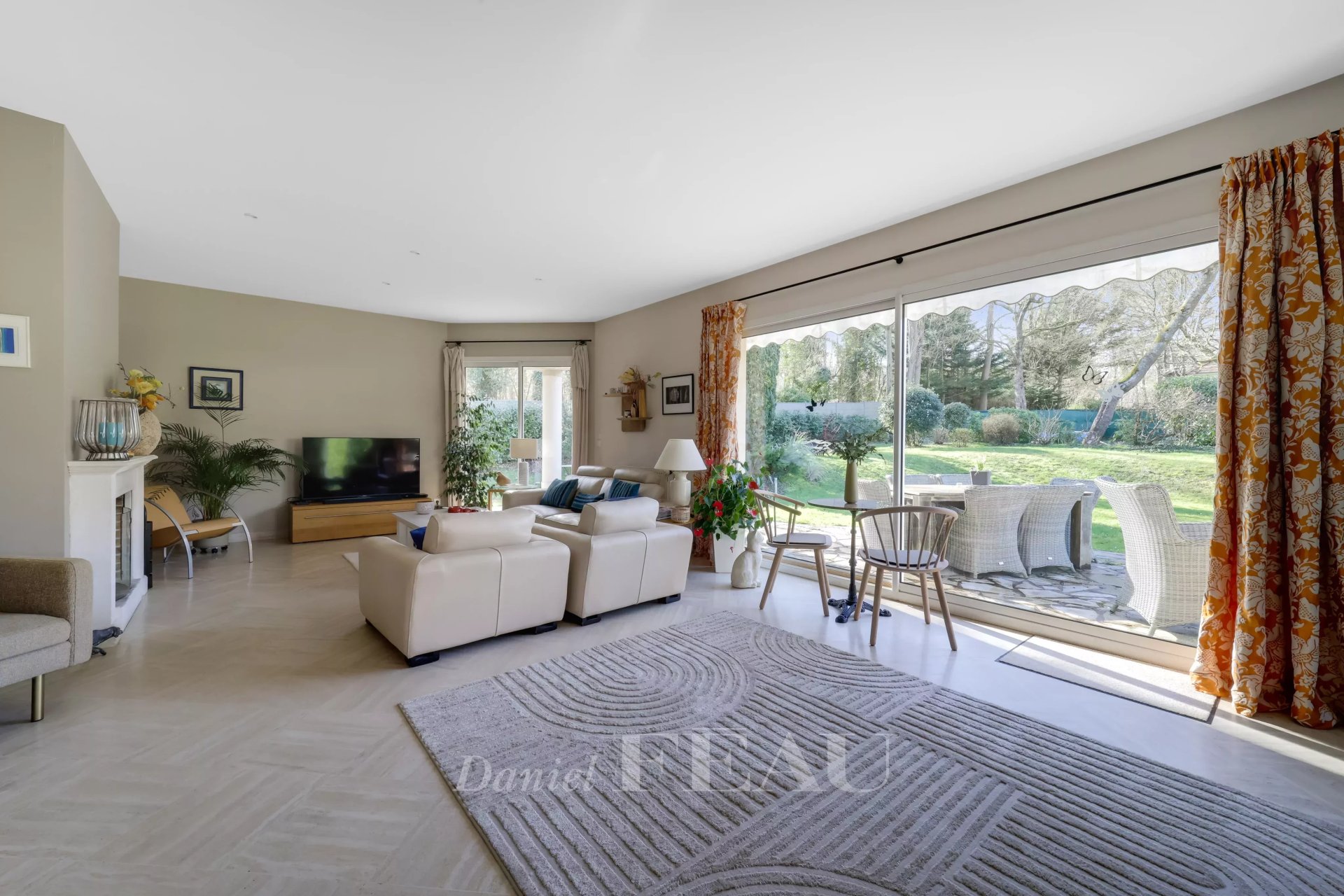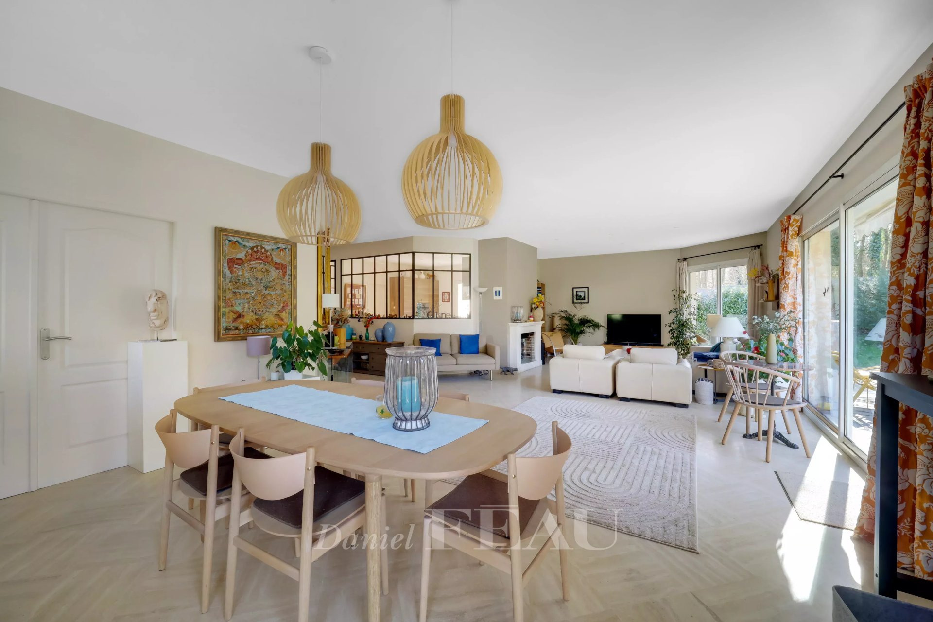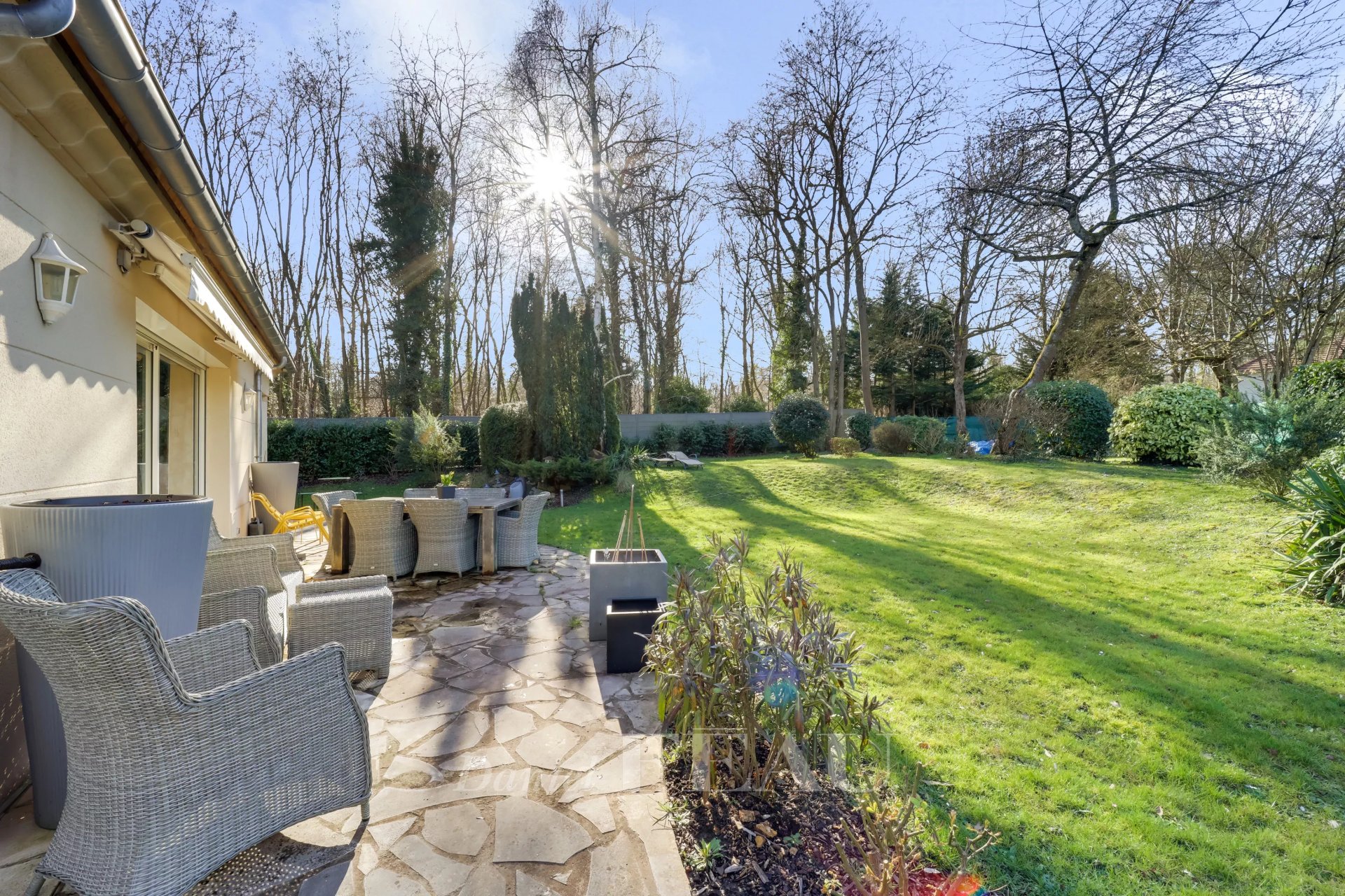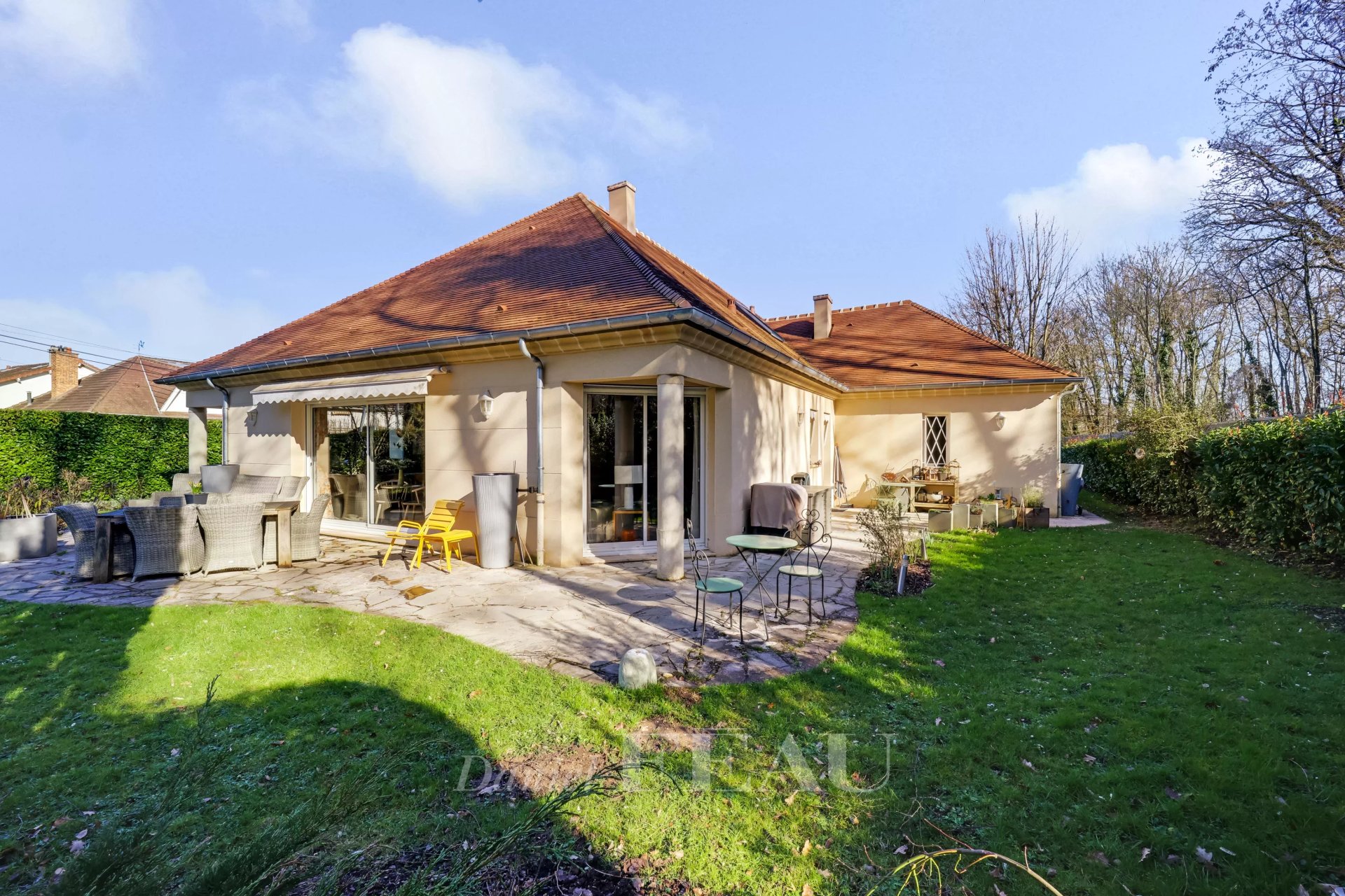 Sole Agent. This elegant mainly single storey family home set in 1494 sqm of leafy grounds is in a sought-after residential neighbourhood near Saint-Nom-la-Bretèche station.