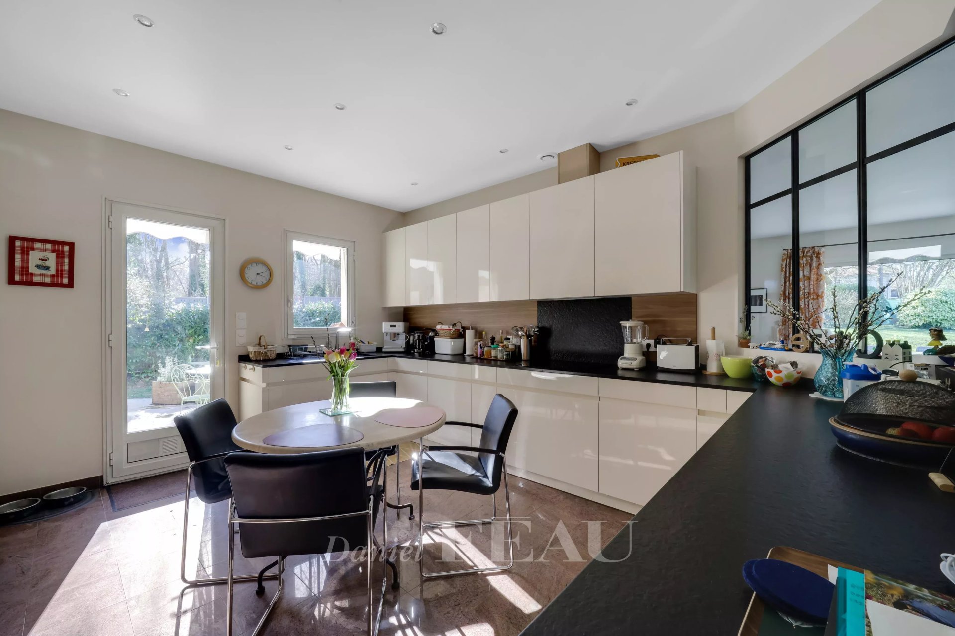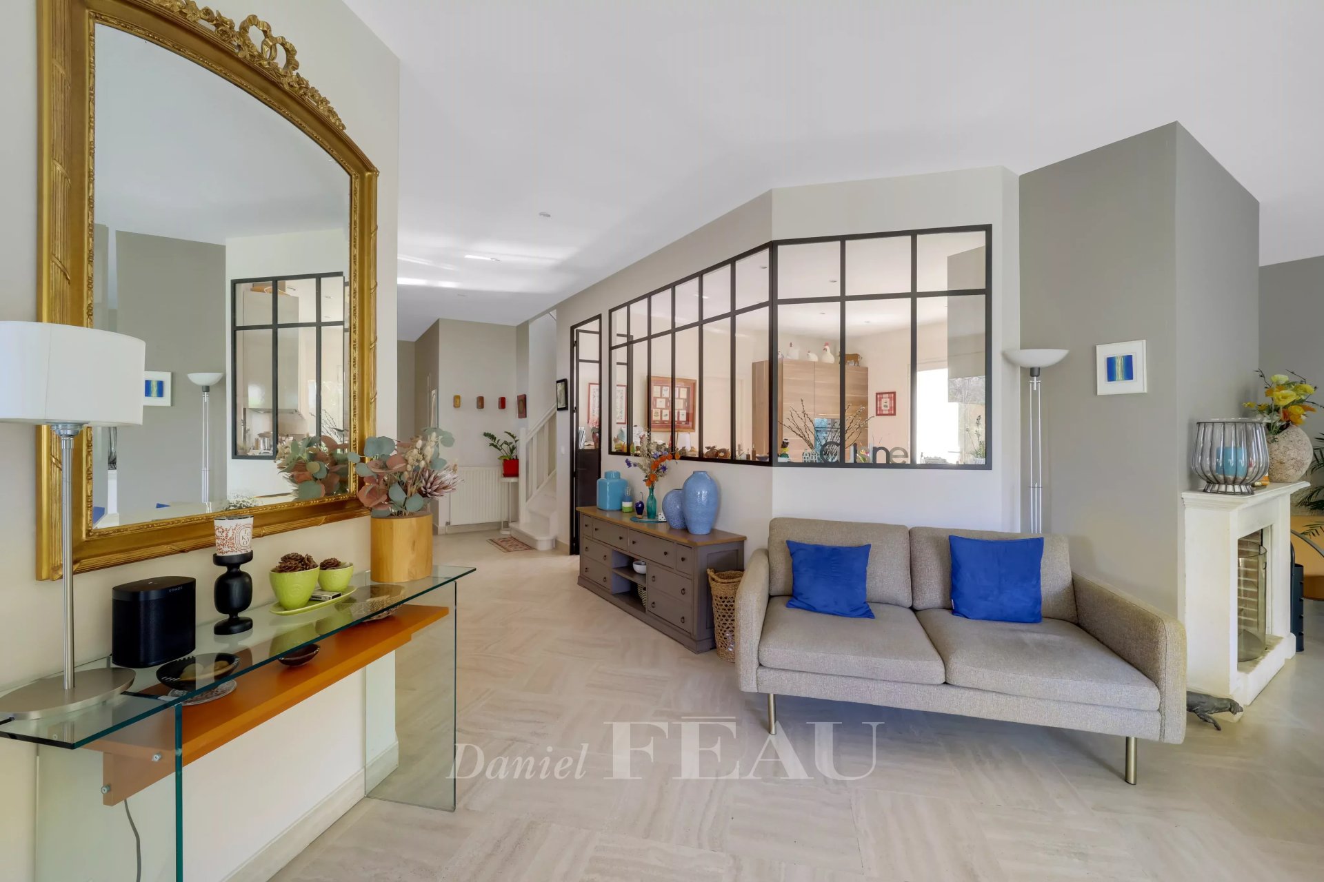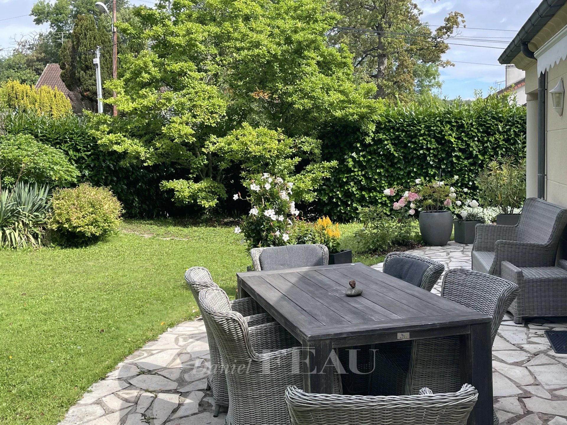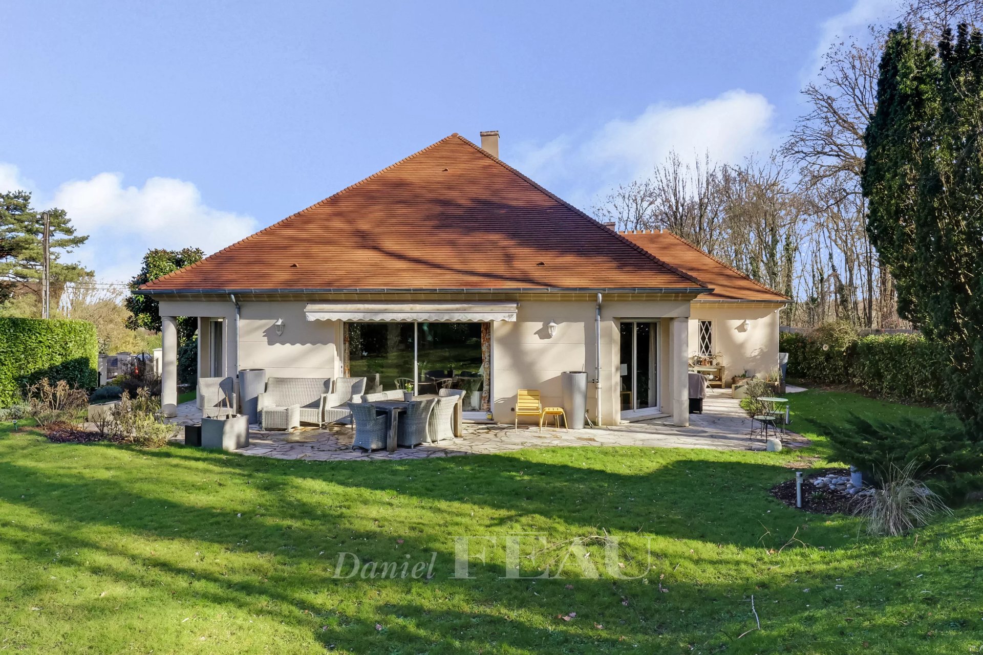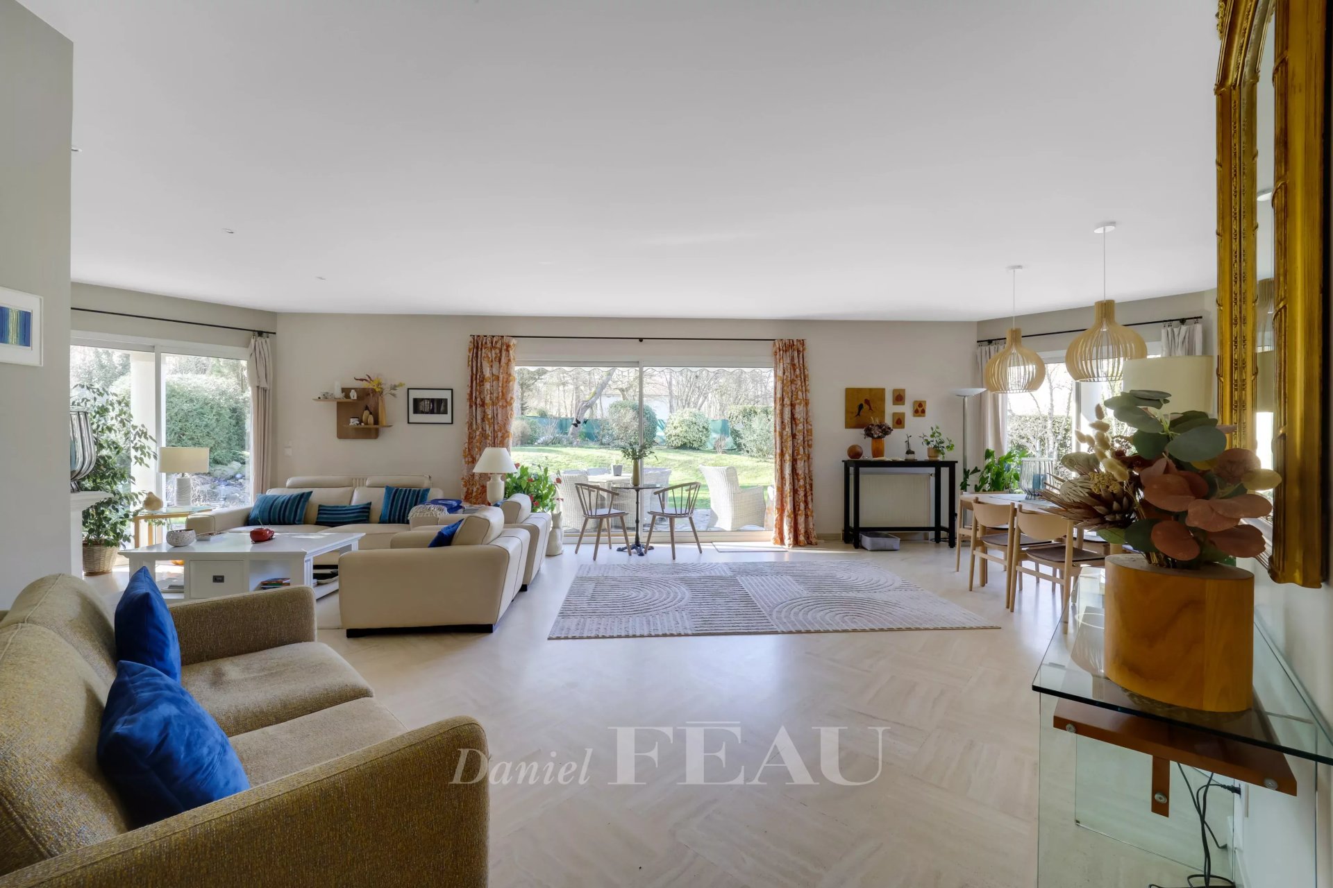 Sole Agent. This elegant mainly single storey family home set in 1494 sqm of leafy grounds is in a sought-after residential neighbourhood near Saint-Nom-la-Bretèche station.