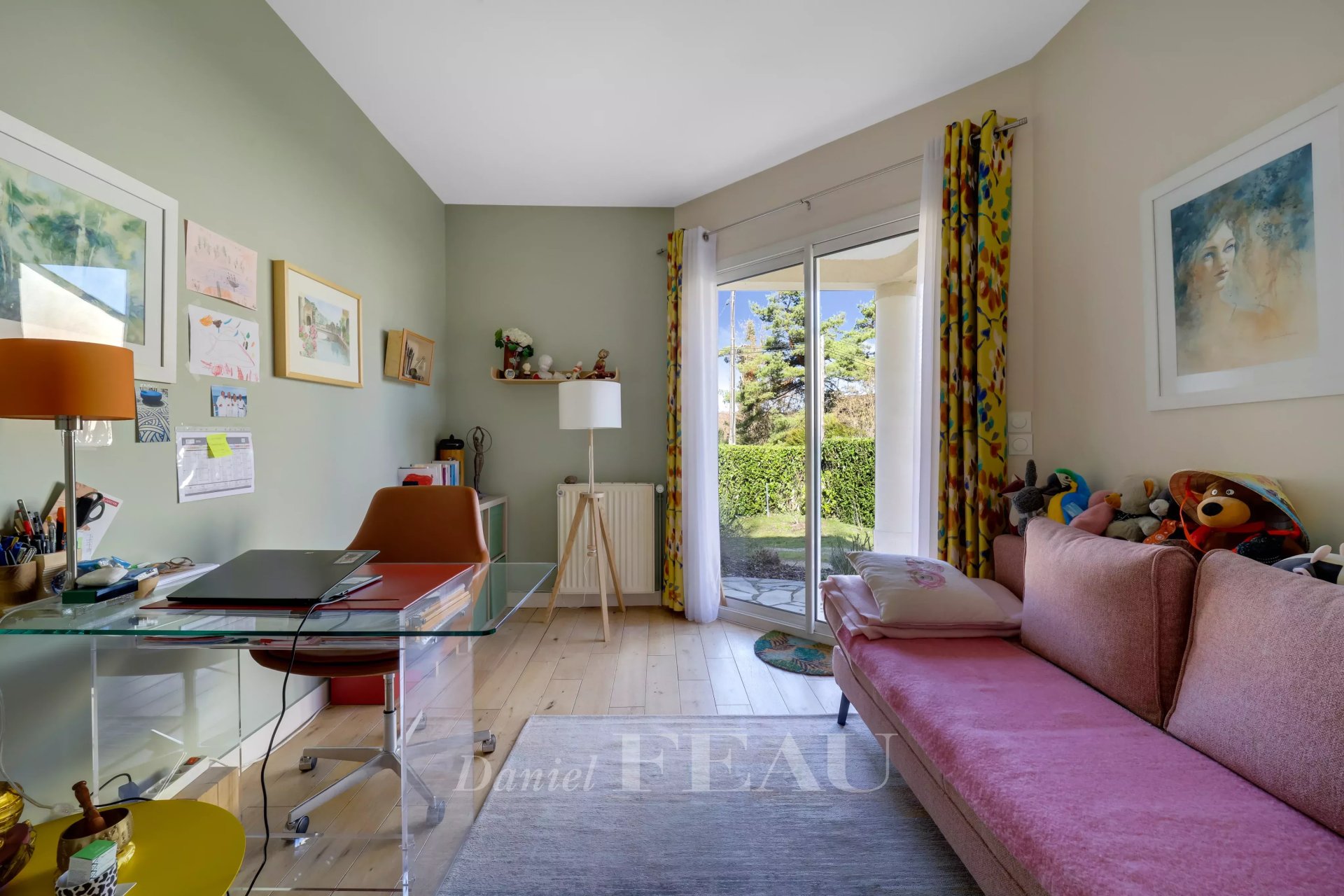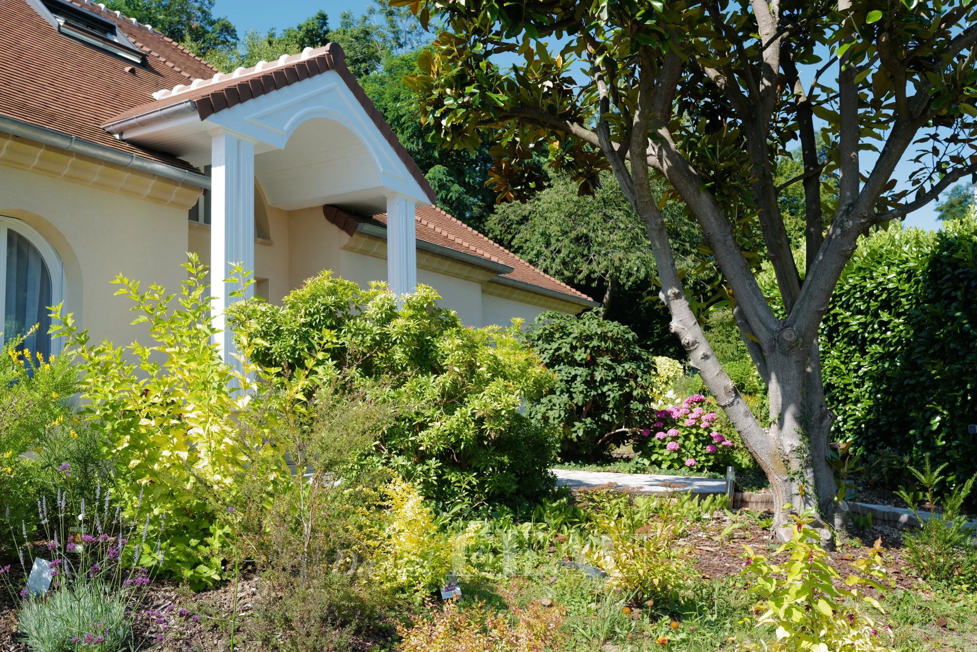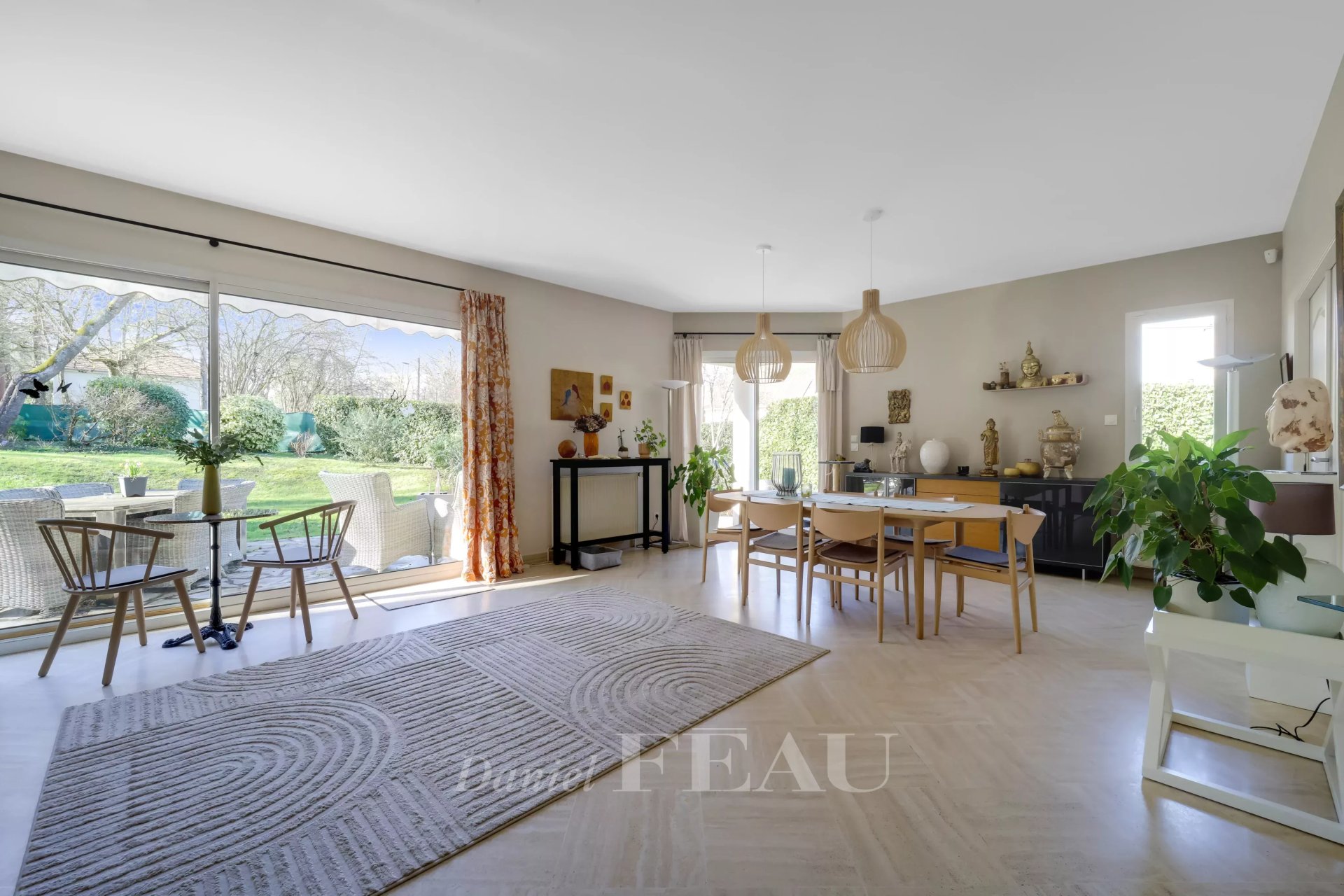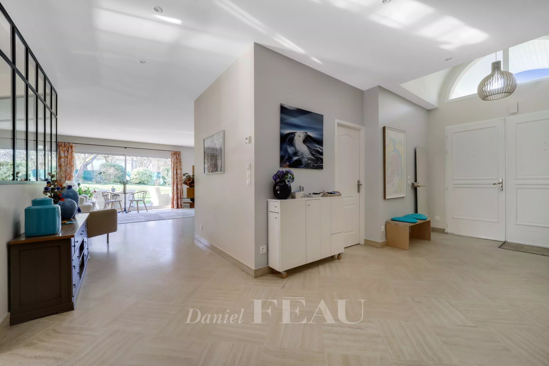 Sole Agent. This elegant mainly single storey family home set in 1494 sqm of leafy grounds is in a sought-after residential neighbourhood near Saint-Nom-la-Bretèche station.