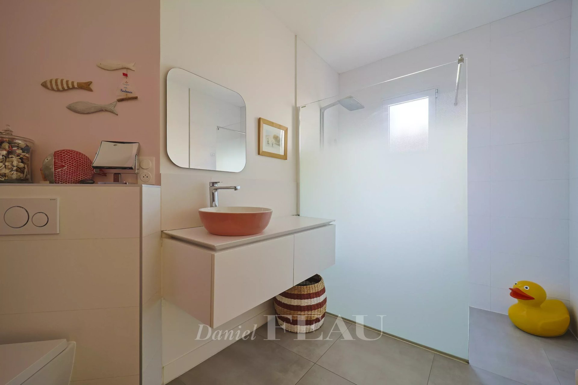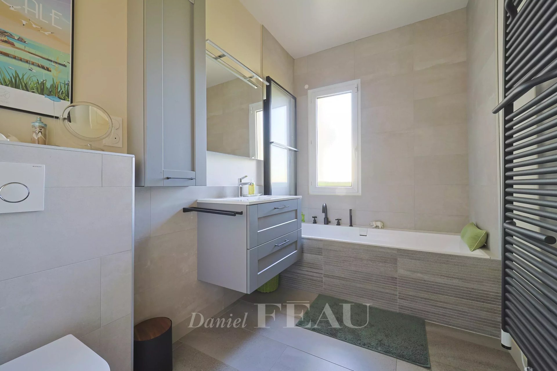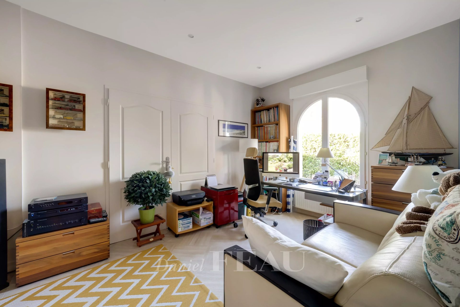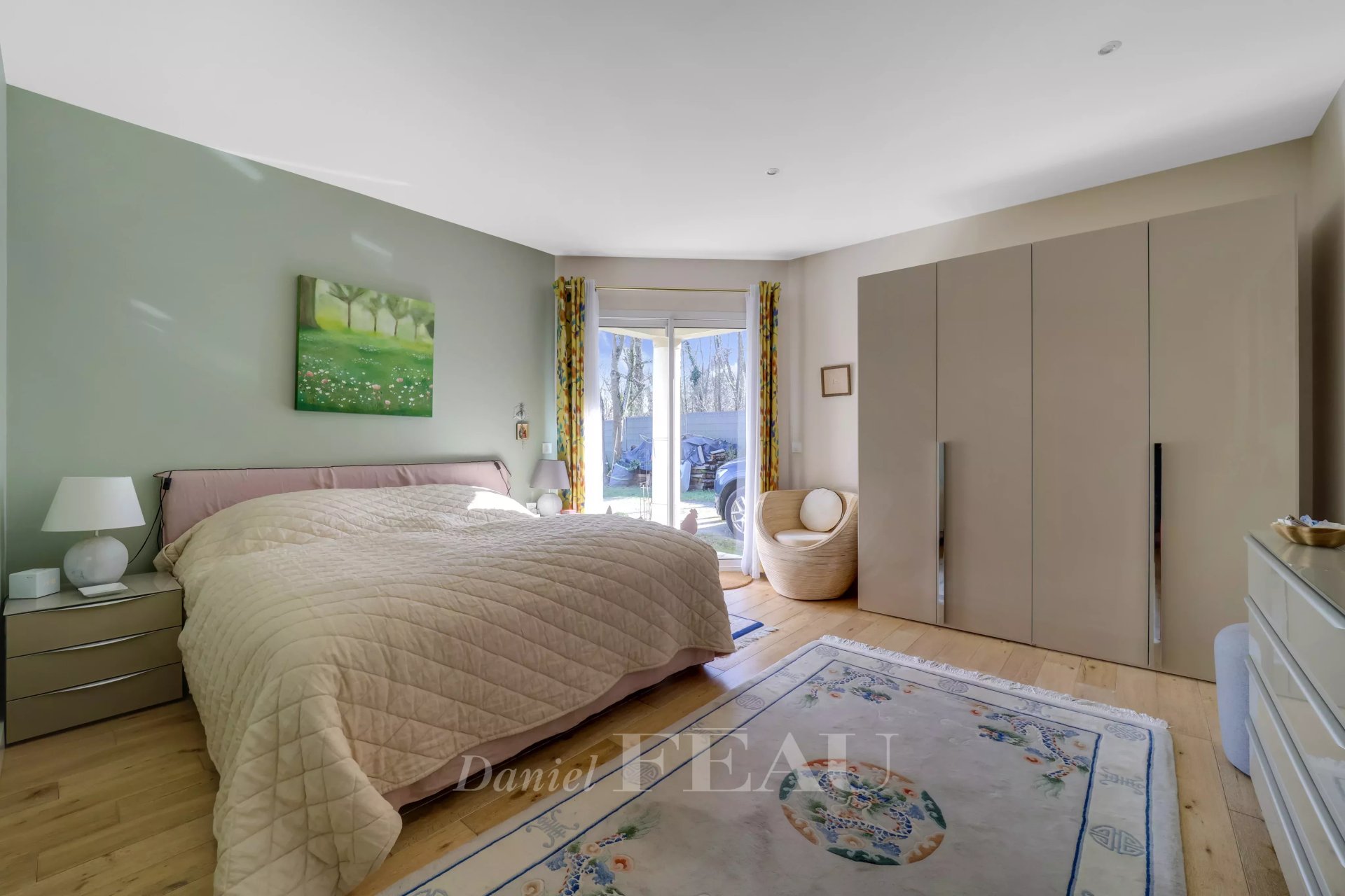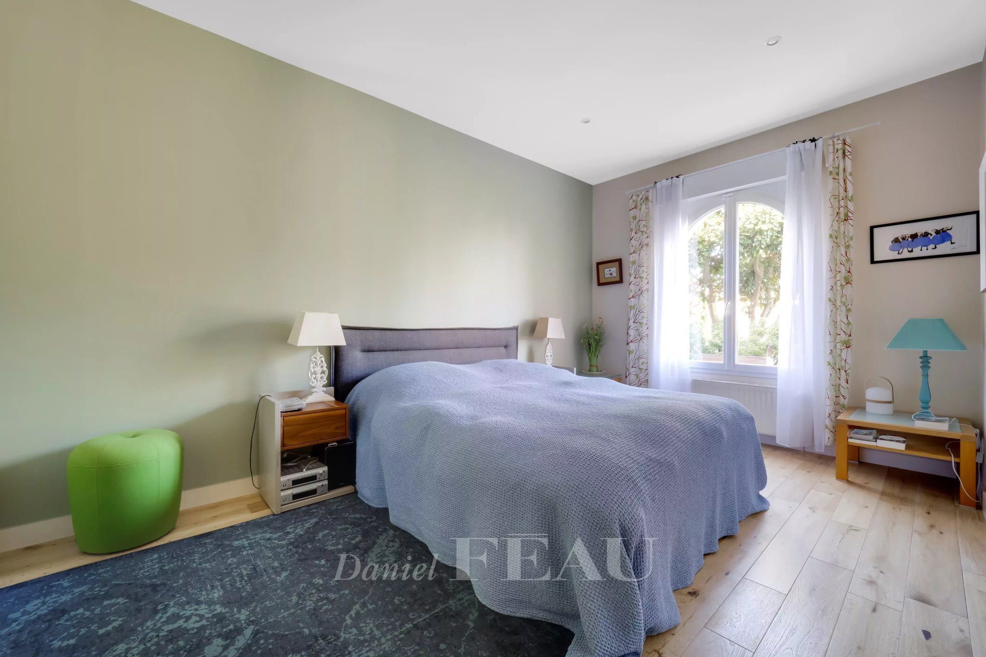 Sole Agent. This elegant mainly single storey family home set in 1494 sqm of leafy grounds is in a sought-after residential neighbourhood near Saint-Nom-la-Bretèche station.