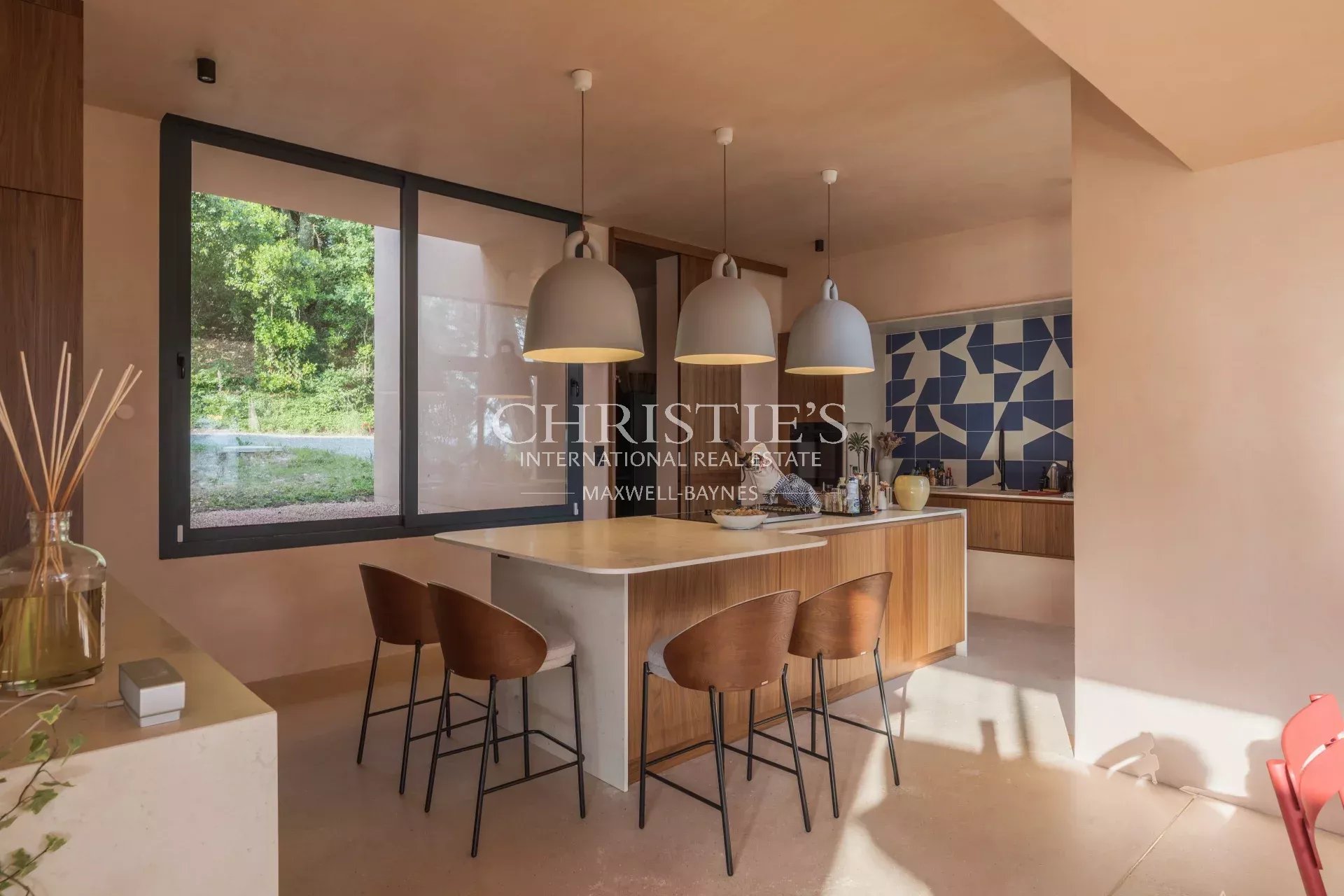 Completely redesigned in 2024 by the Vaissié Studio, "La Californie" (390 sqm) has undergone a full-scale renovation, combining polished concrete, limewash finishes, walnut wood, and natural stone. Every detail has been curated to create a space that feels both elegant and timeless, blending modern minimalism with refined comfort.