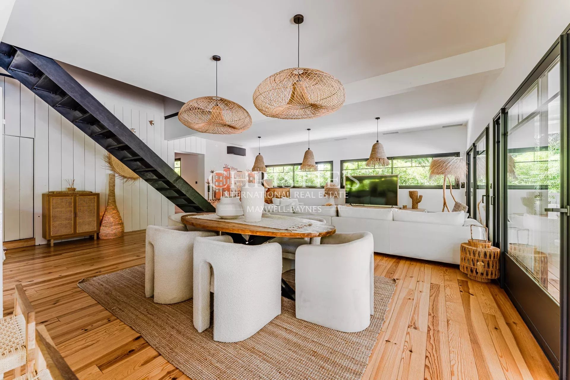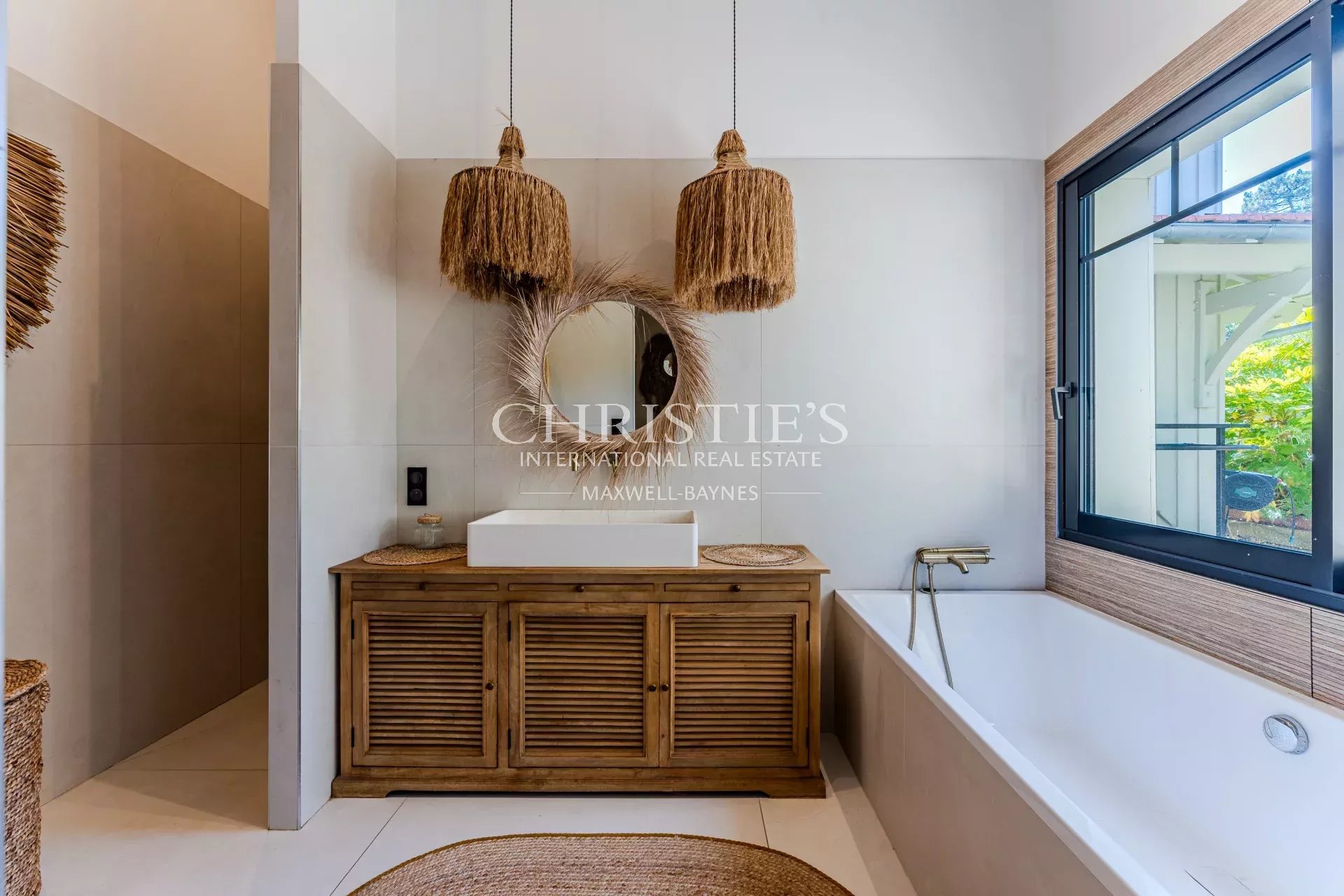 Located in Mios on the Bassin d'Arcachon, with Bordeaux less than an hour away and the airport 50 minutes away, this exceptional home built in 2022 looks like it came straight out of a decorating magazine.