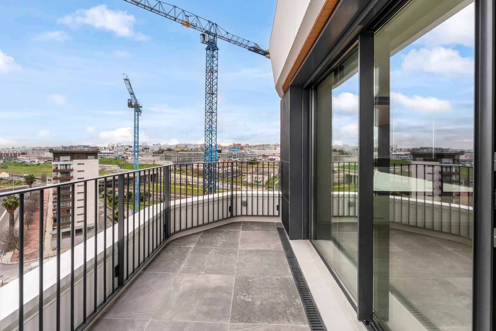 Appartement de 2 chambres avec deux balcons, débarras et parking dans la résidence sécurisée Distrikt, située dans le quartier Parque das Nações à Lisbonne.