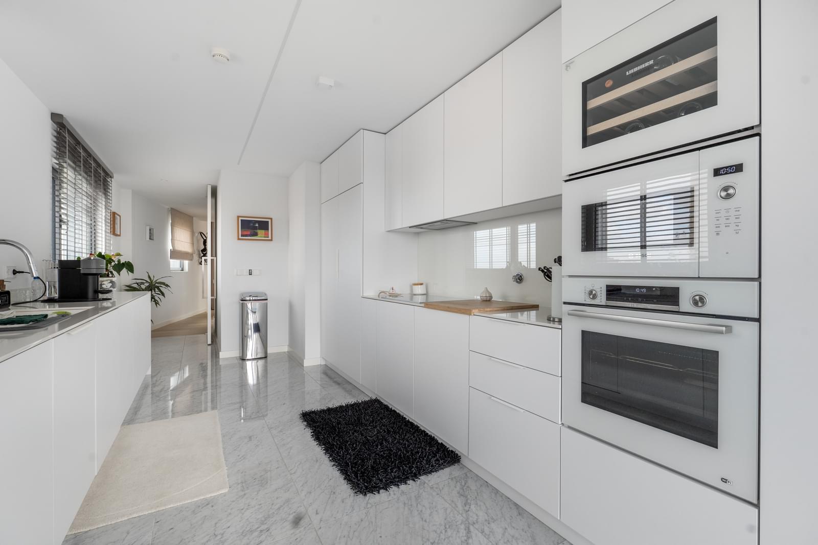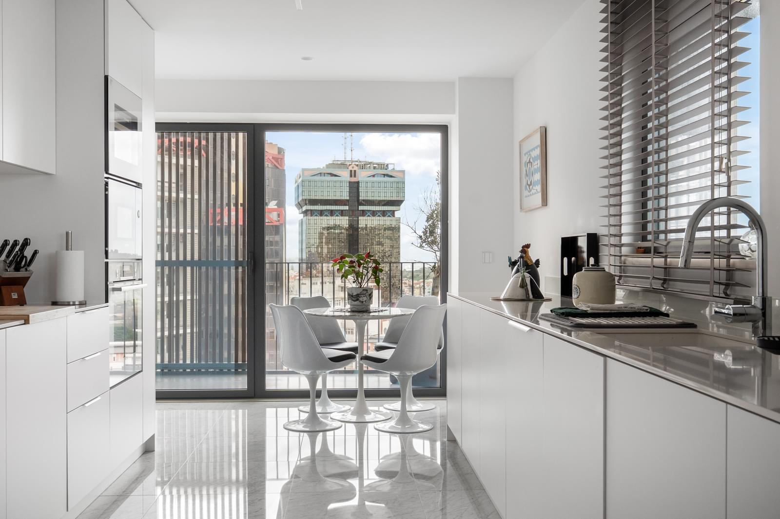 - Fully equipped kitchen (19.5 sqm) with Bosch appliances, dining area, and access to a balcony overlooking Monsanto (7.4 sqm);