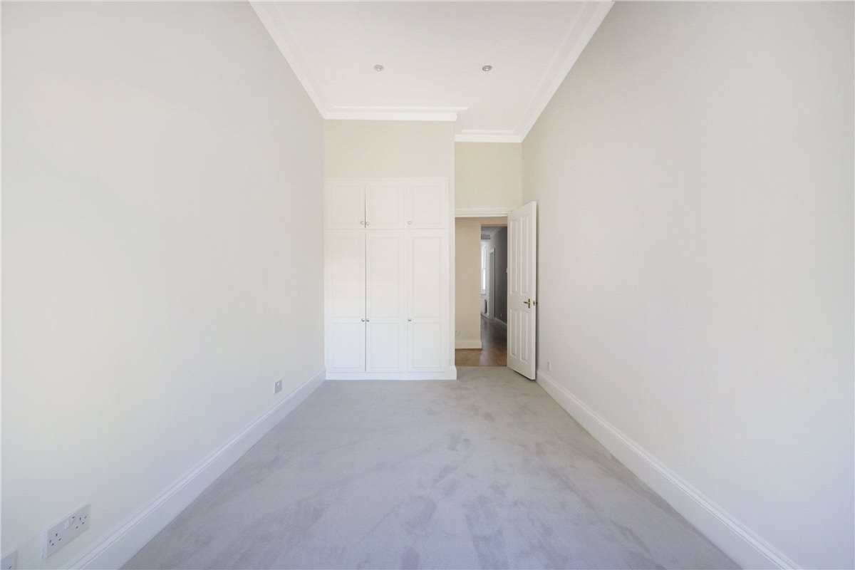 A spacious three bedroom, two bathroom lateral apartment on the third floor (with lift) of a South Kensington stucco-fronted period building. EPC rating C.