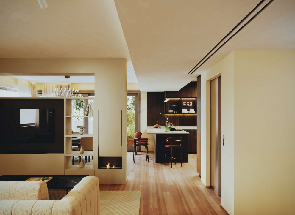 The villa is being offered highly finished, with a specification that reflects a thoughtful approach to long-term quality rather than short-lived trends. The kitchen is fully fitted and equipped with appliances, while bathrooms are completed to a contemporary standard. All internal and external doors are included, as are custom walk-in wardrobes throughout. Internal flooring is finished in parquet wood, adding warmth and continuity across the living and sleeping spaces. A gas fireplace is positioned within the kitchen and living area, providing both visual focus and practical comfort during cooler months.