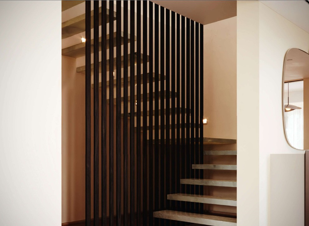 Upstairs, the sleeping quarters have been planned with privacy and comfort in mind. Three generously sized bedrooms occupy the upper level, each benefiting from its own en-suite bathroom and walk-in wardrobe. This arrangement ensures a high degree of independence for family members or guests while maintaining a consistent standard across all rooms. Natural light is prioritised throughout, with well-positioned openings enhancing both the bedrooms and circulation areas. A large laundry room is located at roof level, providing practical separation from the main living spaces and leading out onto an expansive roof terrace. This rooftop area offers additional outdoor space that can be adapted for lounging, entertaining, or quiet enjoyment, depending on lifestyle needs.
