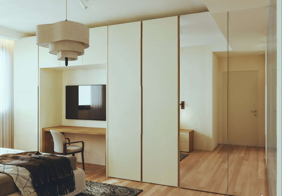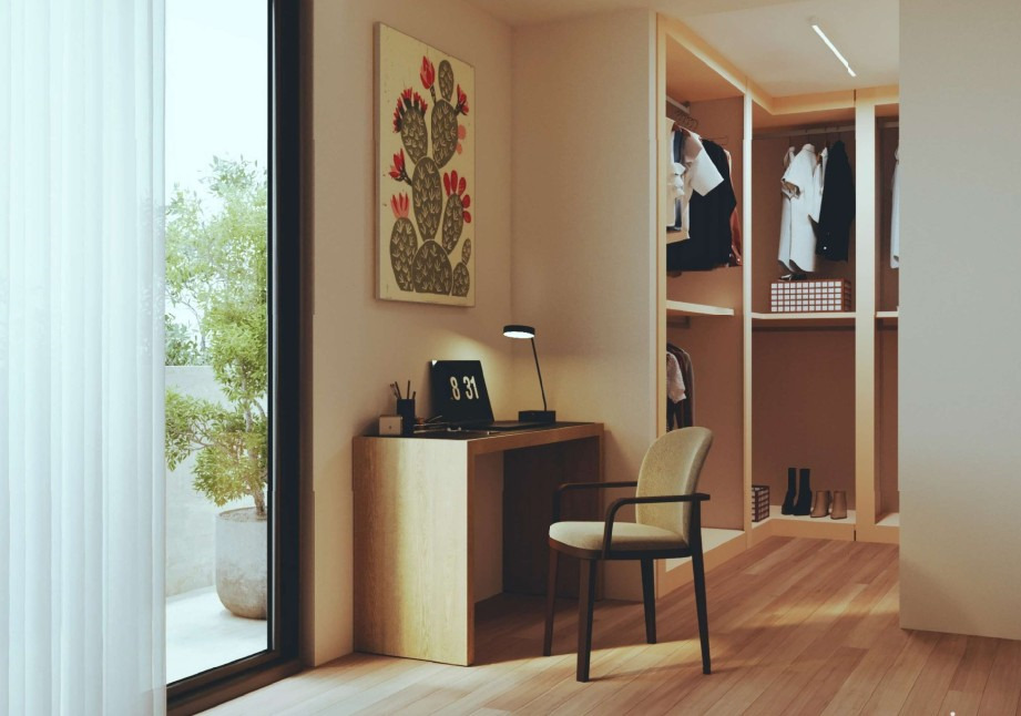 The villa is being offered highly finished, with a specification that reflects a thoughtful approach to long-term quality rather than short-lived trends. The kitchen is fully fitted and equipped with appliances, while bathrooms are completed to a contemporary standard. All internal and external doors are included, as are custom walk-in wardrobes throughout. Internal flooring is finished in parquet wood, adding warmth and continuity across the living and sleeping spaces. A gas fireplace is positioned within the kitchen and living area, providing both visual focus and practical comfort during cooler months.