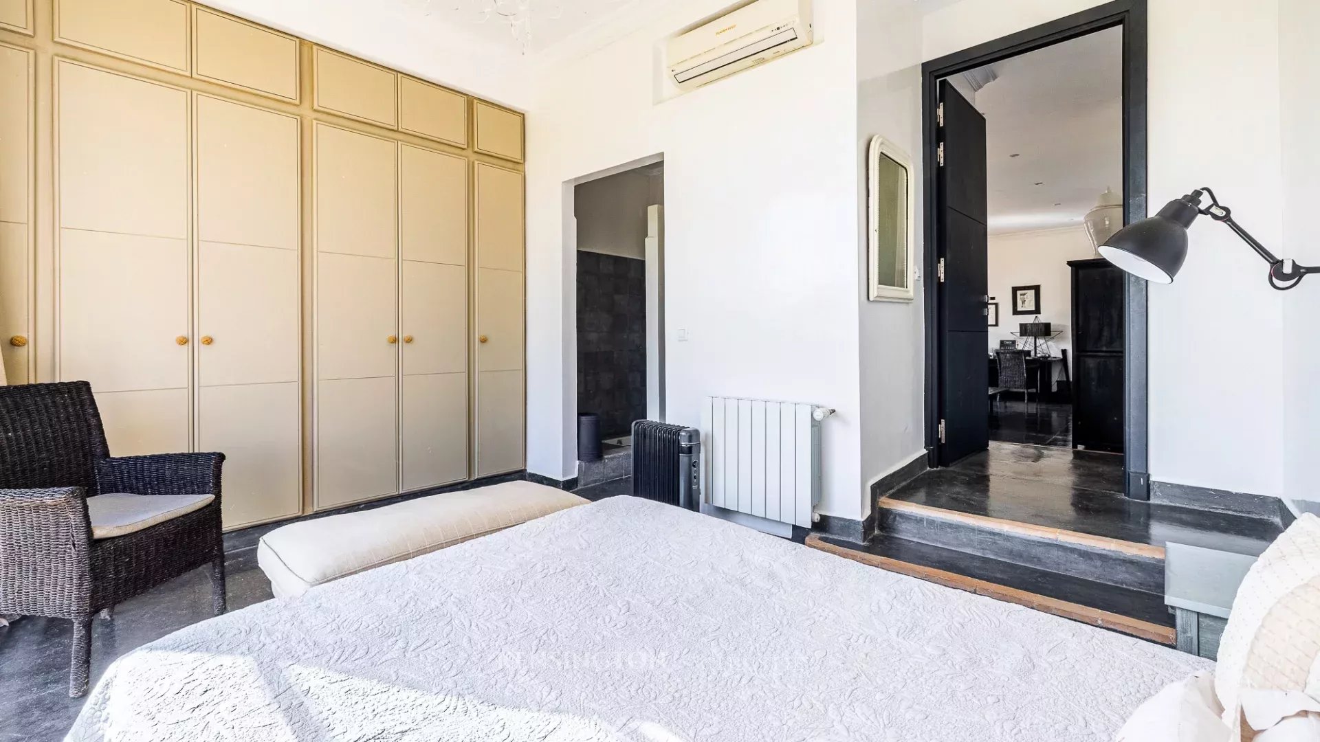 The property features 9 bedrooms, spacious and light-filled reception areas, a fully equipped modern kitchen, a gym, and a traditional hammam. Underfloor heating is installed throughout the villa, ensuring optimal comfort in every season. The architecture emphasizes well-balanced volumes and smooth circulation between the different living areas.
