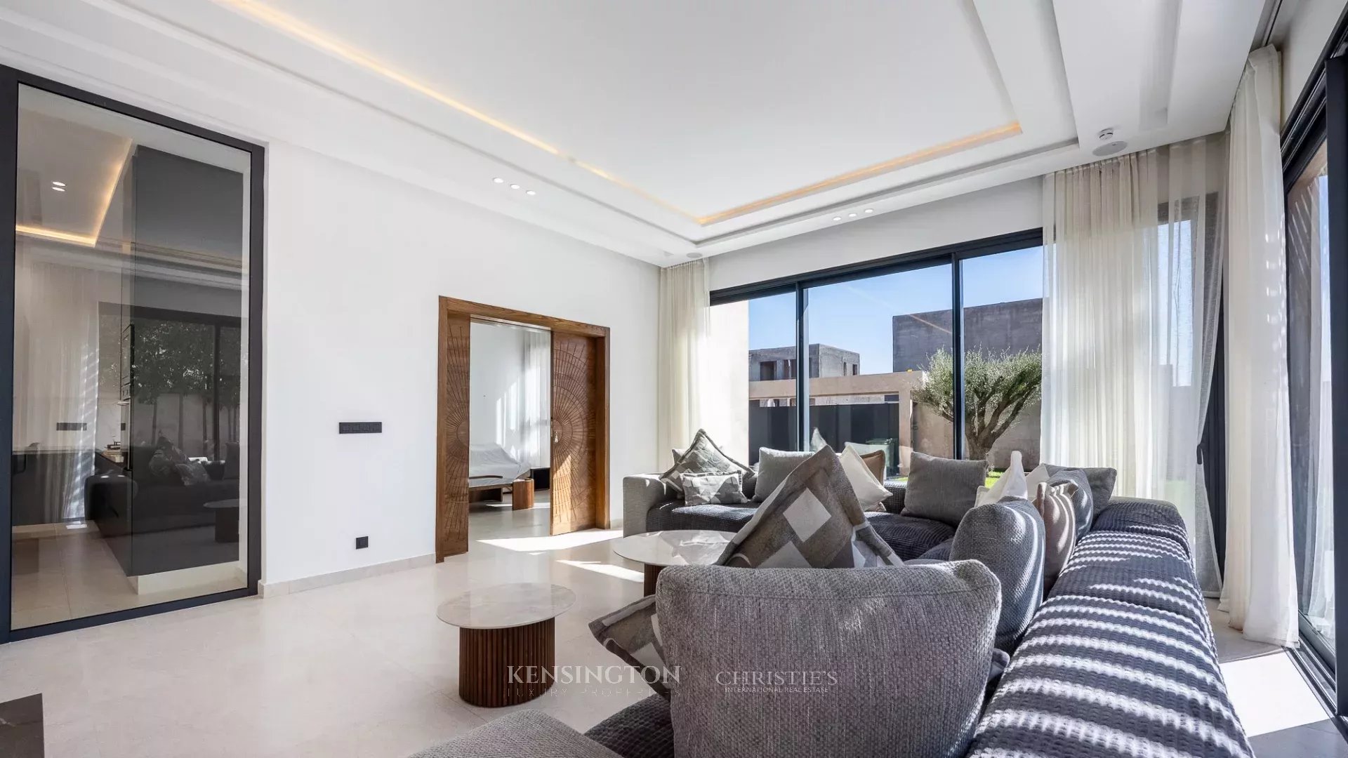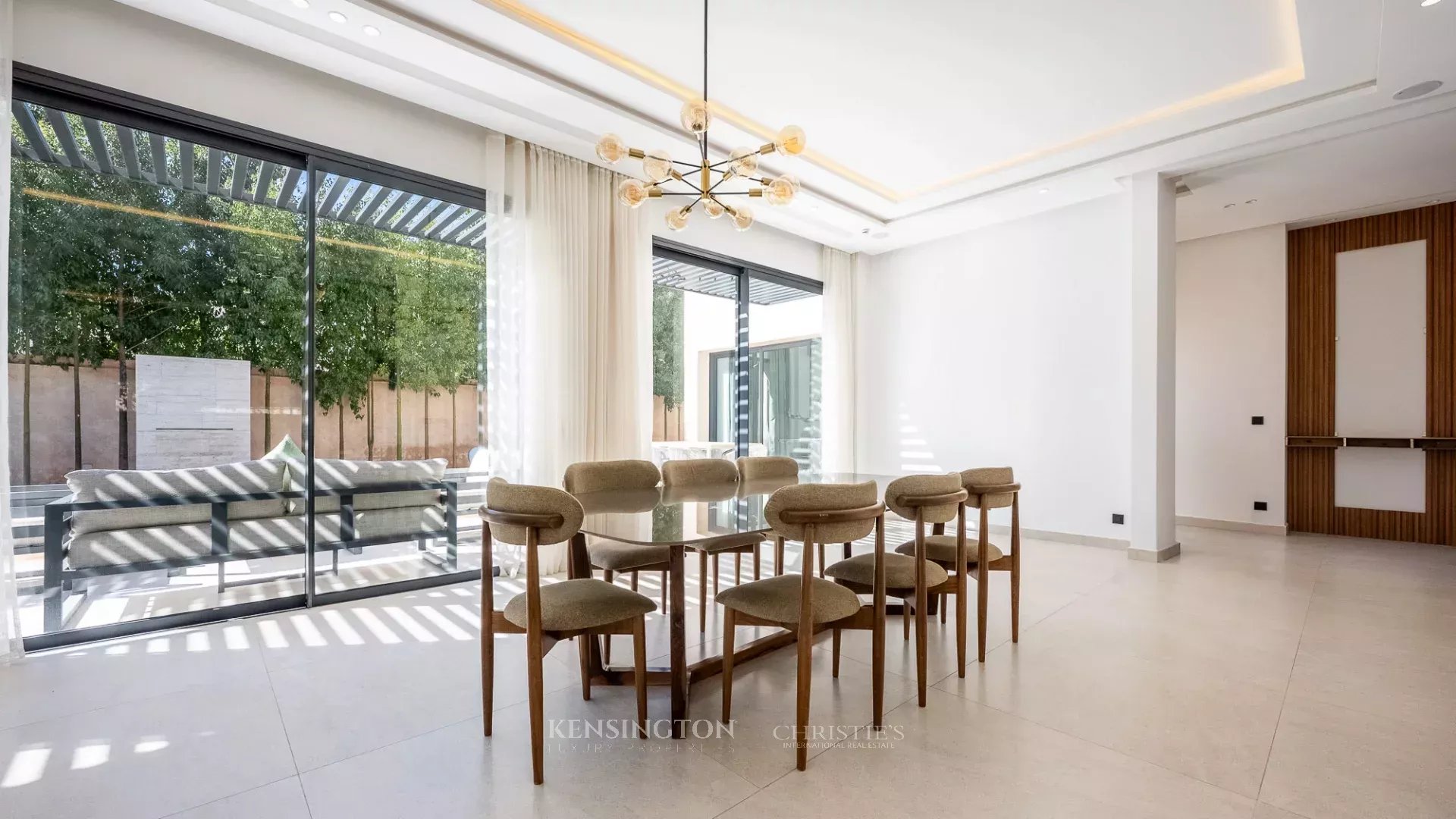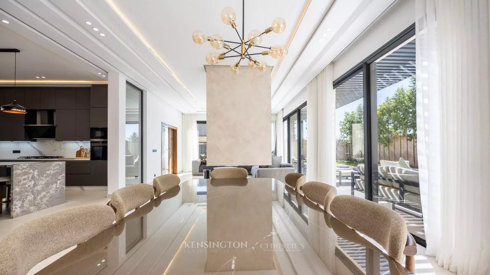 Christie's Real Estate Morocco offers for sale this magnificent newly built modern villa, located in the heart of one of the most renowned golf courses in Marrakech. The property offers approximately 450 sqm of living space on a landscaped 1,000 sqm plot, set within a secure and highly sought-after residential environment. Designed with particular attention to comfort and modernity, the villa is equipped with a complete home automation system allowing centralized control of the main equipment.
