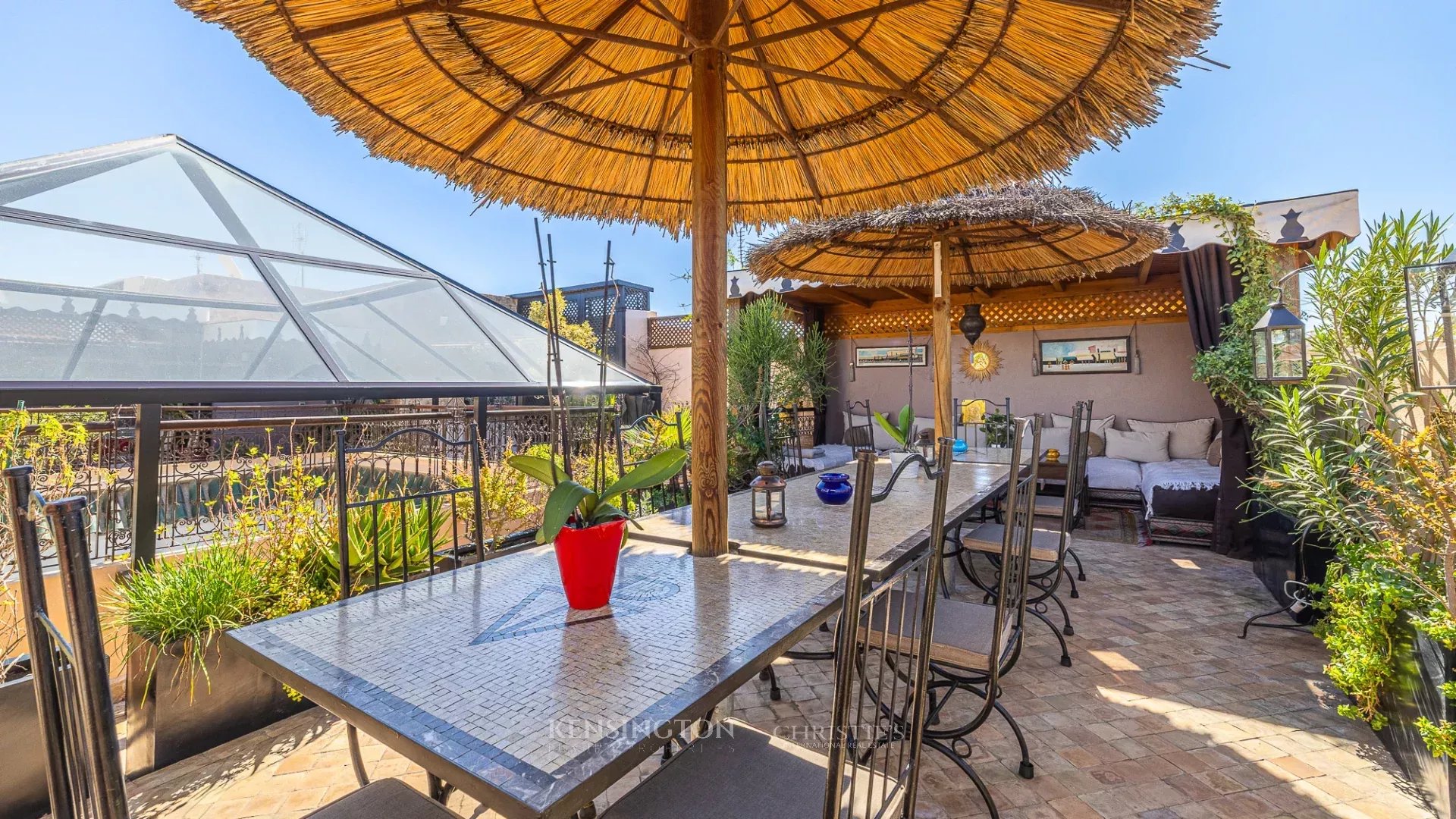 Built on a 200 sqm ground surface, the riad features 7 bedrooms, each with its private en-suite bathroom, ensuring privacy and well being for its guests.
