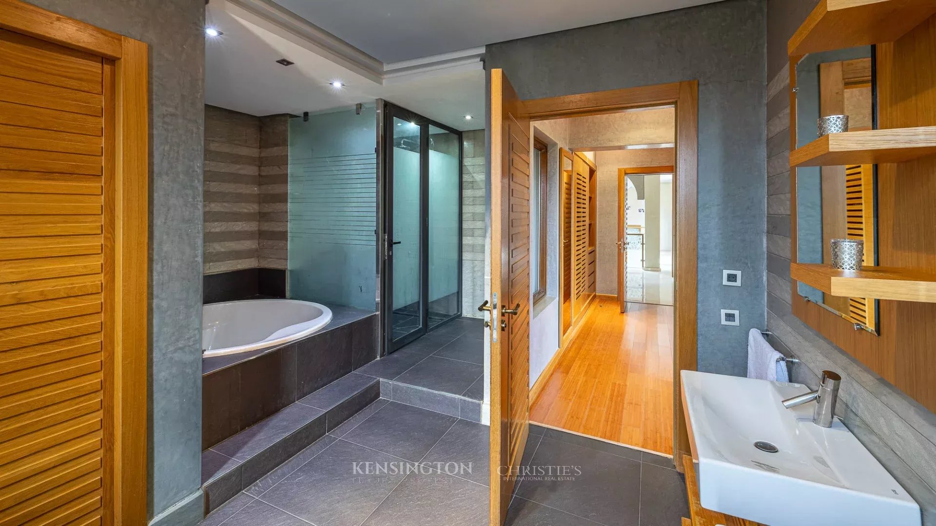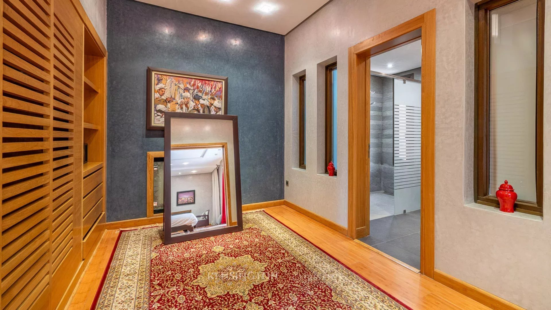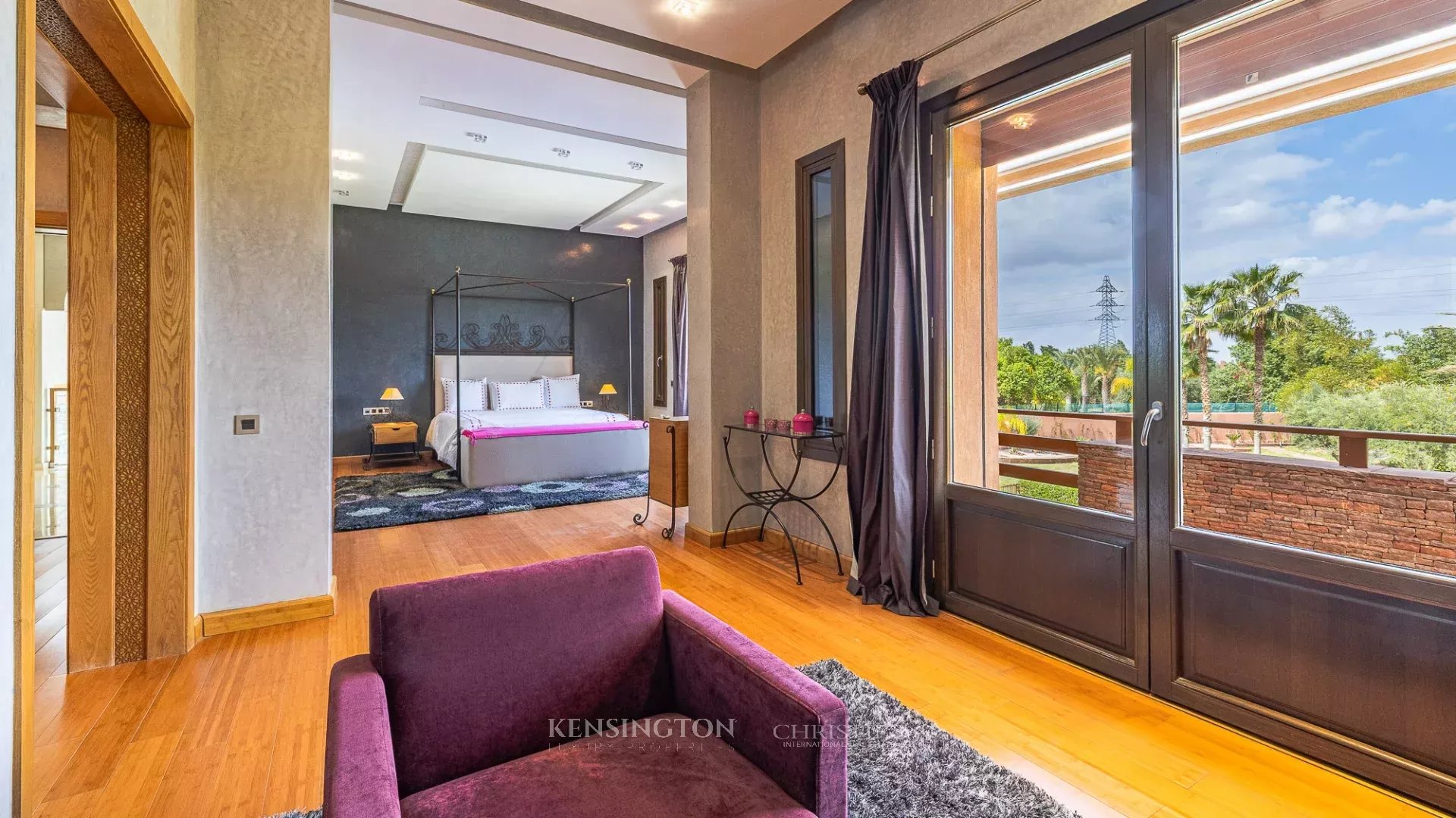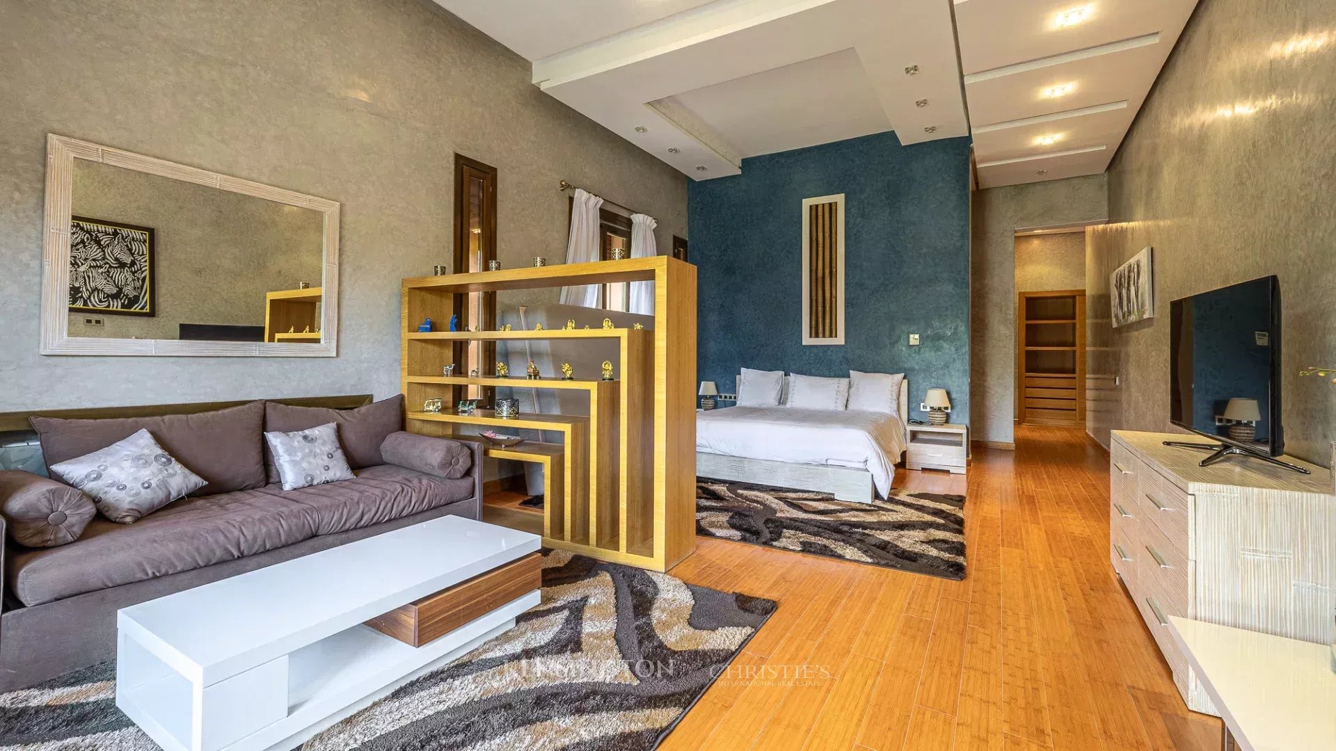 In the heart of the Palmeraie, this combined modern and traditional style villa will seduce you with its 7 en-suite bedrooms, reception room and further 4 living rooms and a cinema room.