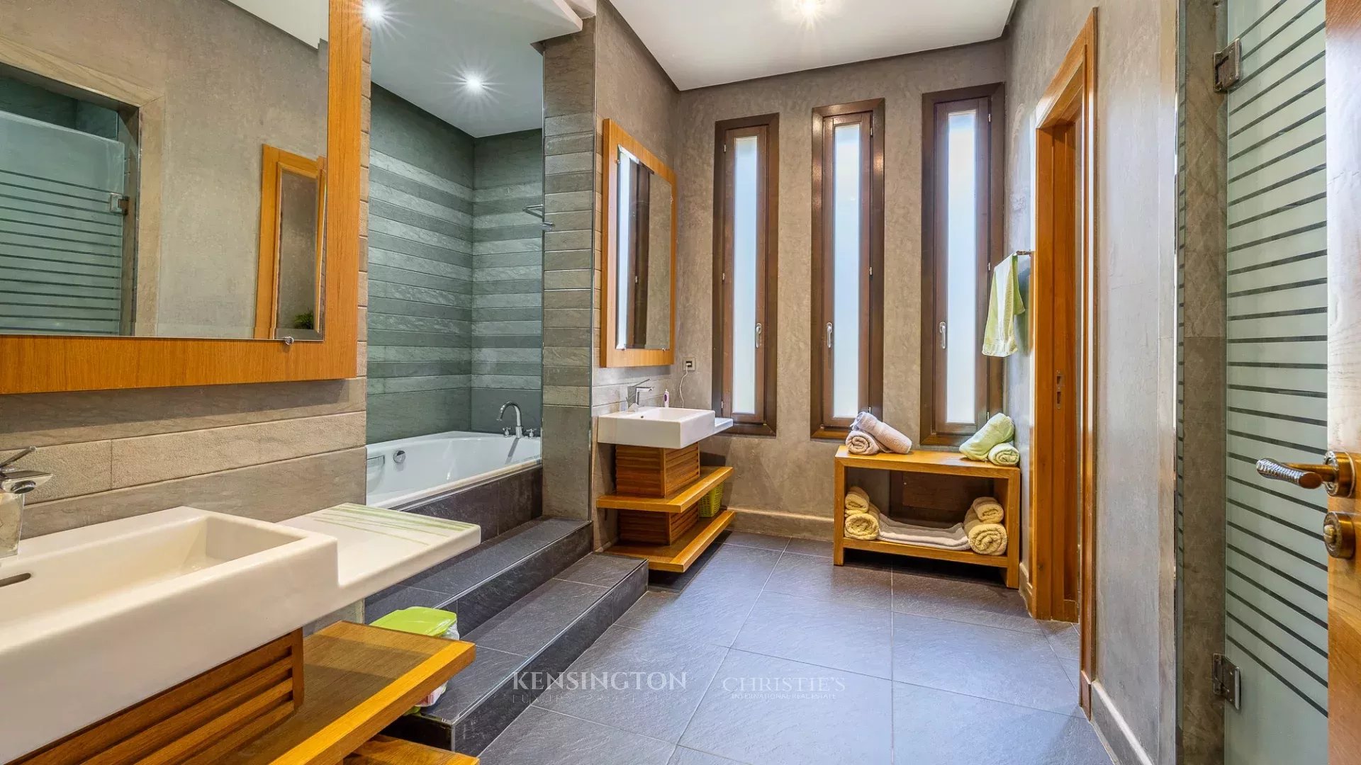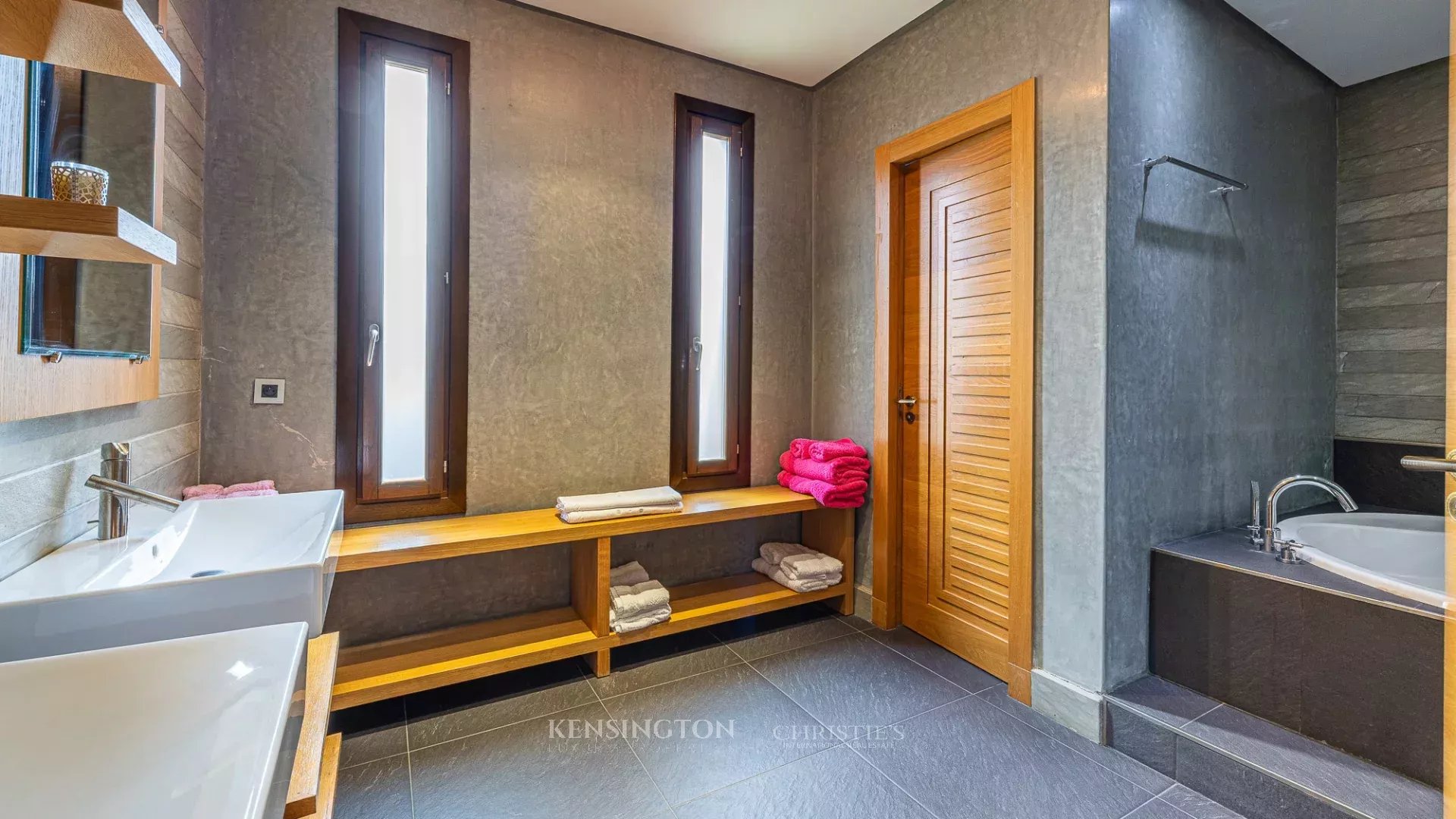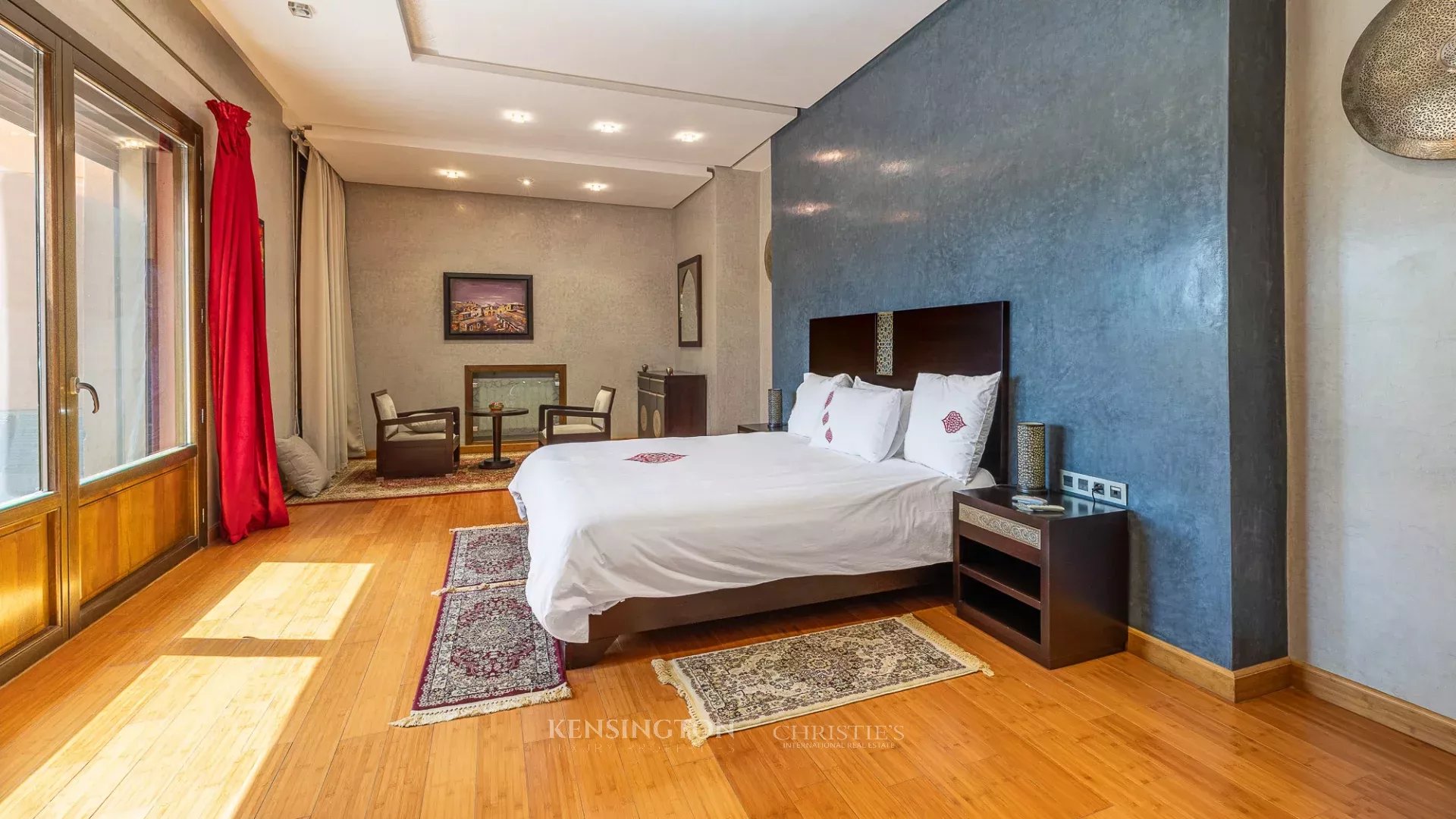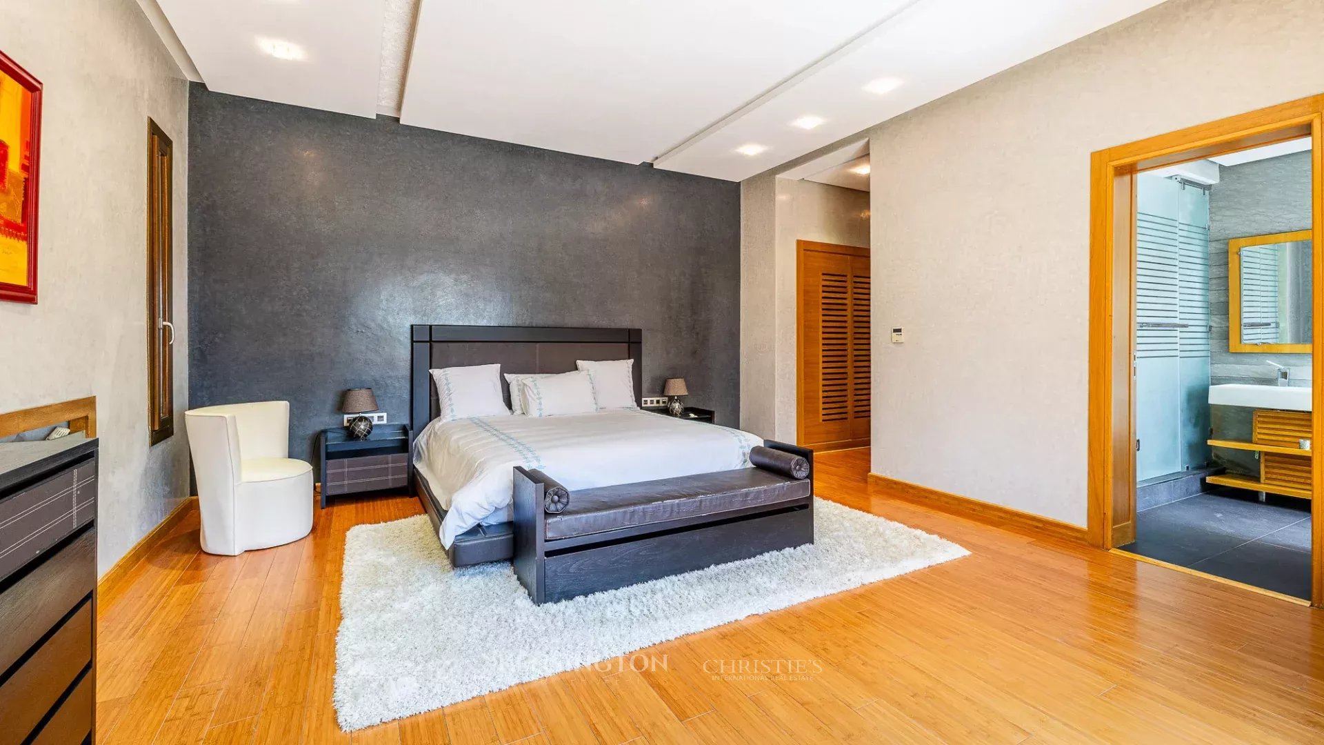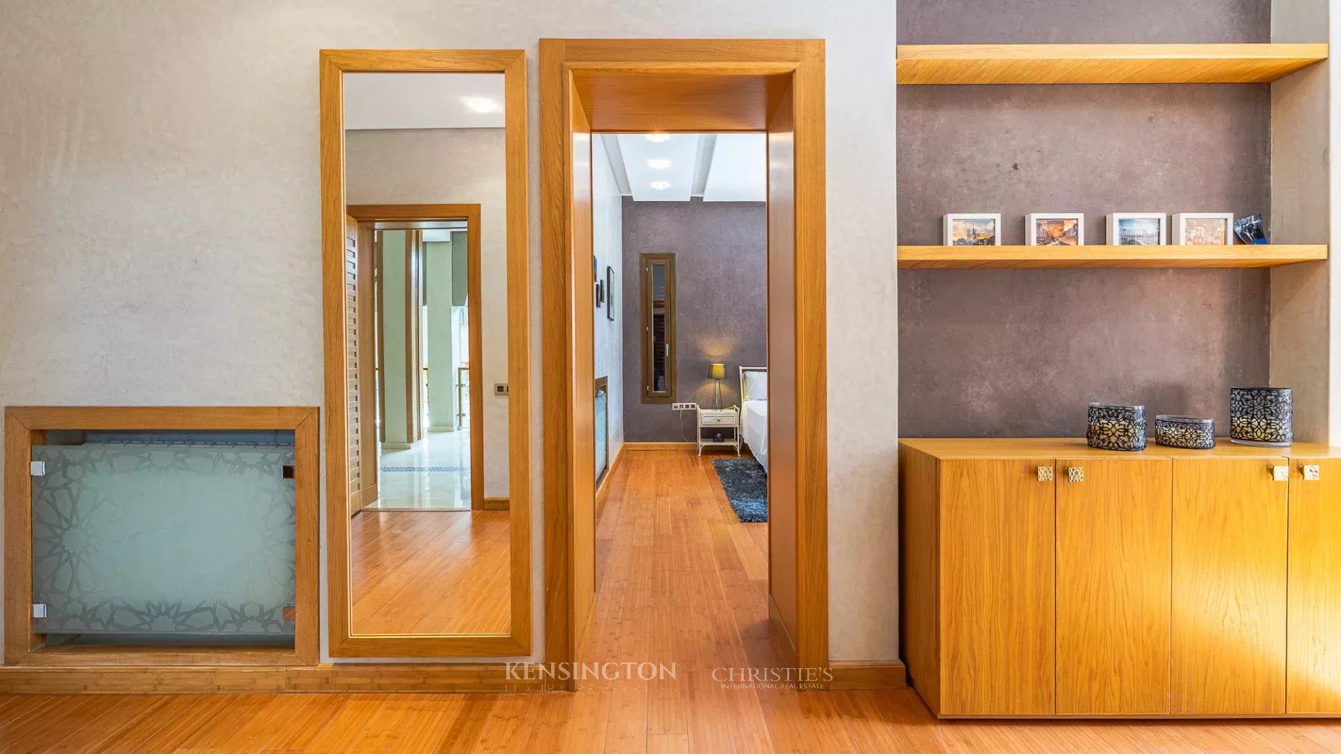 In the heart of the Palmeraie, this combined modern and traditional style villa will seduce you with its 7 en-suite bedrooms, reception room and further 4 living rooms and a cinema room.